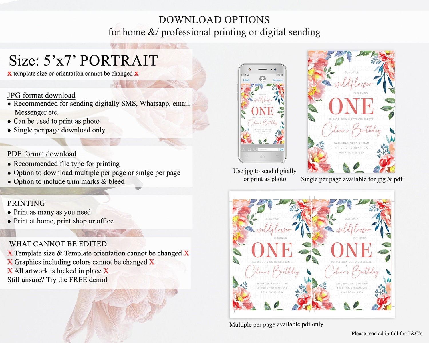 Secret Garden Invitation Wildflower Birthday Invitation Pastel Flowers Invite Enchanted Garden Boho Floral 3rd 2nd First Birthday D10751