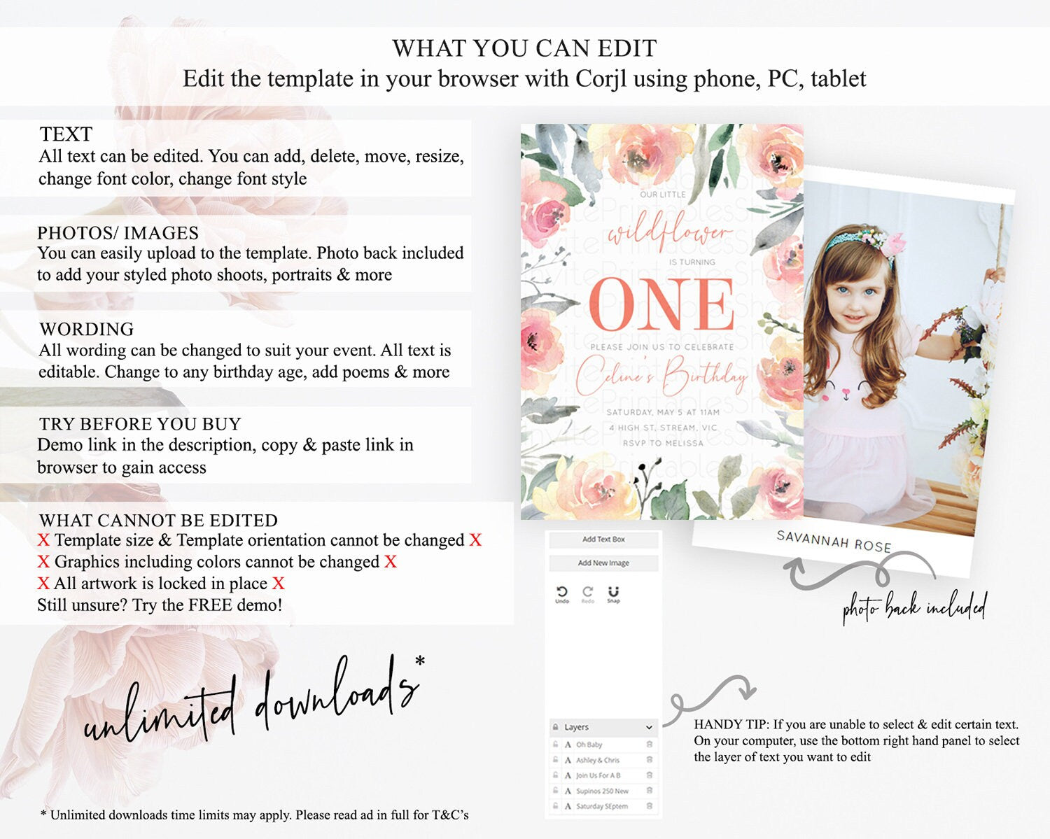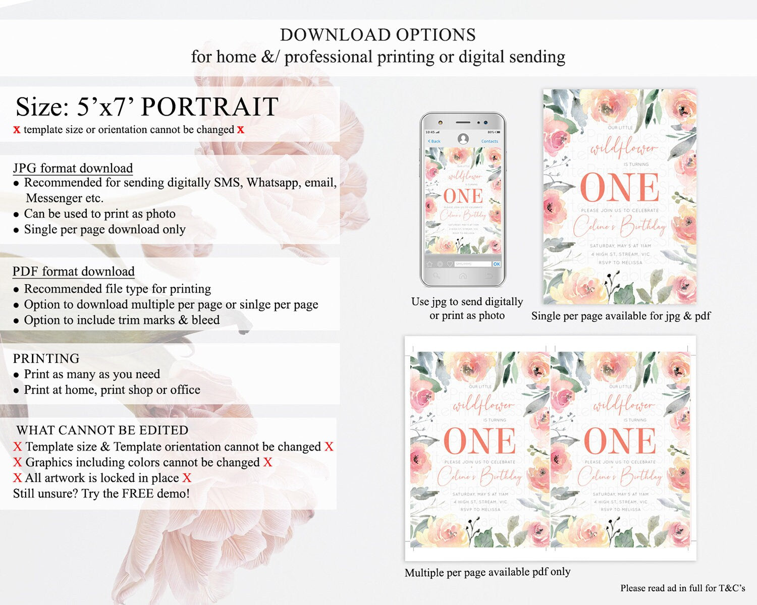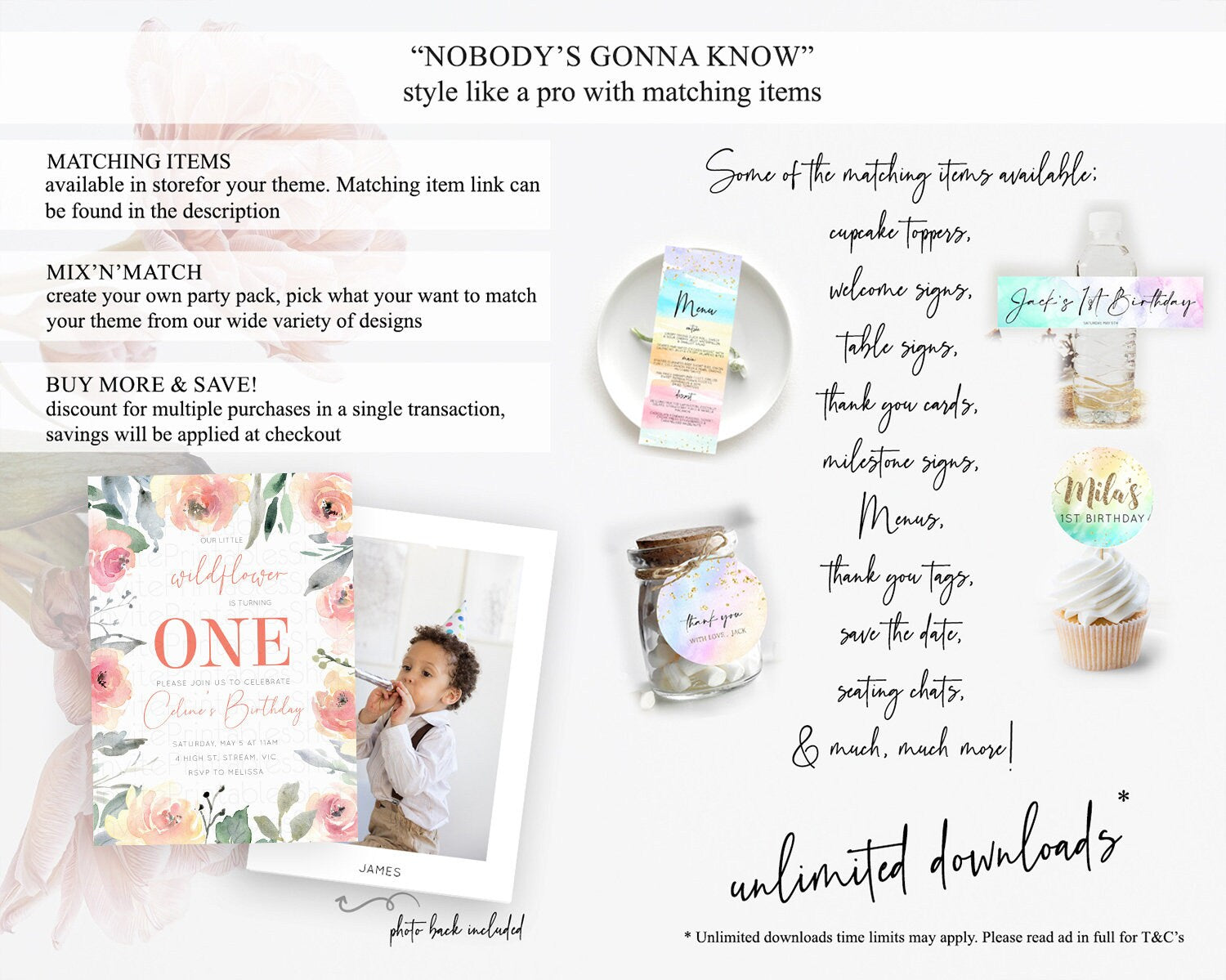 Secret Garden Invitation Wildflower Birthday Invitation Pastel Flowers Invite Enchanted Garden Boho Floral 3rd 2nd First Birthday D10778
