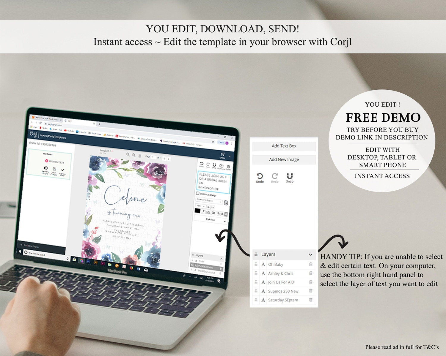 • After purchase, Corjl emails your editing link. Allow up to 15 minutes for delivery.