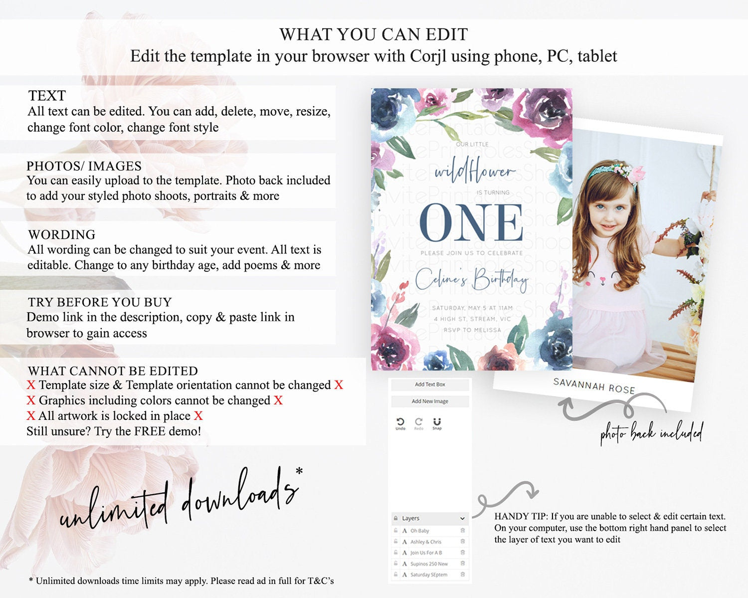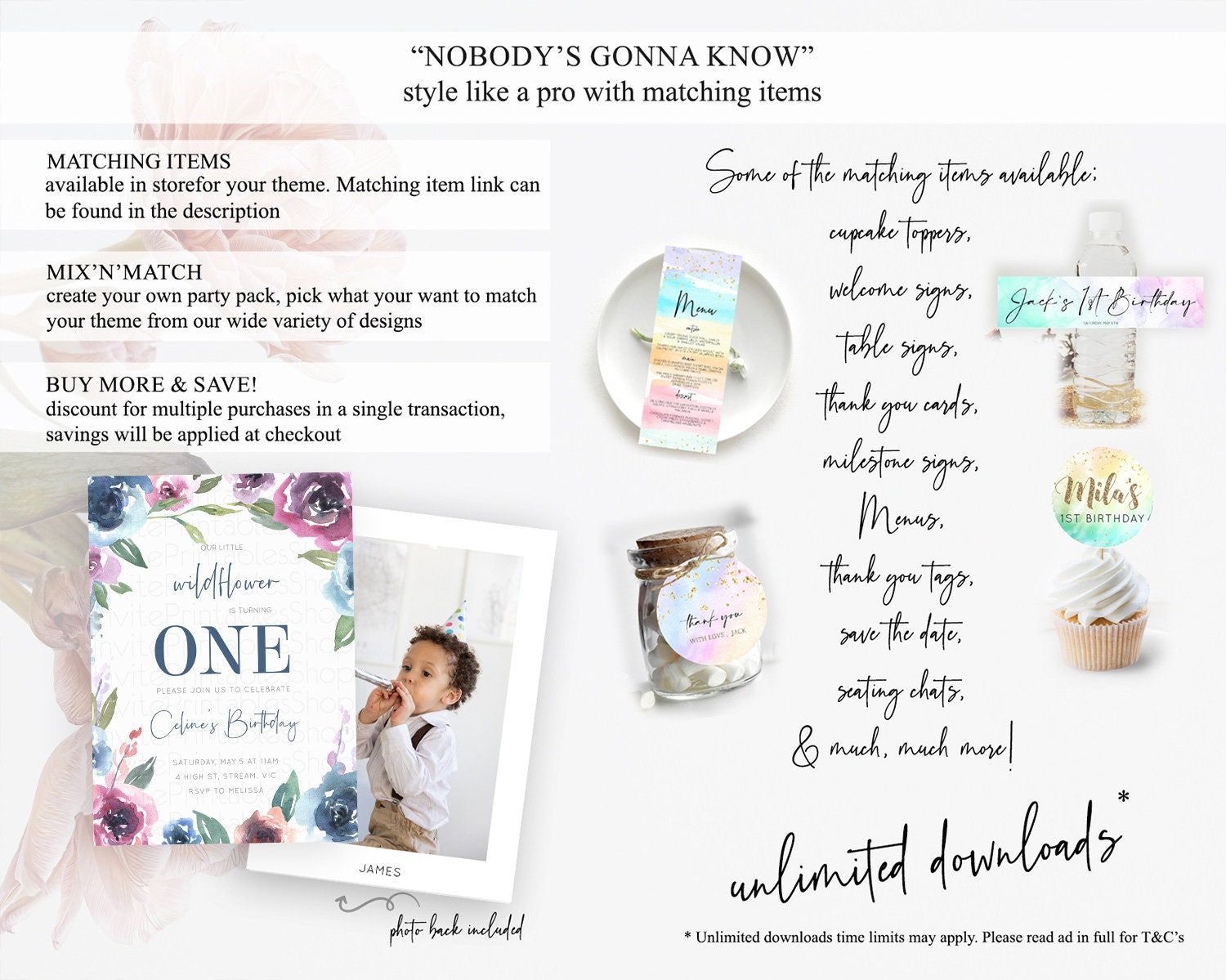 Secret Garden Invitation Wildflower Birthday Invitation Pastel Flowers Invite Enchanted Garden Boho Floral 3rd 2nd First Birthday D10780