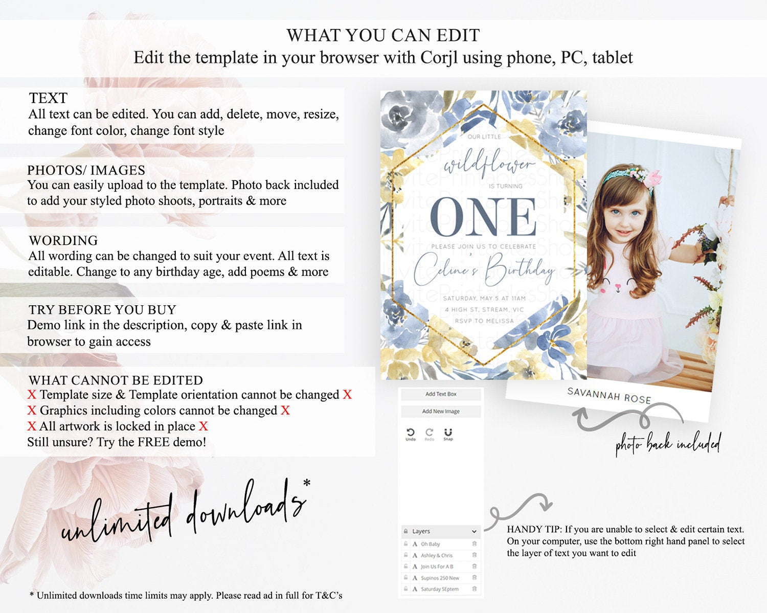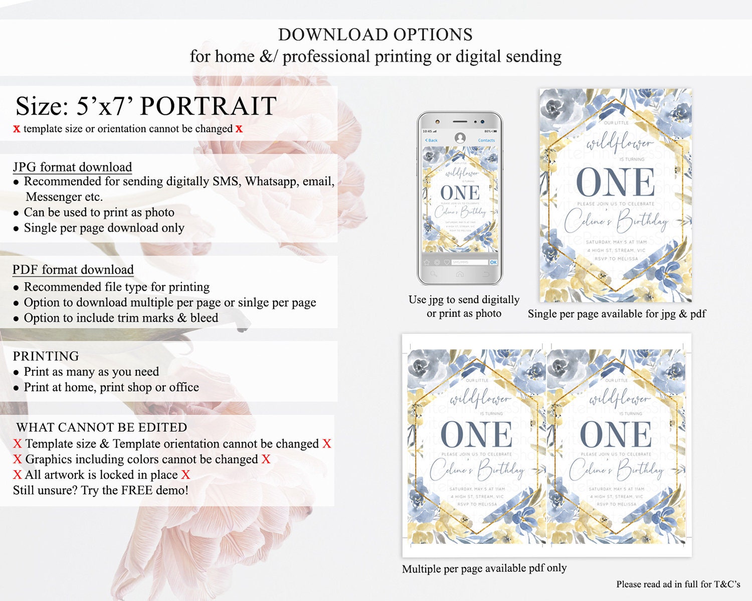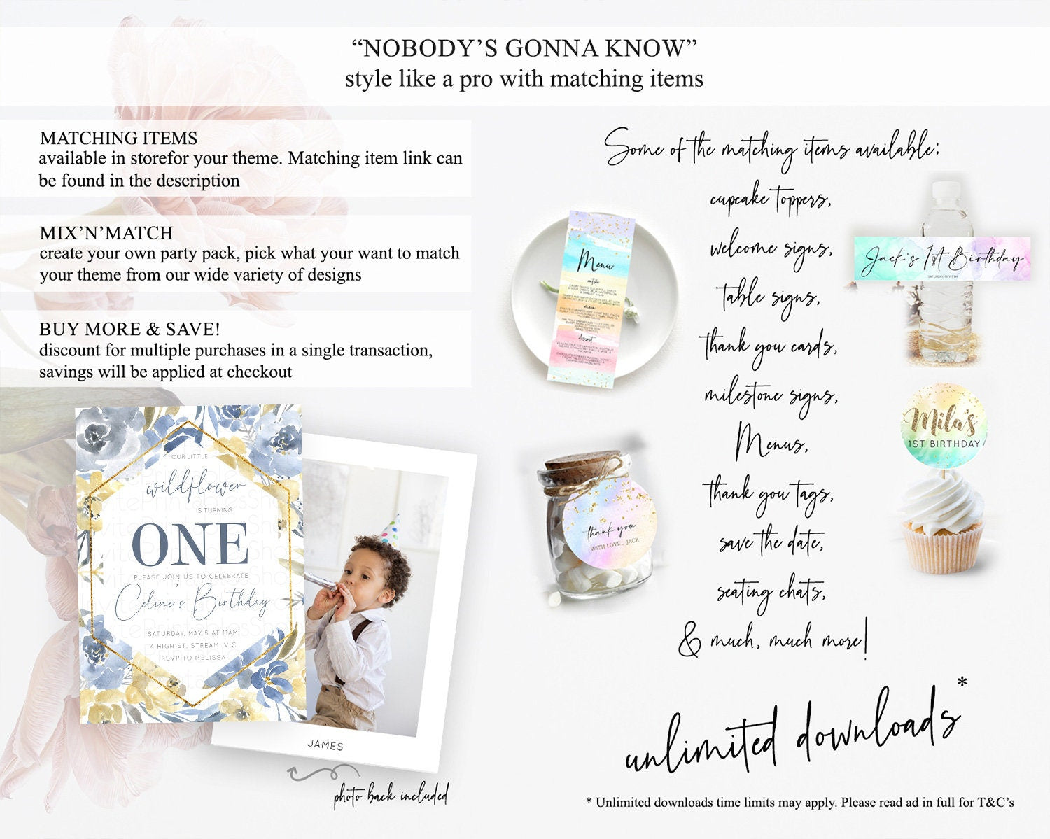 Secret Garden Invitation Wildflower Birthday Invitation Pastel Flowers Invite Enchanted Garden Boho Floral 3rd 2nd First Birthday D10782