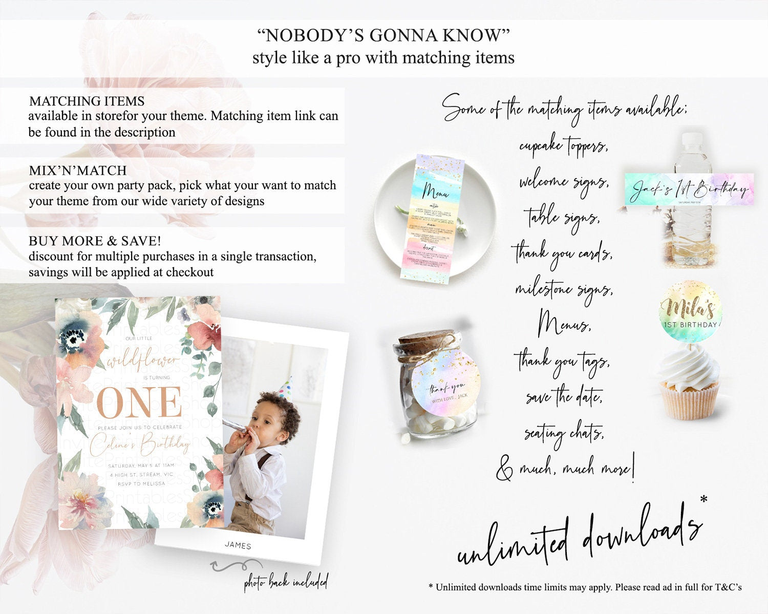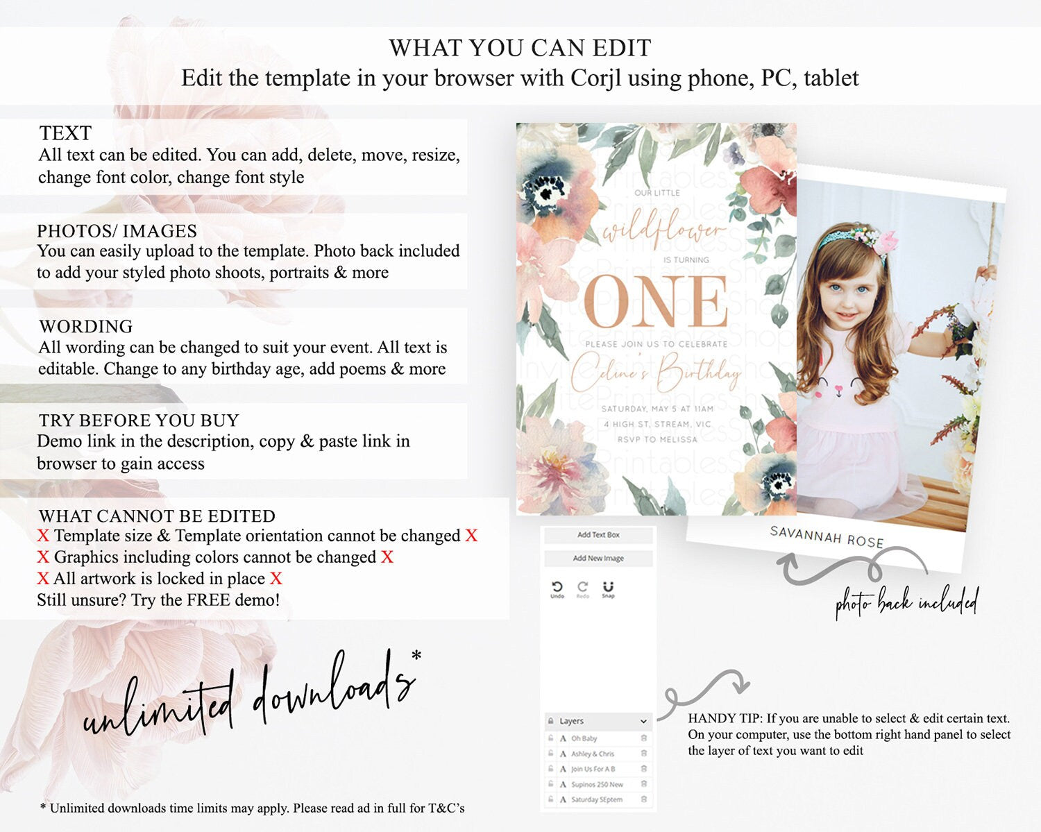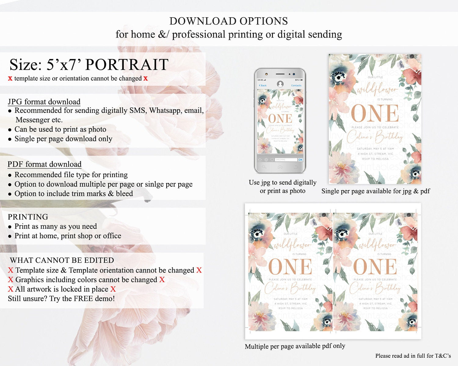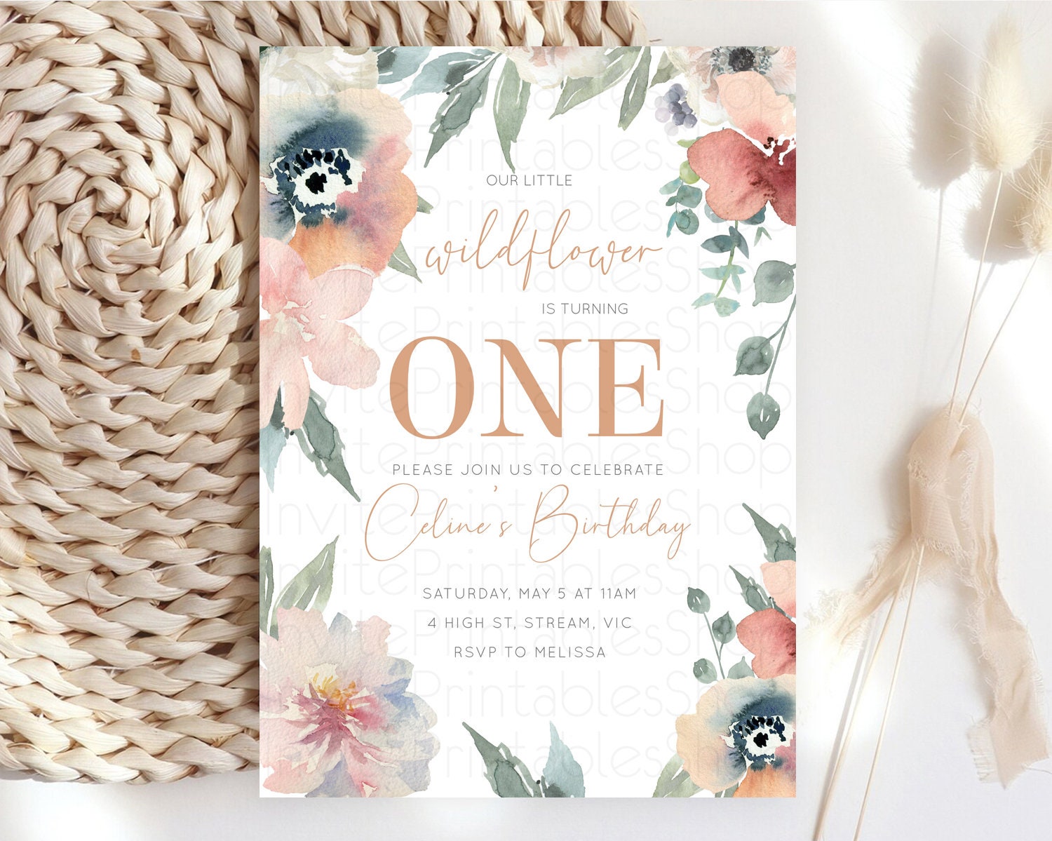 Secret Garden Invitation Wildflower Birthday Invitation Pastel Flowers Invite Enchanted Garden Boho Floral 3rd 2nd First Birthday D10787