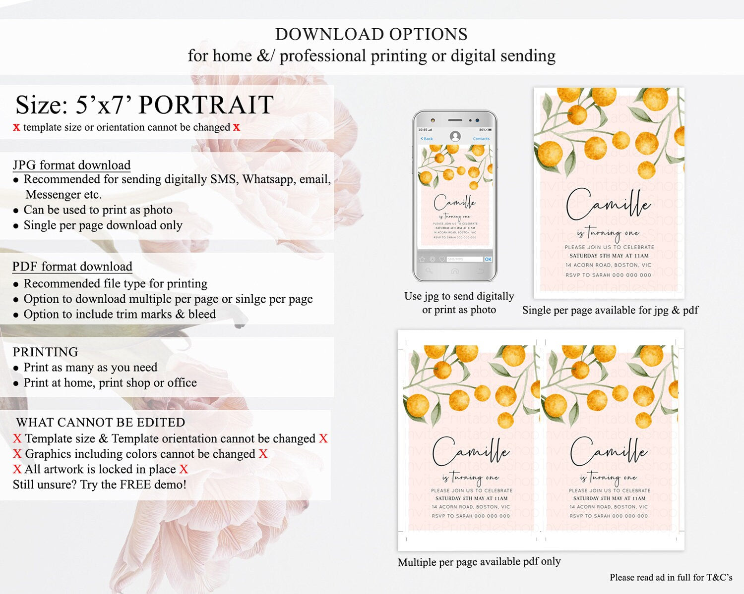 • Template size & orientation cannot be changed. Please use the demo link to confirm this product suits your needs.