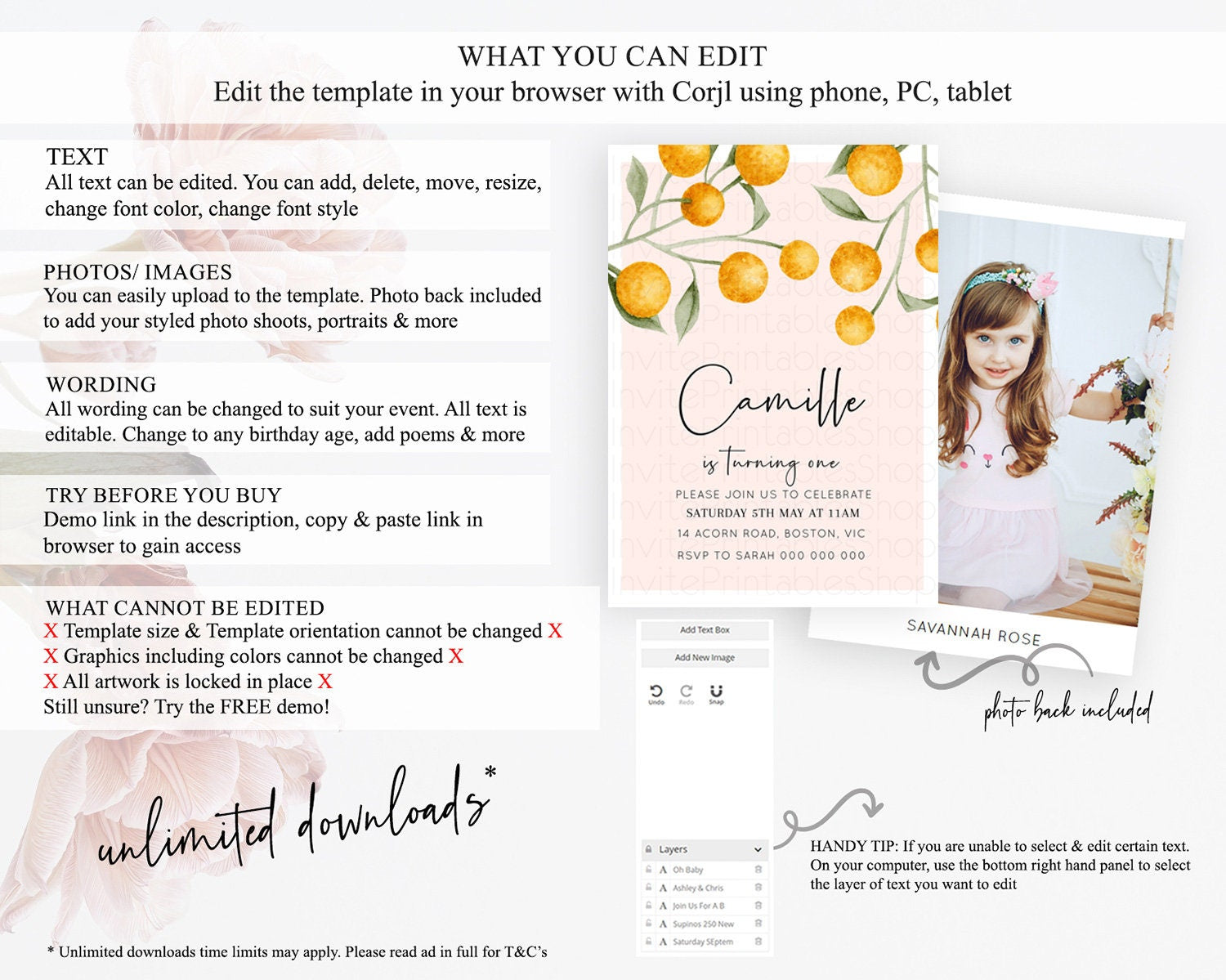 • After purchase, Corjl emails your editing link. Allow up to 15 minutes for delivery.