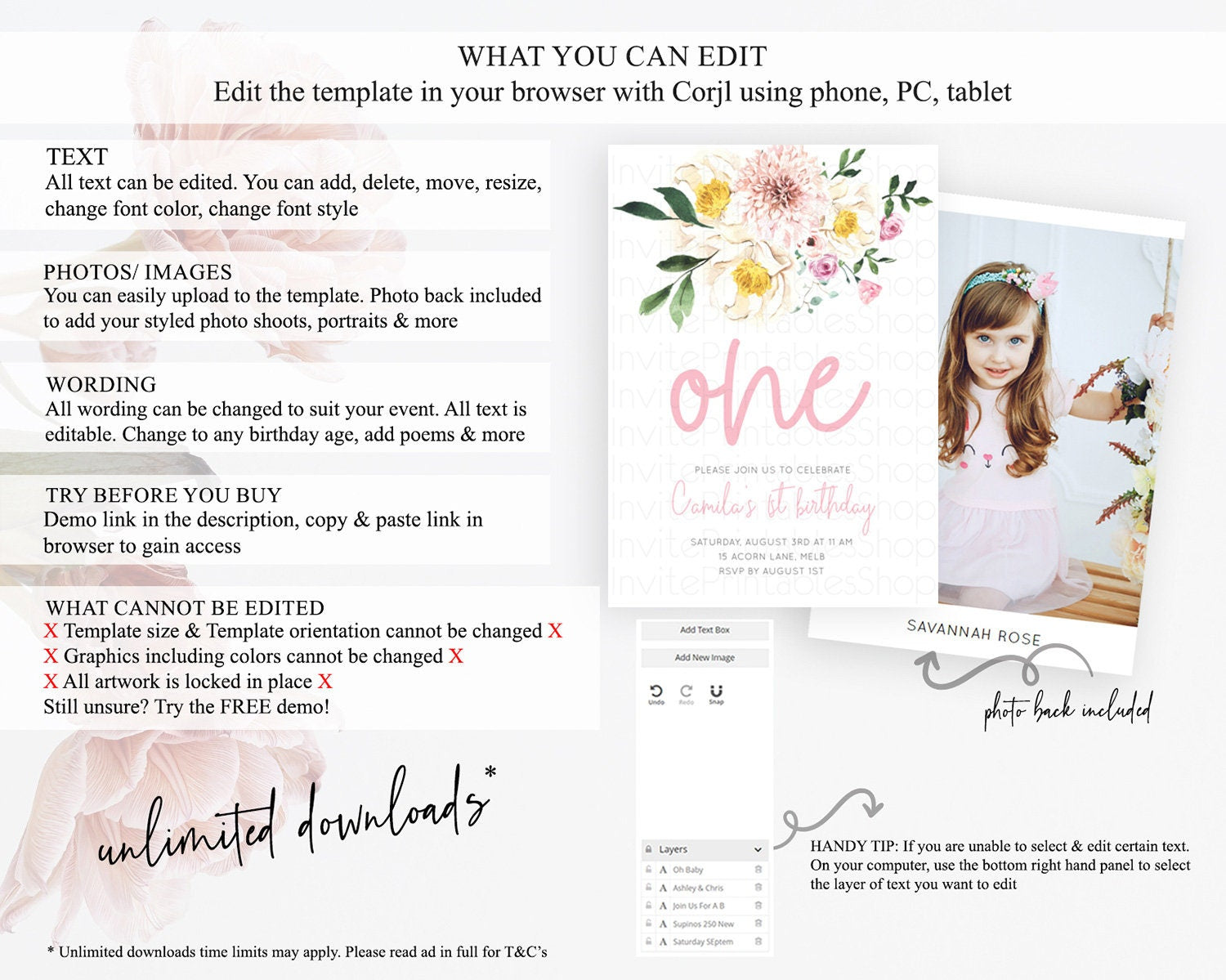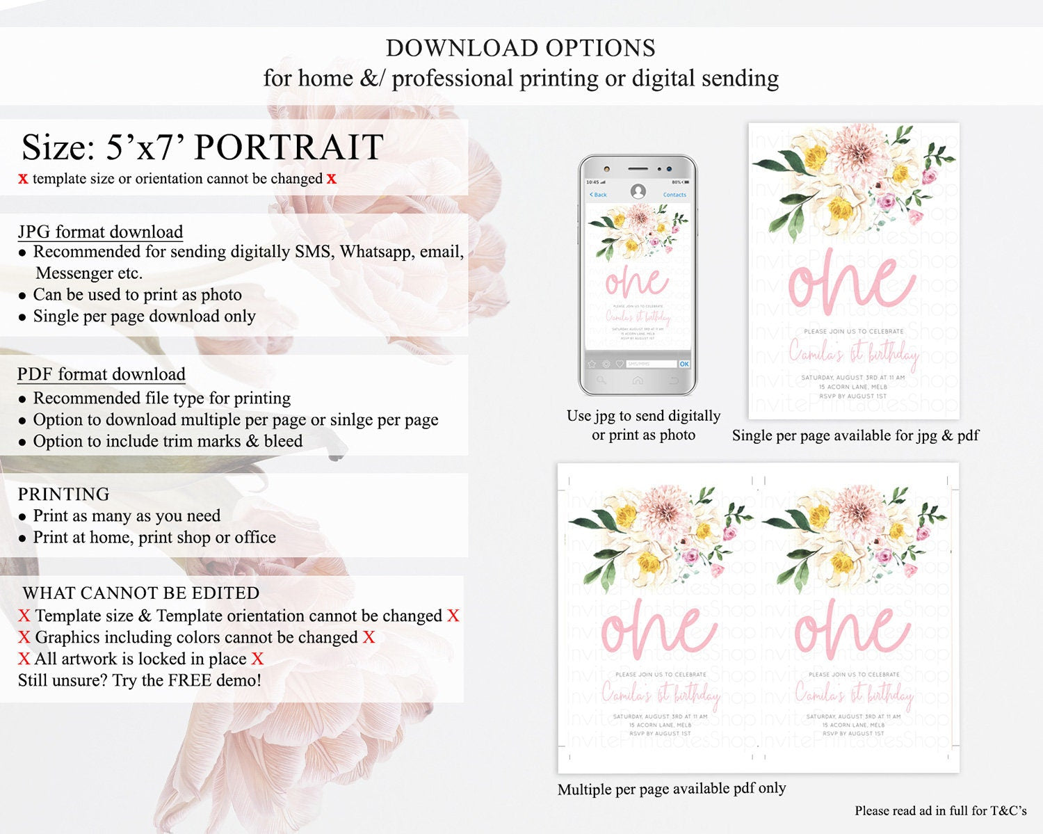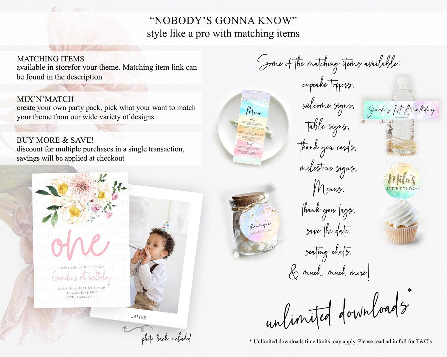 Secret Garden Invitation Wildflower Birthday Invitation Pastel Flowers Invite Enchanted Garden Boho Floral 3rd 2nd First Birthday D11040