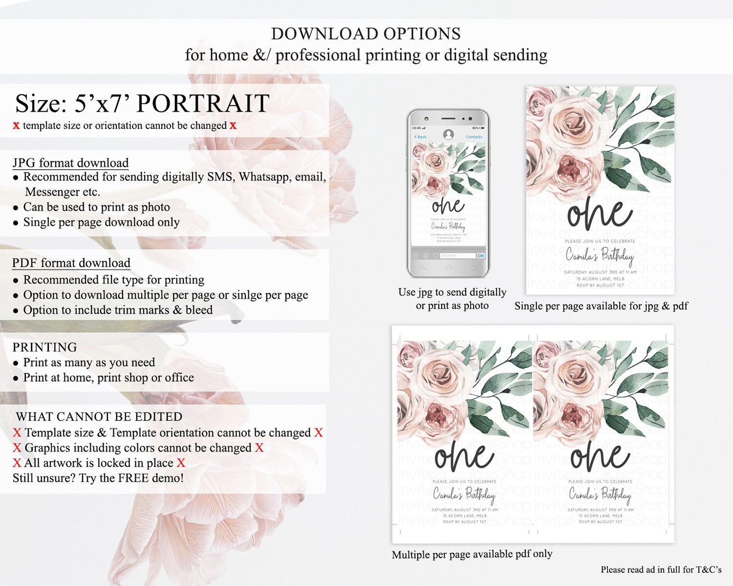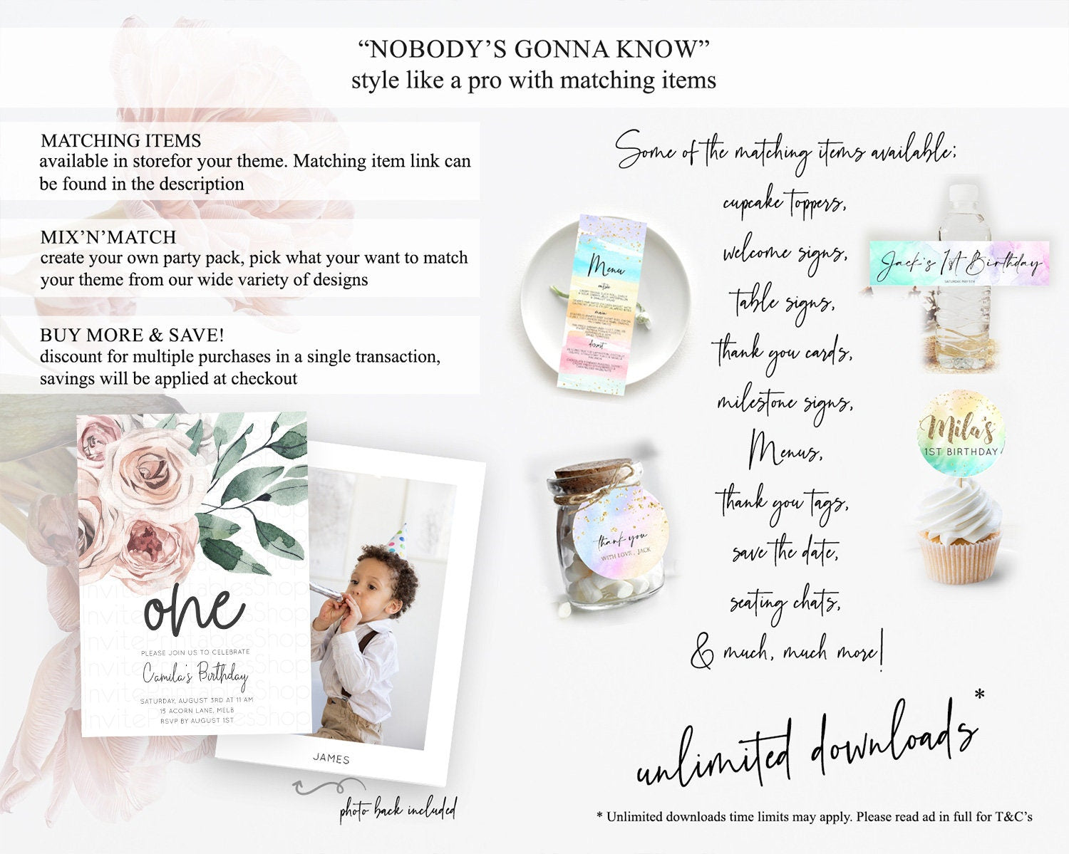 Secret Garden Invitation Wildflower Birthday Invitation Pastel Flowers Invite Enchanted Garden Boho Floral 3rd 2nd First Birthday D11061