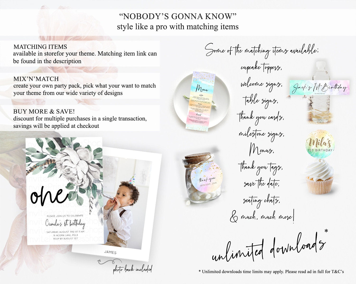 Secret Garden Invitation Wildflower Birthday Invitation Pastel Flowers Invite Enchanted Garden Boho Floral 3rd 2nd First Birthday D11066
