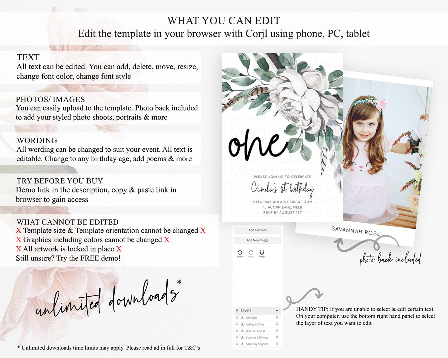 • After purchase, Corjl emails your editing link. Allow up to 15 minutes for delivery.