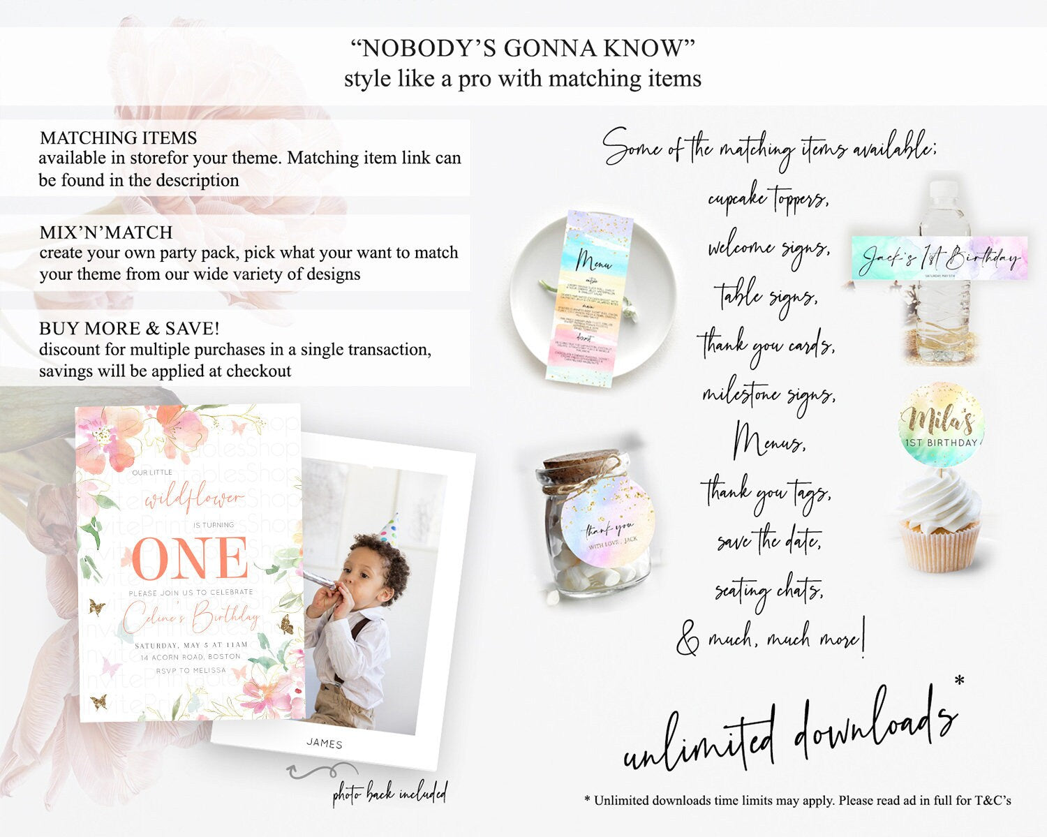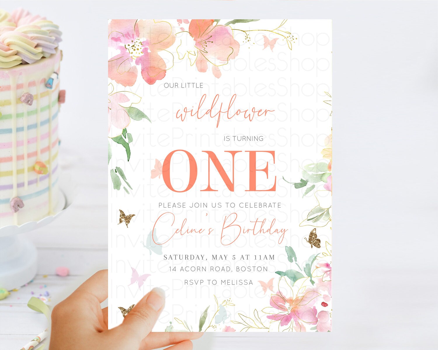 Secret Garden Invitation Wildflower Birthday Invitation Pastel Flowers Invite Enchanted Garden Boho Floral 3rd 2nd First Birthday D11071