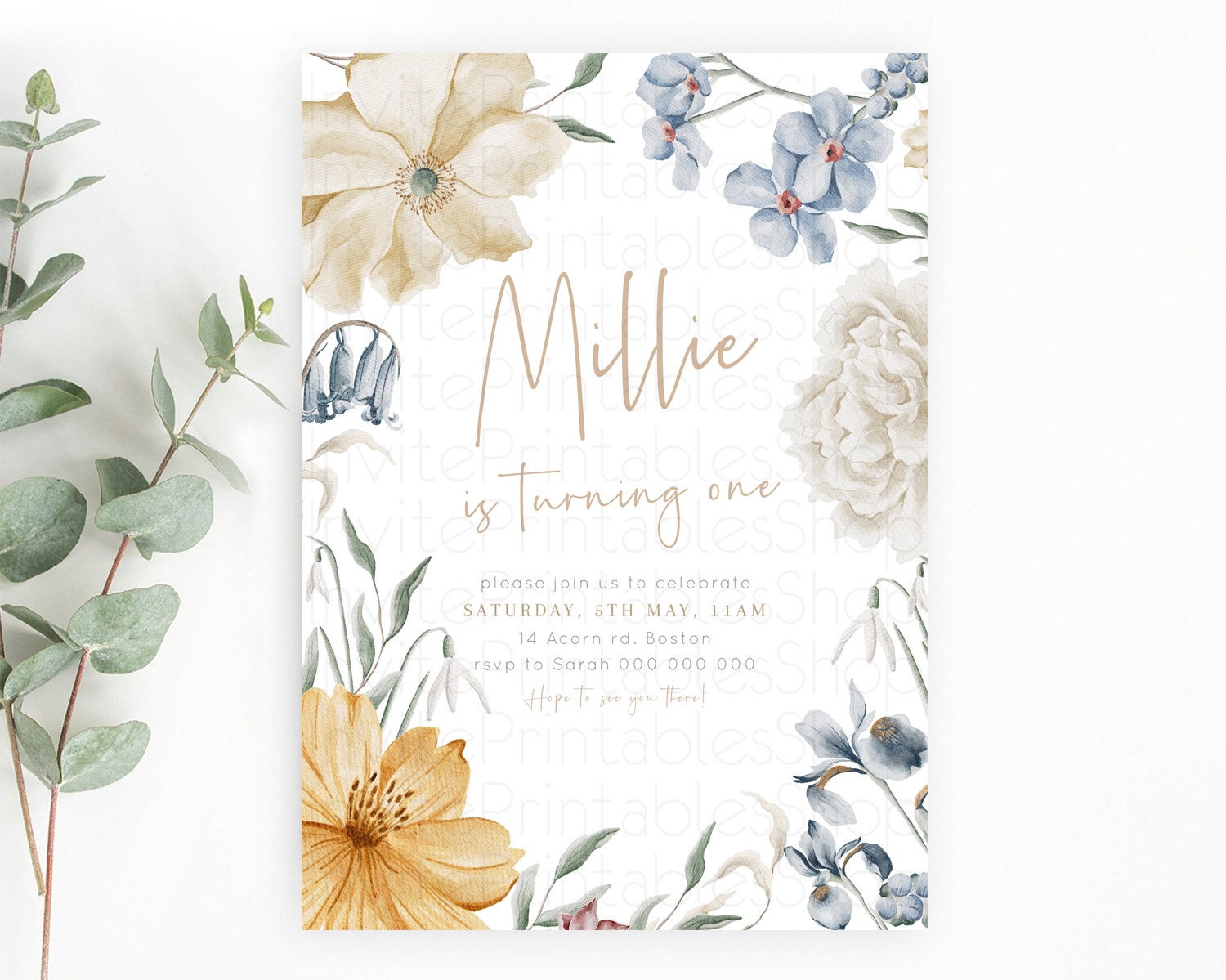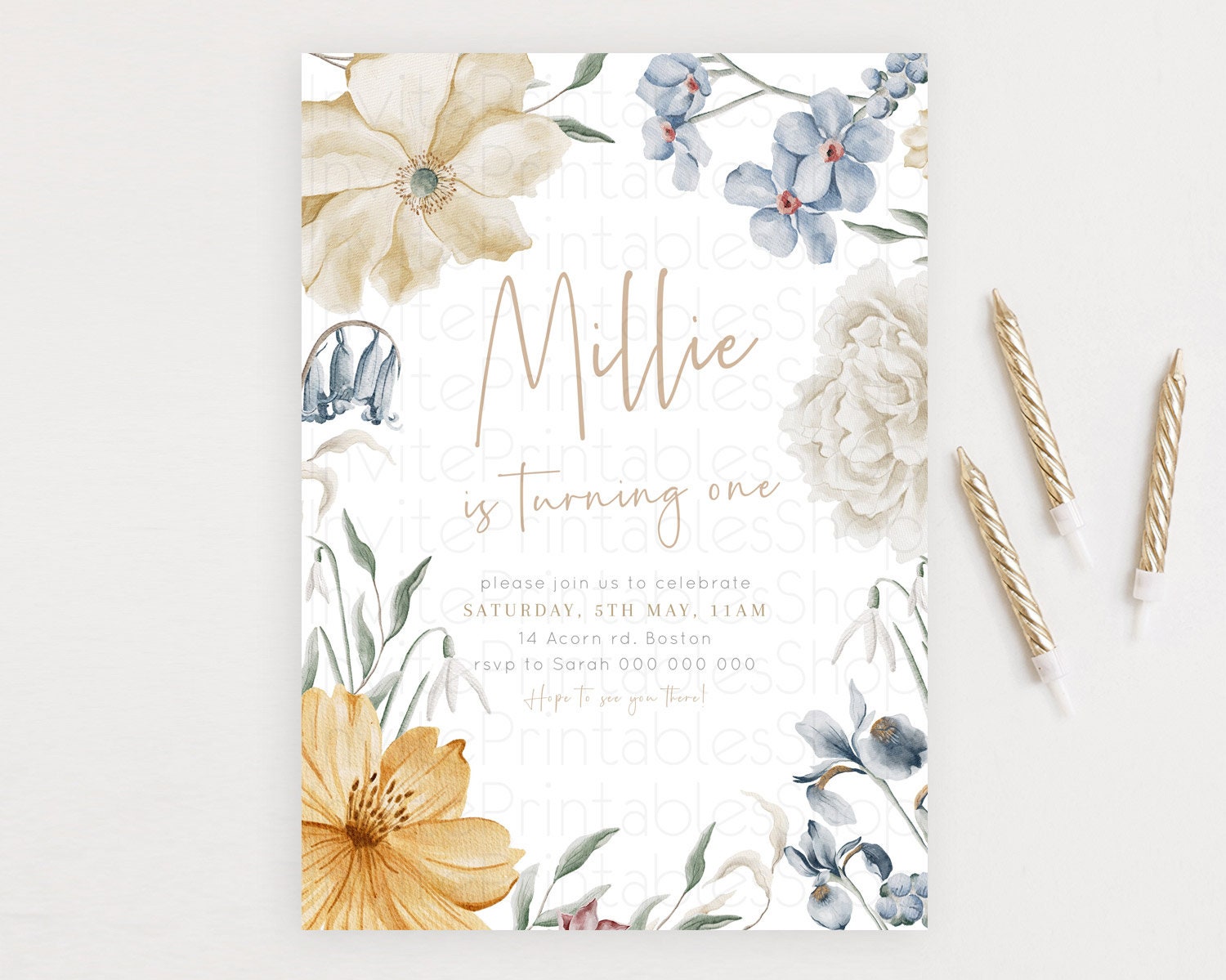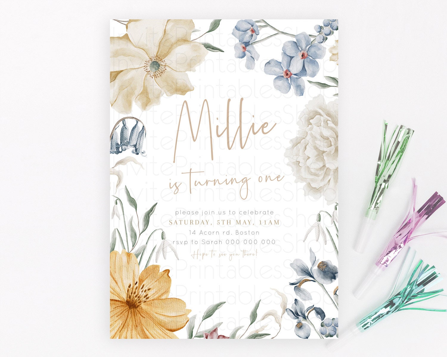 Secret Garden Invitation Wildflower Birthday Invitation Pastel Flowers Invite Enchanted Garden Boho Floral 3rd 2nd First Birthday D23357