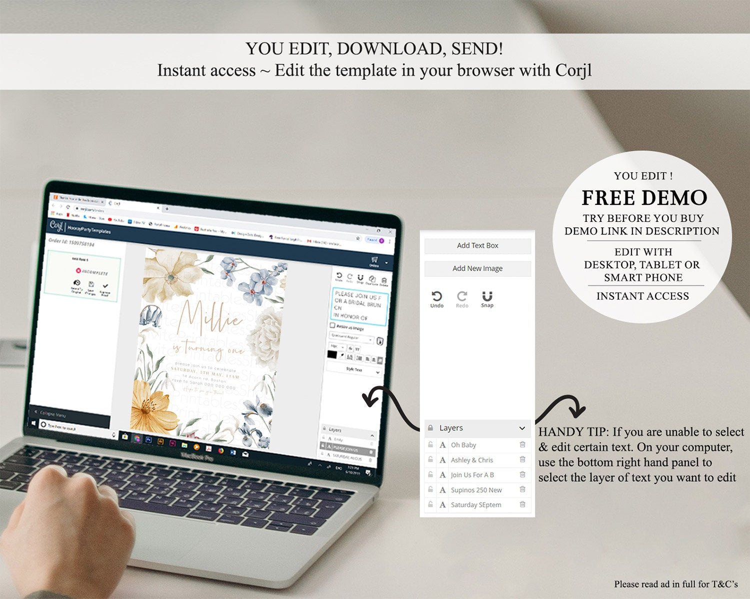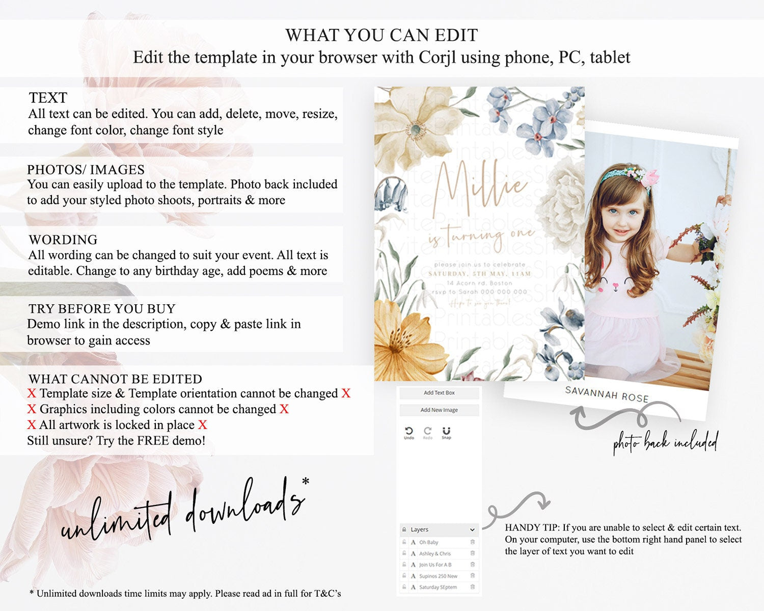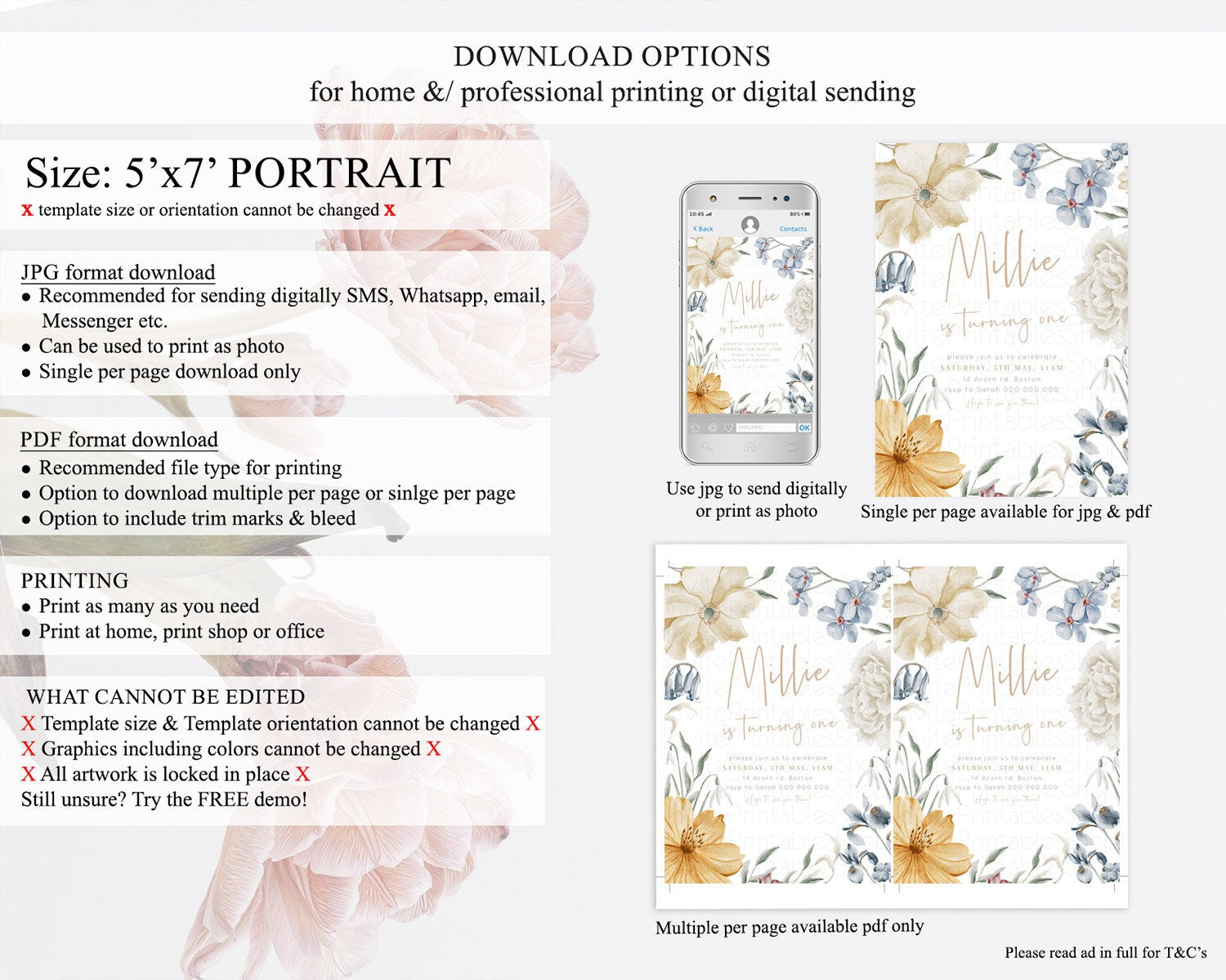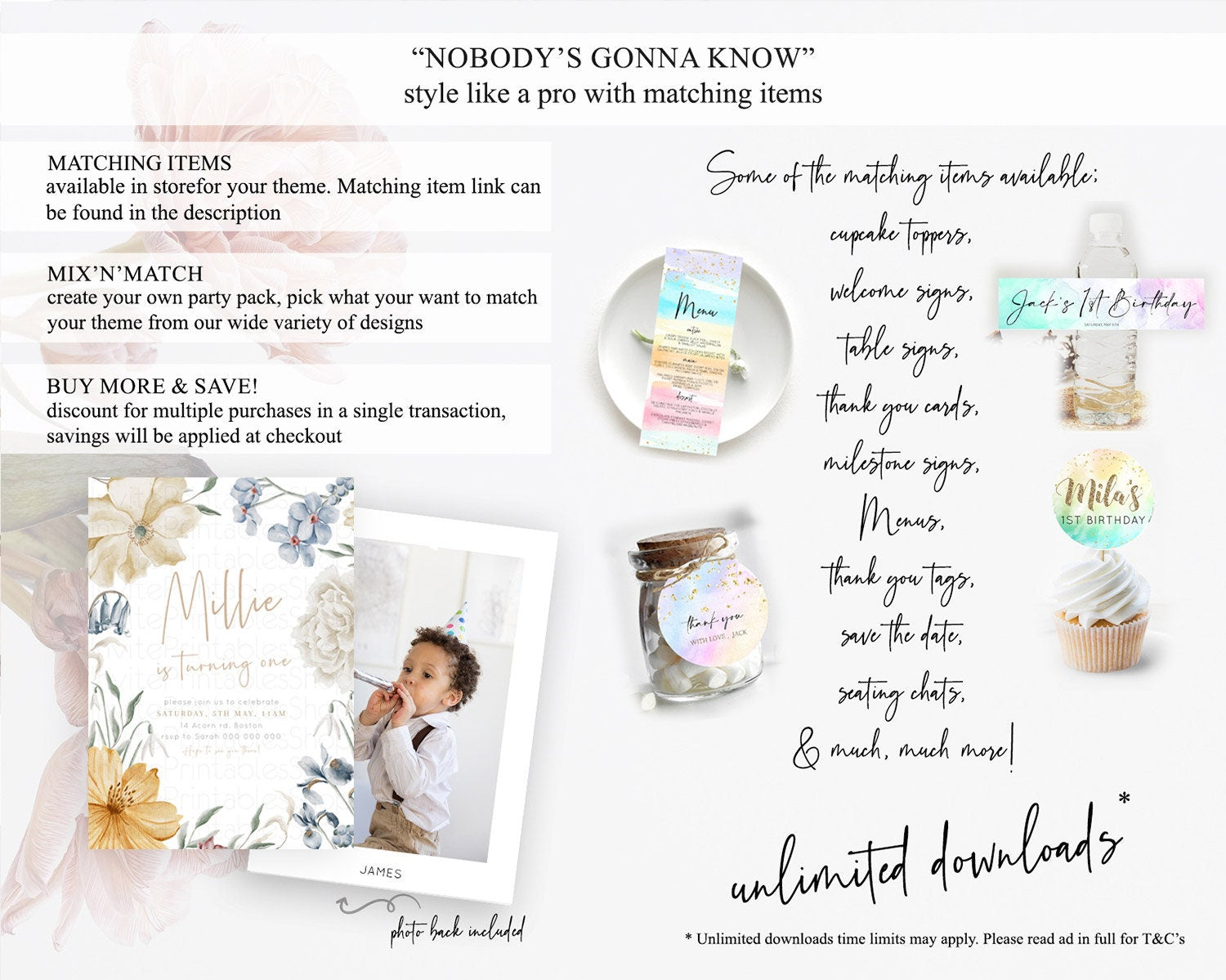 Secret Garden Invitation Wildflower Birthday Invitation Pastel Flowers Invite Enchanted Garden Boho Floral 3rd 2nd First Birthday D23357