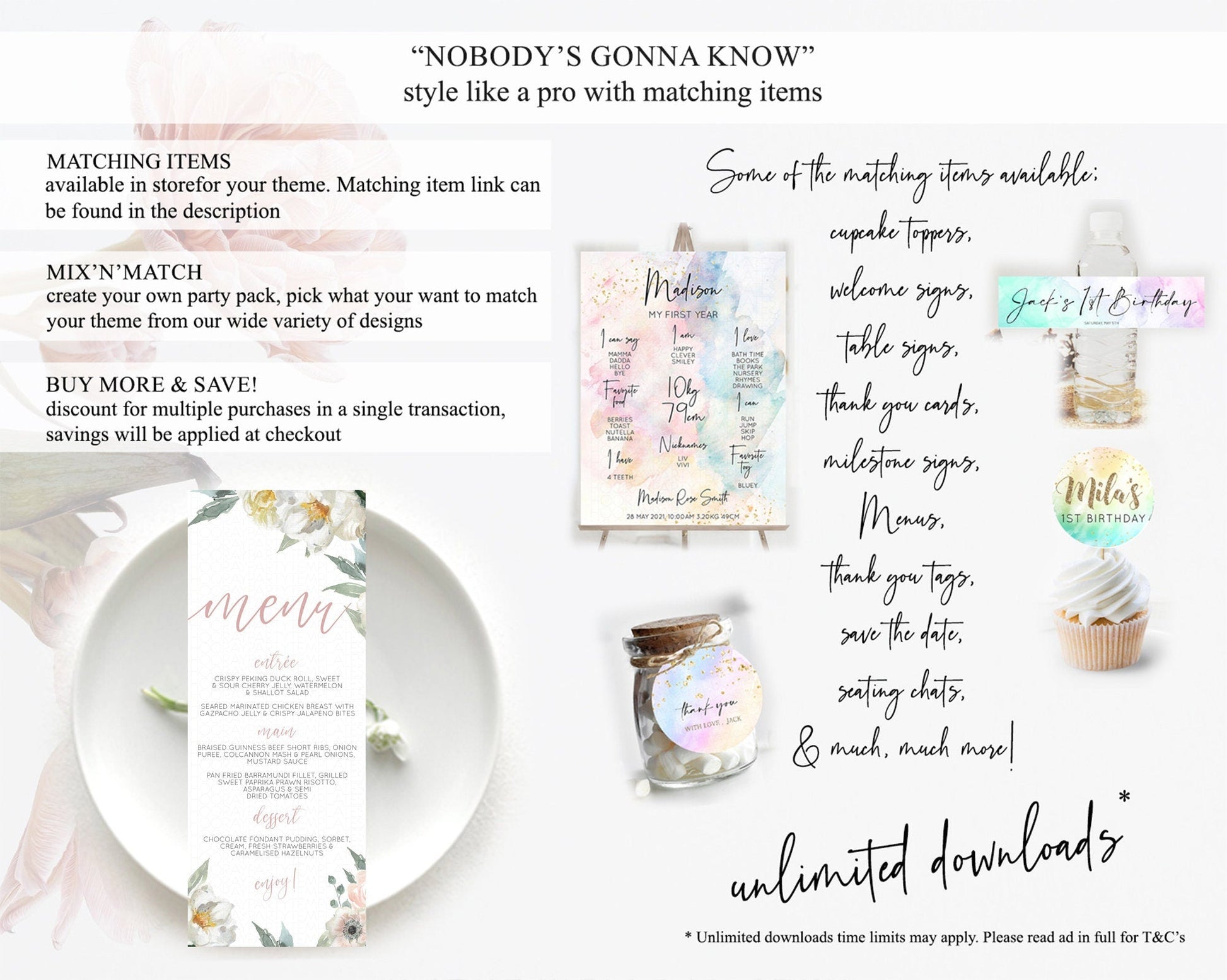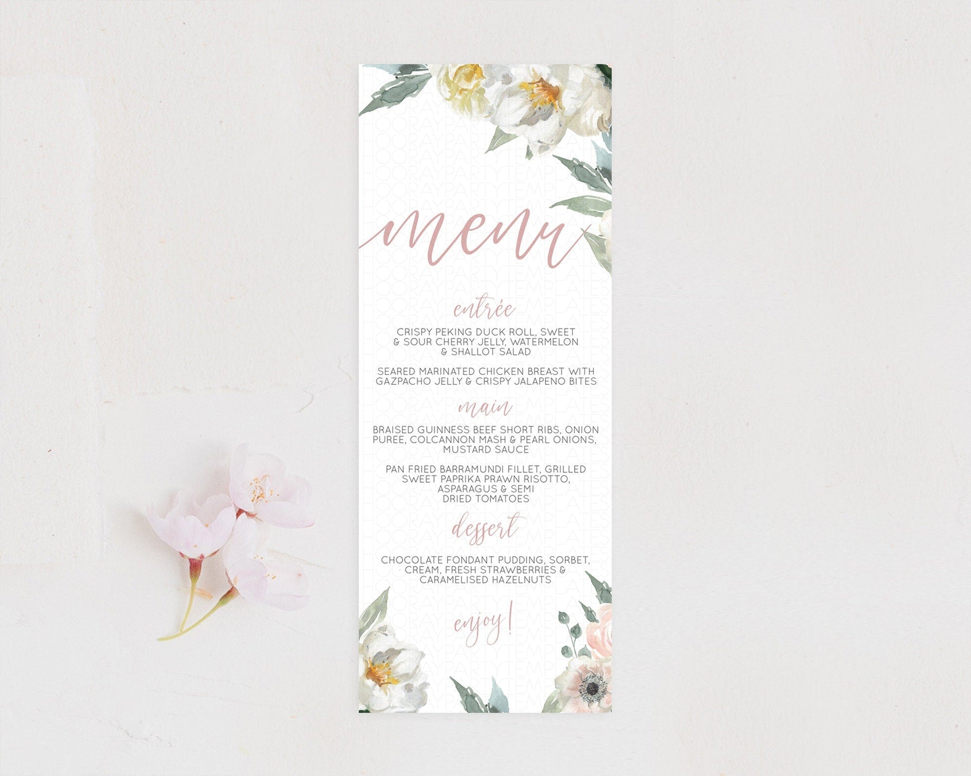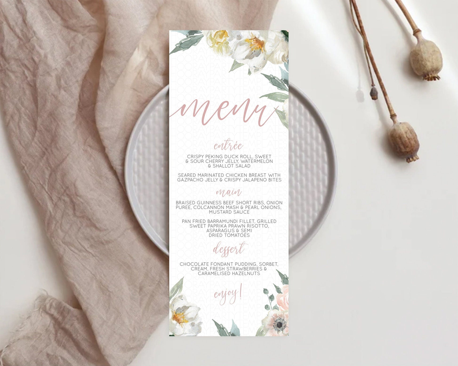 Secret Garden Menu Wildflower Menu Template Pastel Flower Garden Table Decor Boho Floral Dinner Dessert Floral Party Food Menu D10121