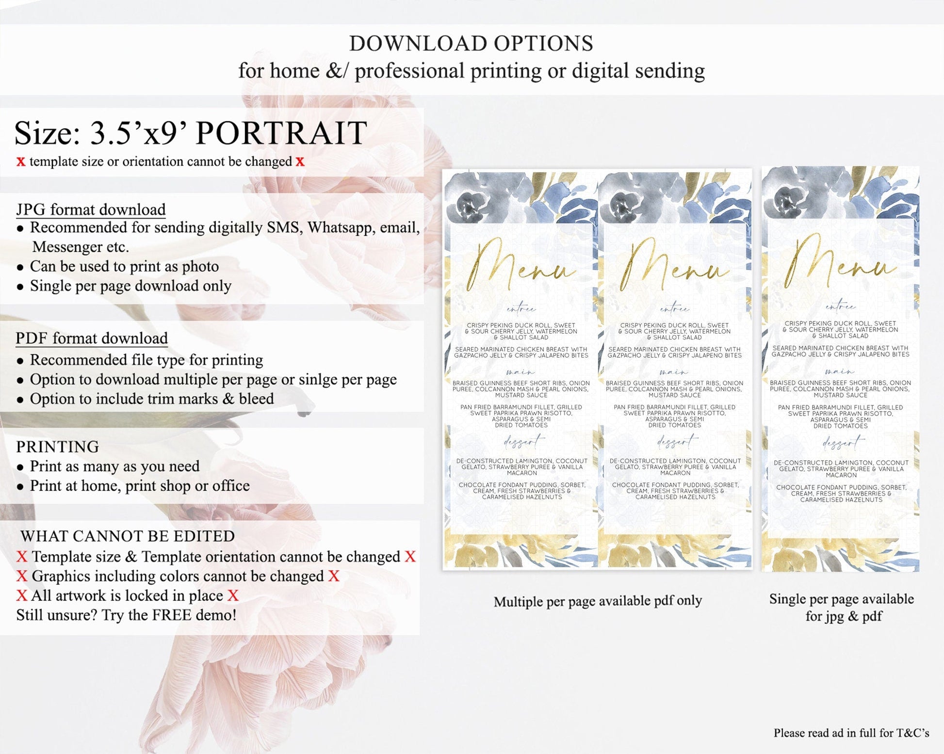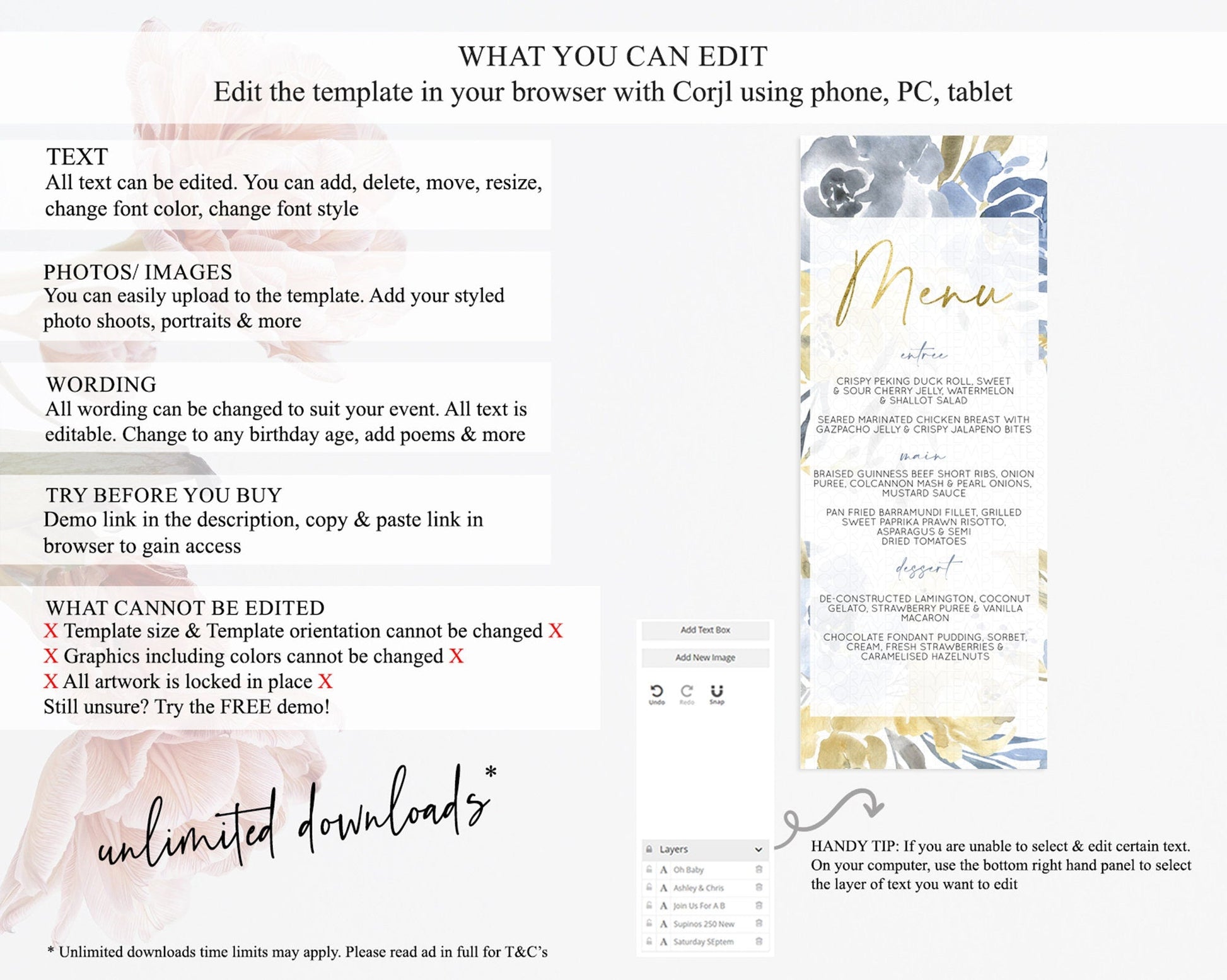 Secret Garden Menu Wildflower Menu Template Pastel Flower Garden Table Decor Boho Floral Dinner Dessert Floral Party Food Menu D10189