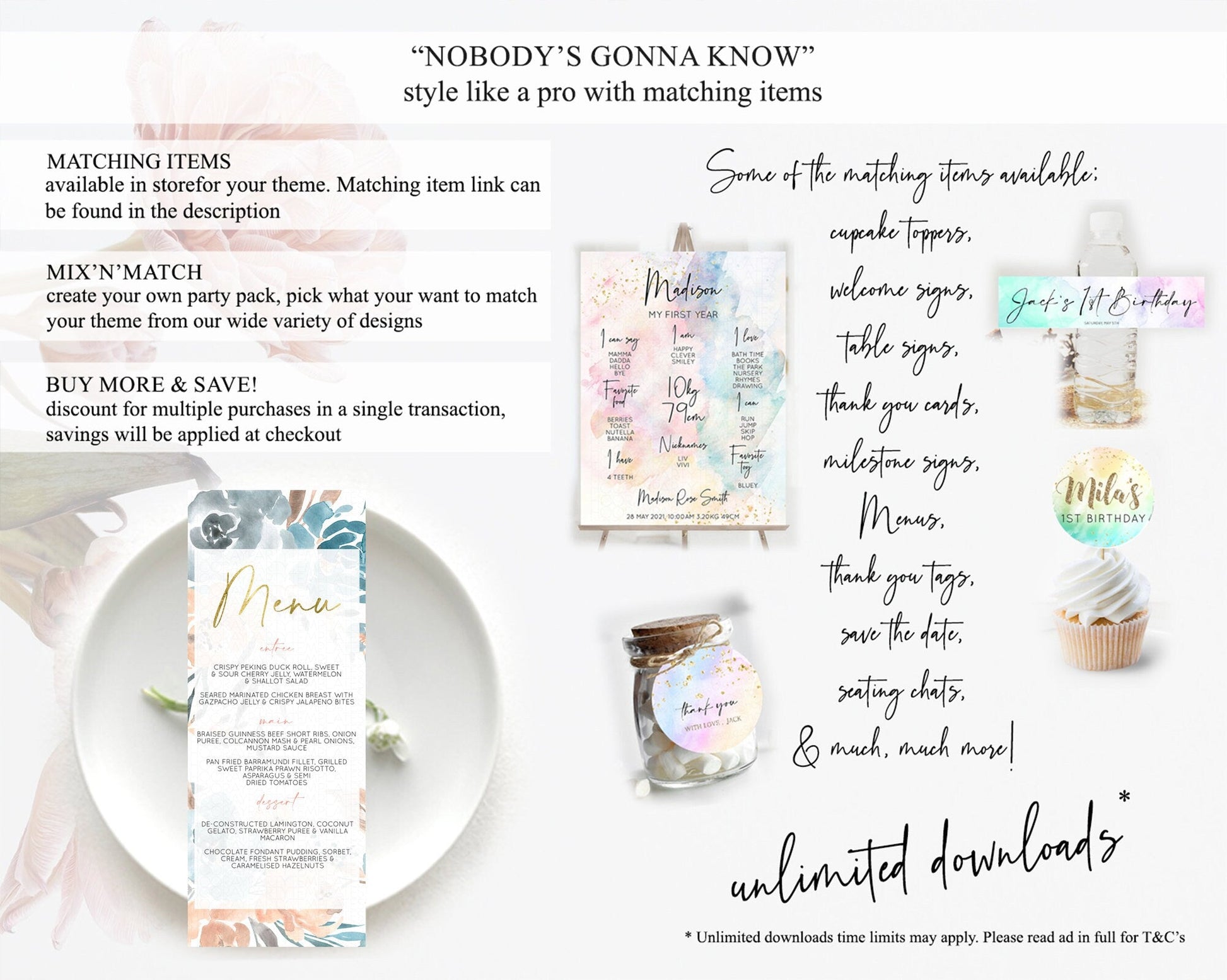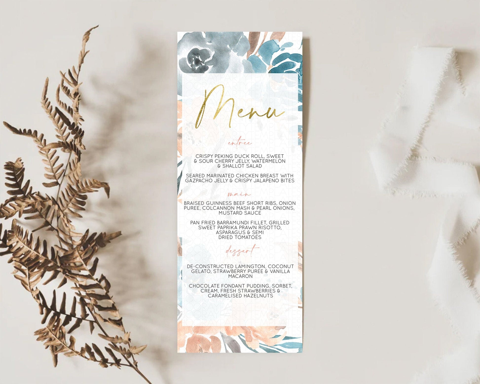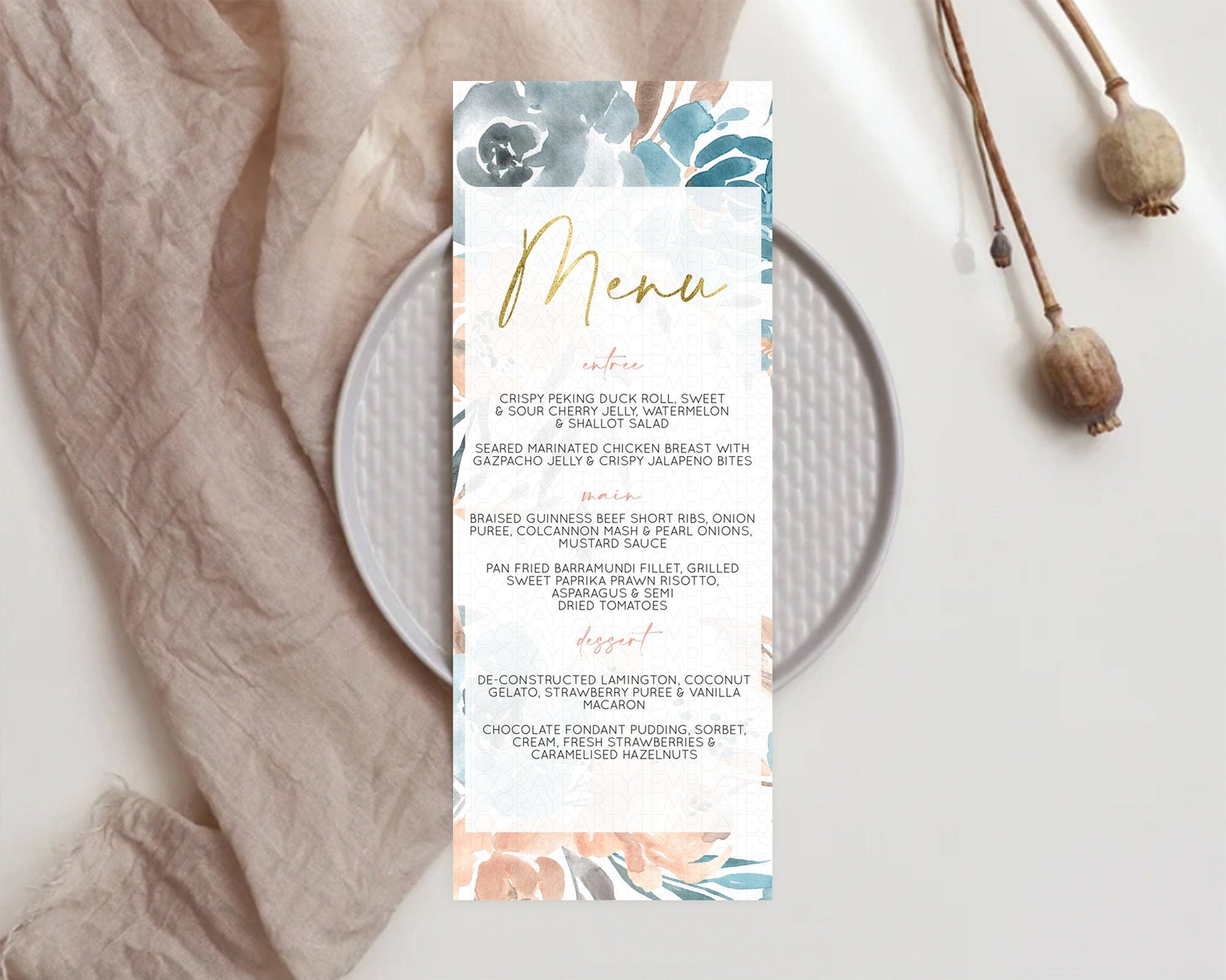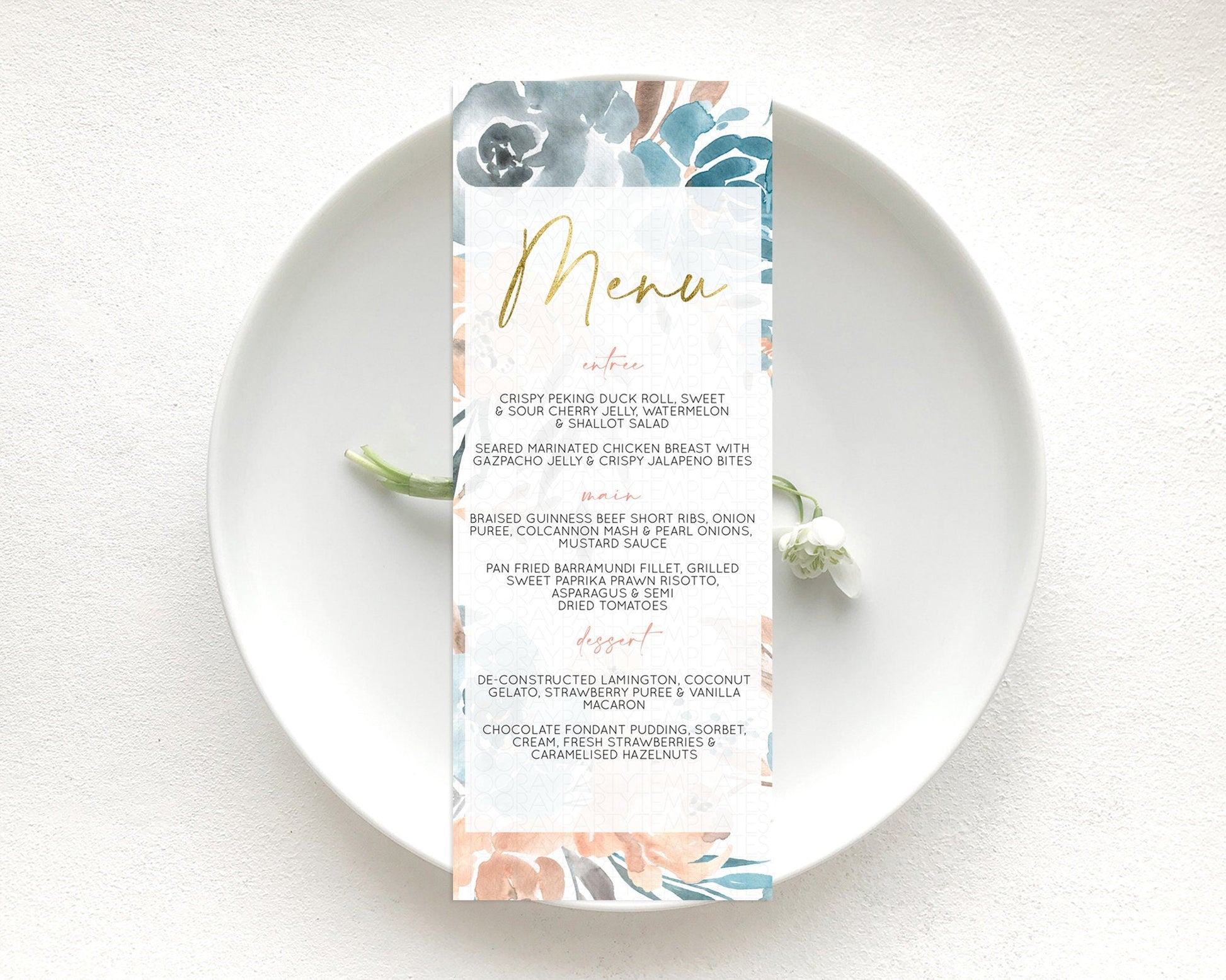 Secret Garden Menu Wildflower Menu Template Pastel Flower Garden Table Decor Boho Floral Dinner Dessert Floral Party Food Menu D10190