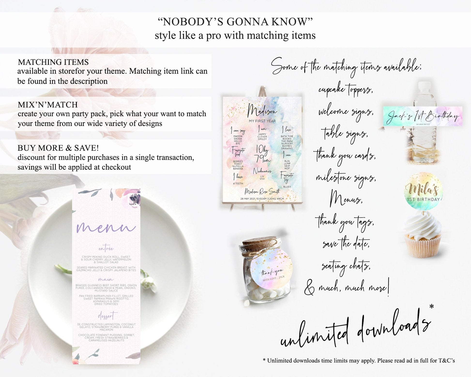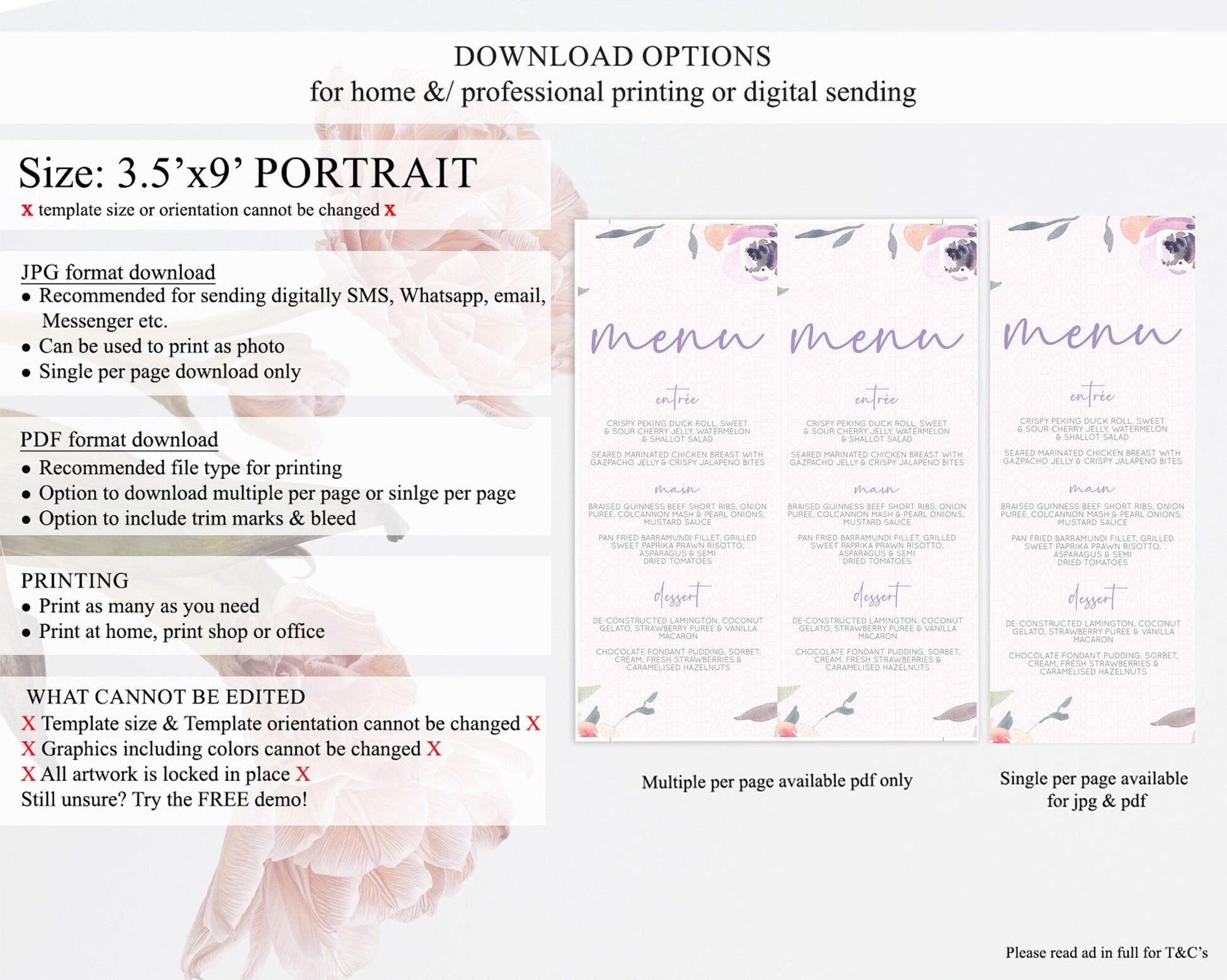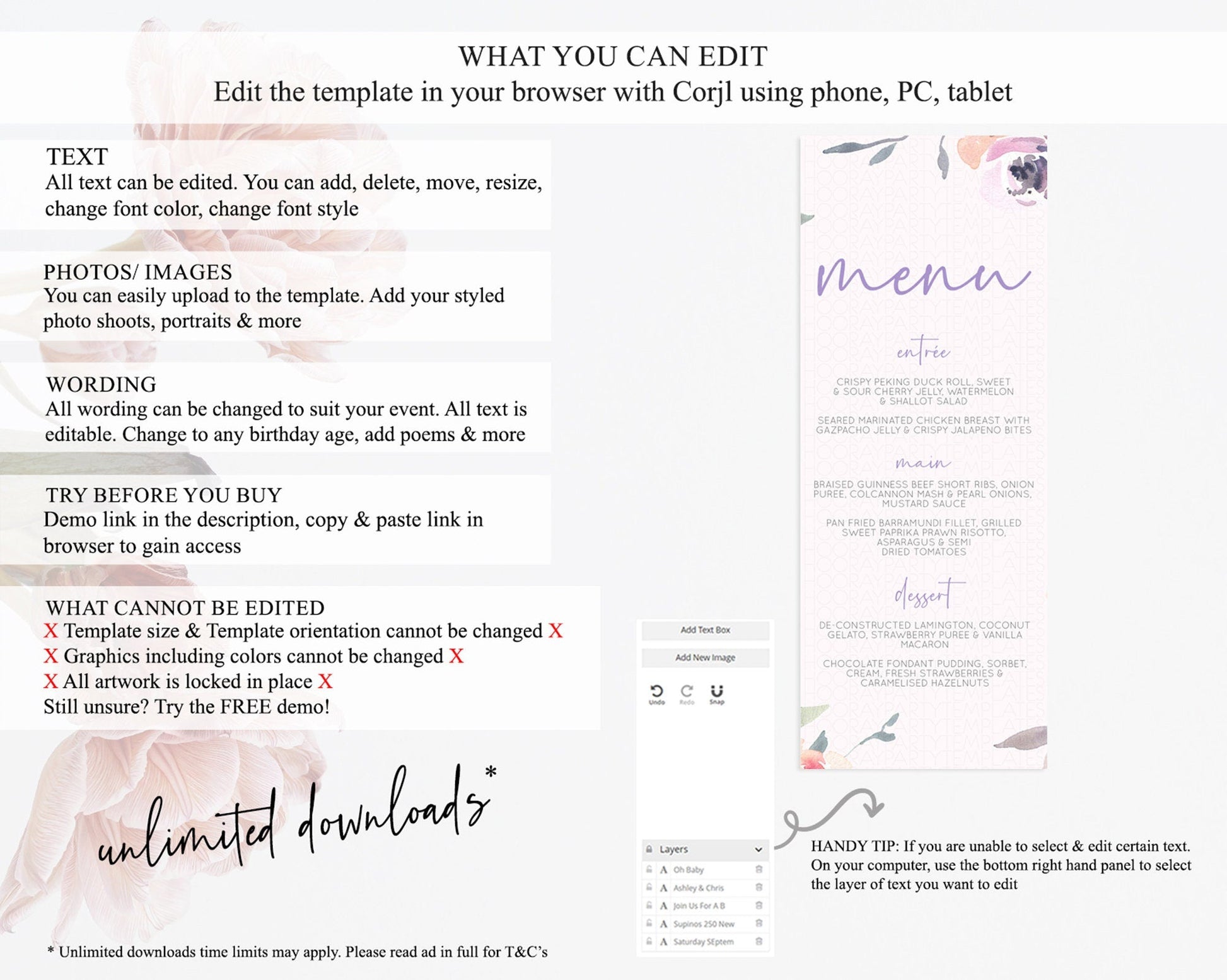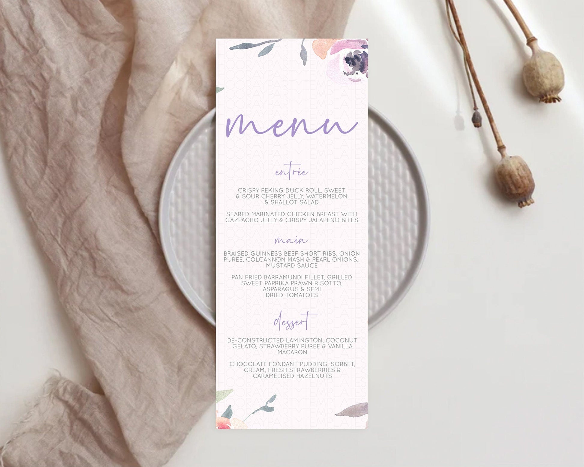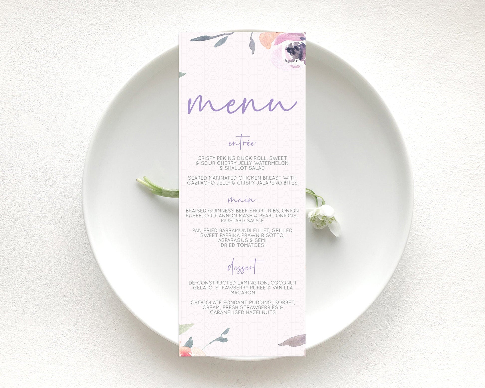 Secret Garden Menu Wildflower Menu Template Pastel Flower Garden Table Decor Boho Floral Dinner Dessert Floral Party Food Menu D10198