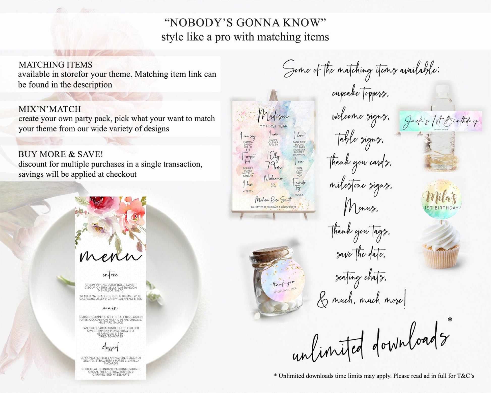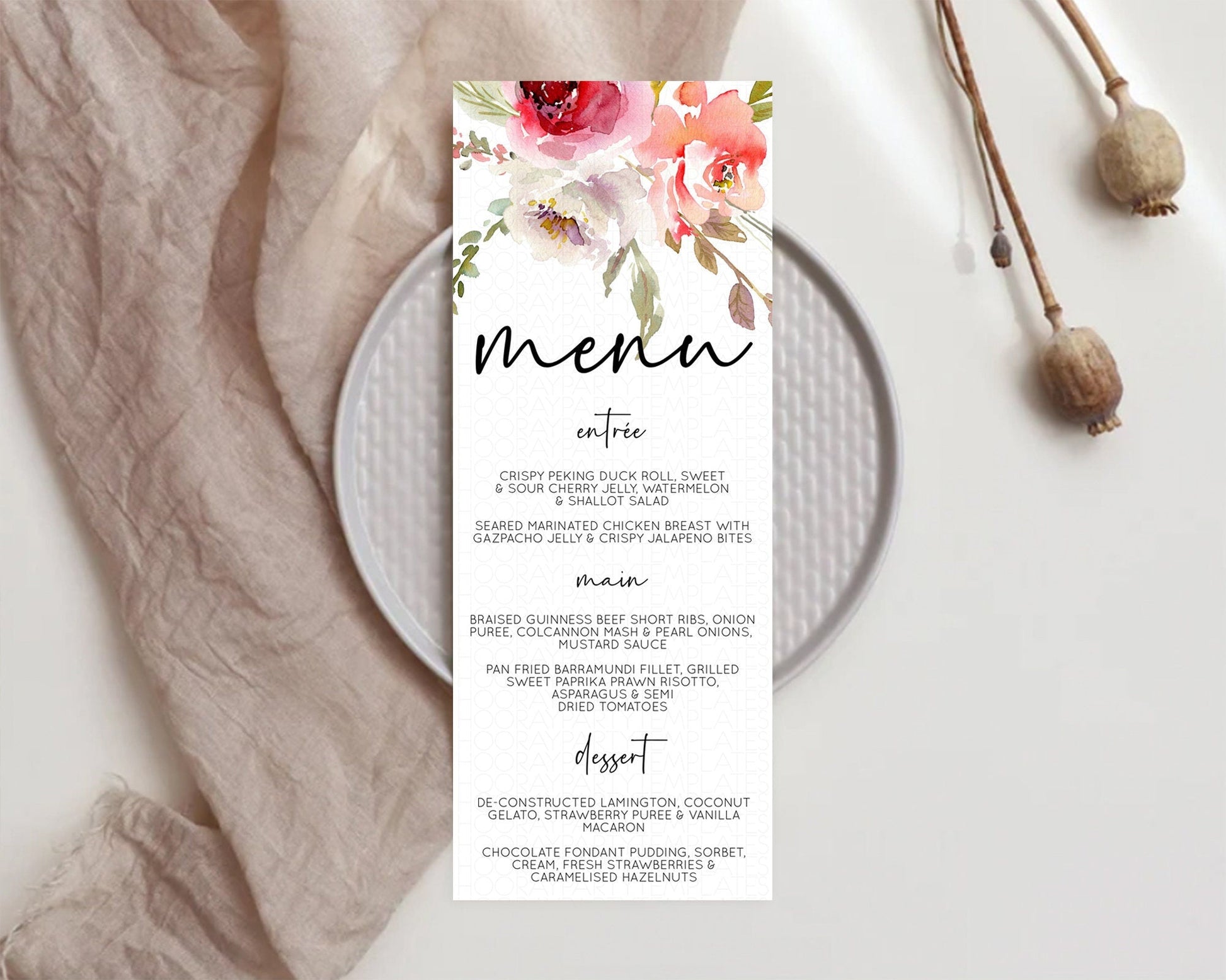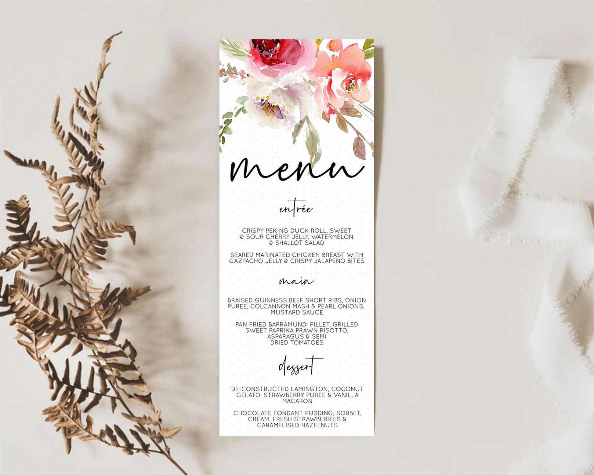 Secret Garden Menu Wildflower Menu Template Pastel Flower Garden Table Decor Boho Floral Dinner Dessert Floral Party Food Menu D10243
