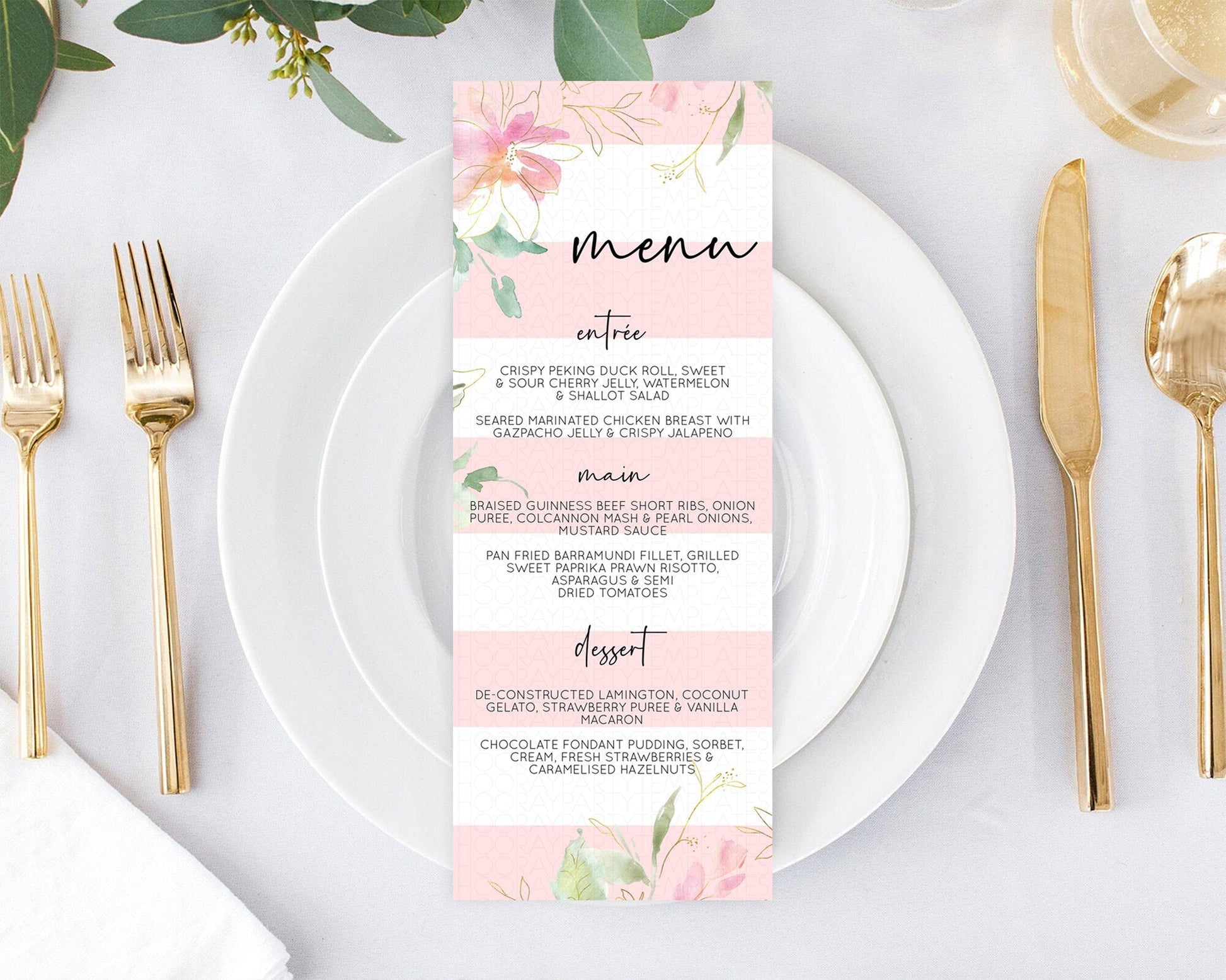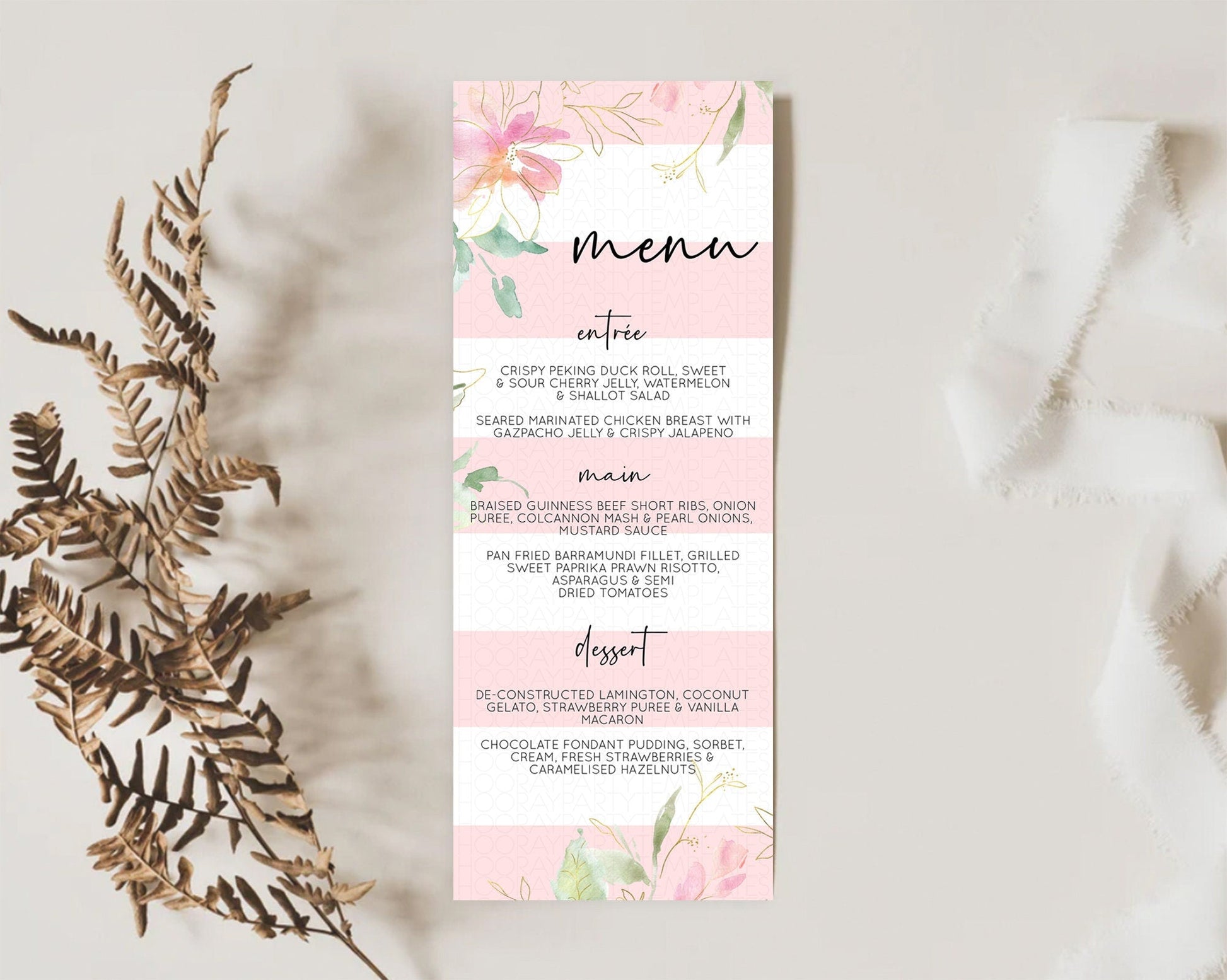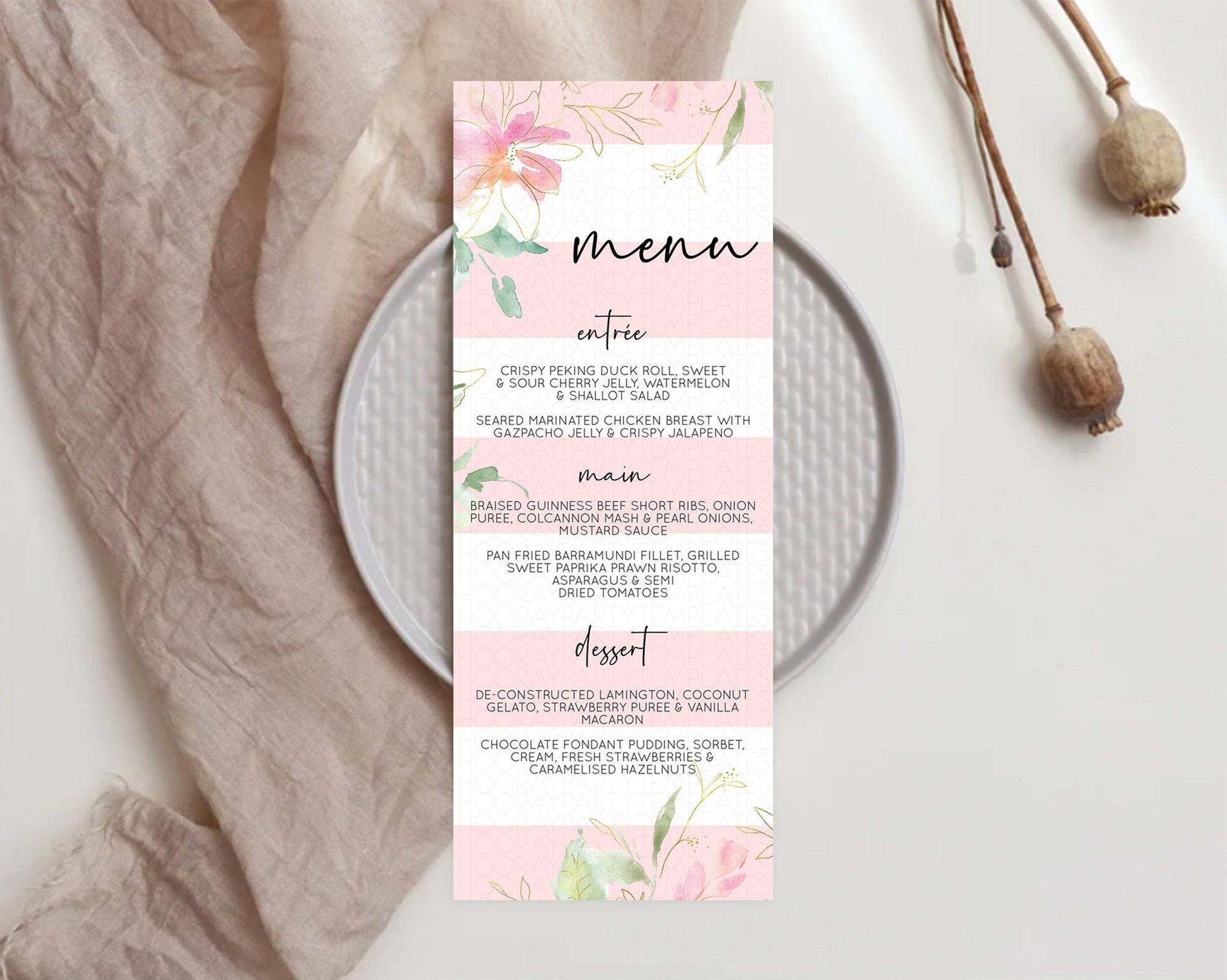 Secret Garden Menu Wildflower Menu Template Pastel Flower Garden Table Decor Boho Floral Dinner Dessert Floral Party Food Menu D10300