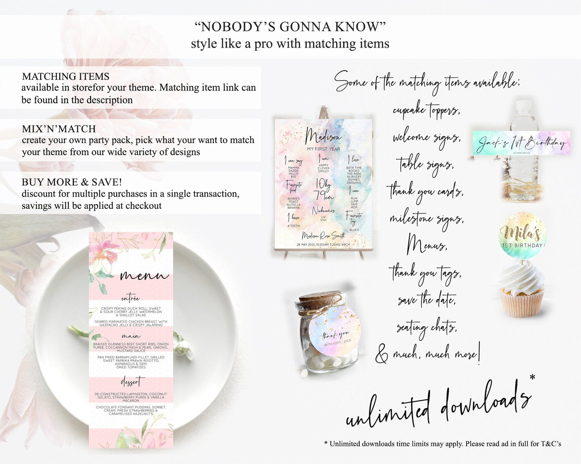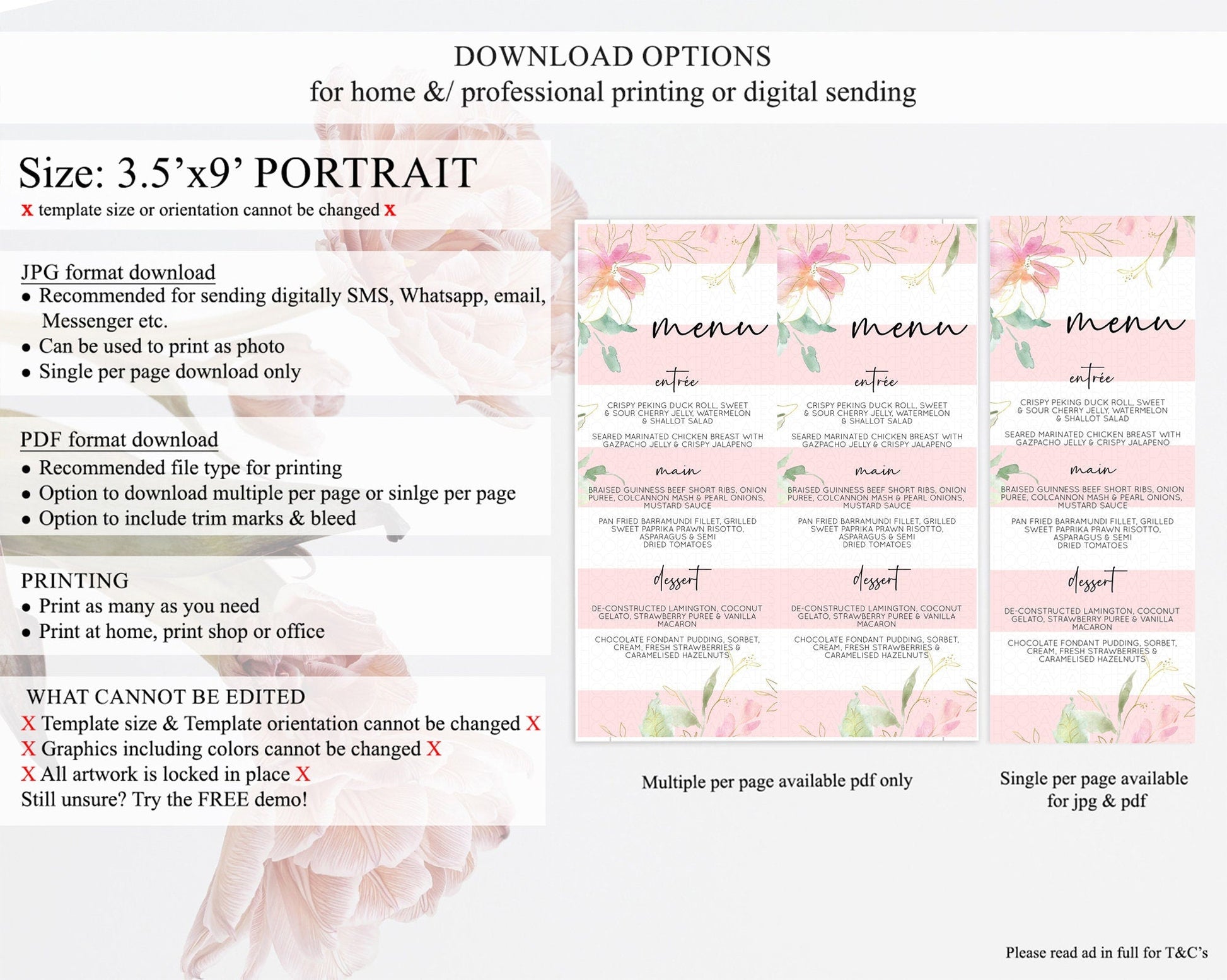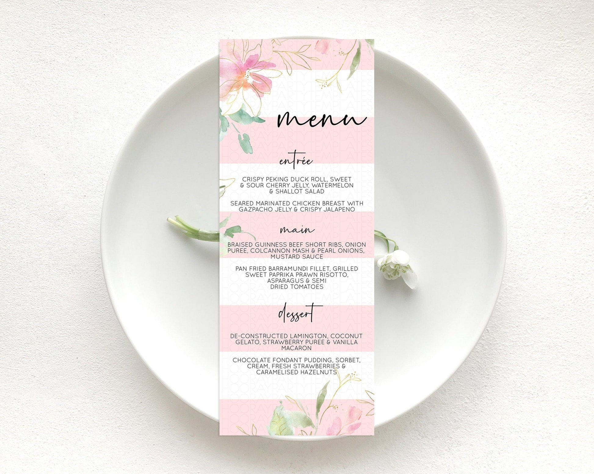 Secret Garden Menu Wildflower Menu Template Pastel Flower Garden Table Decor Boho Floral Dinner Dessert Floral Party Food Menu D10300