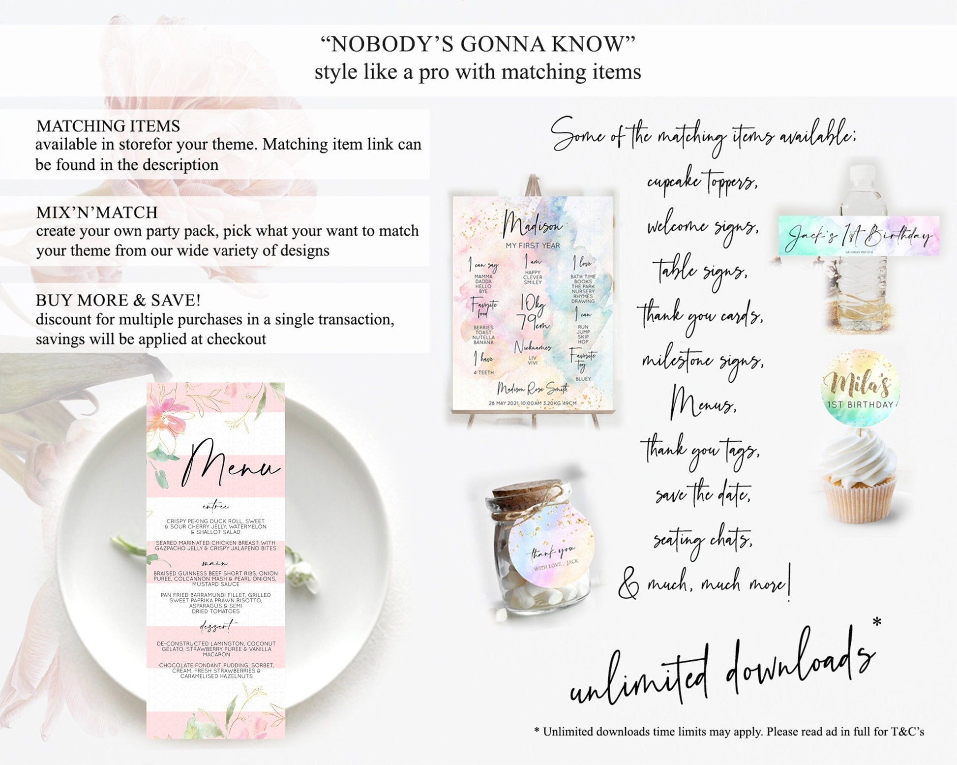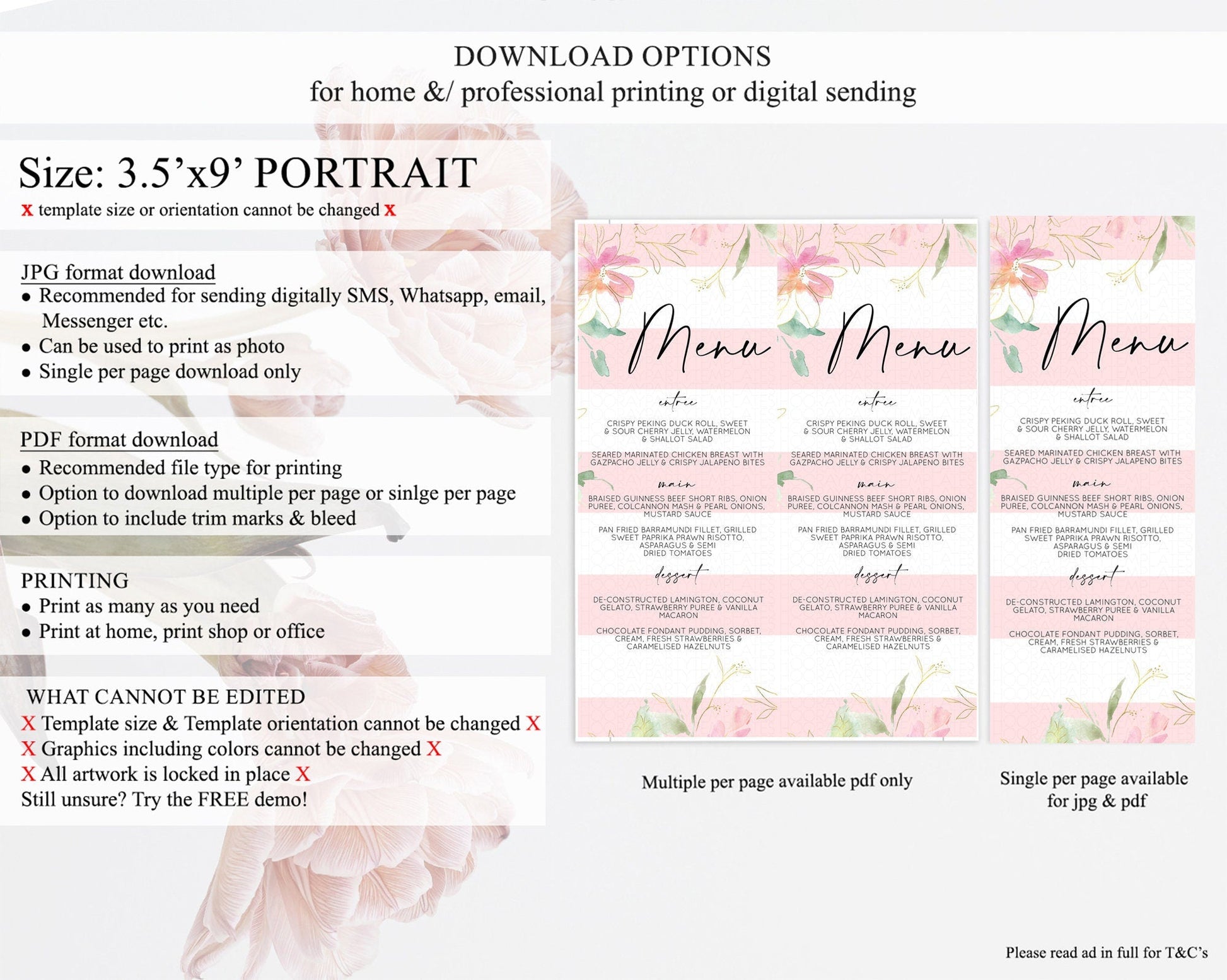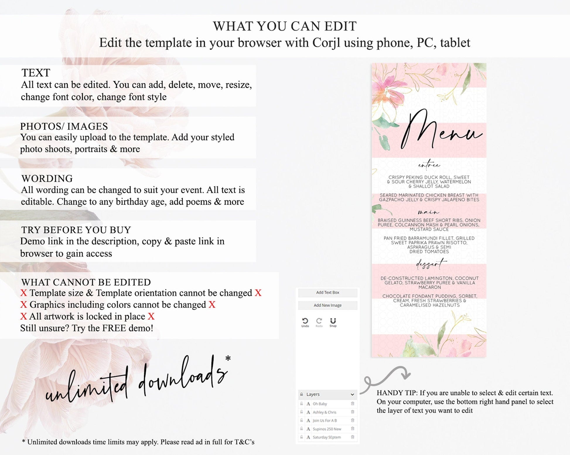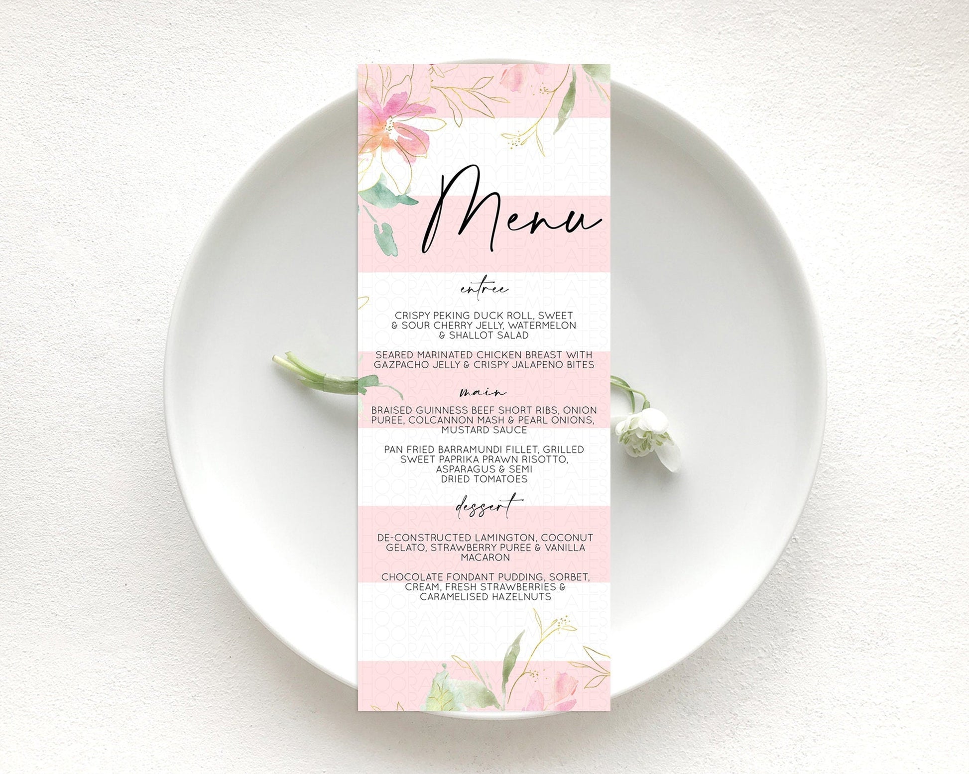 Secret Garden Menu Wildflower Menu Template Pastel Flower Garden Table Decor Boho Floral Dinner Dessert Floral Party Food Menu D10301