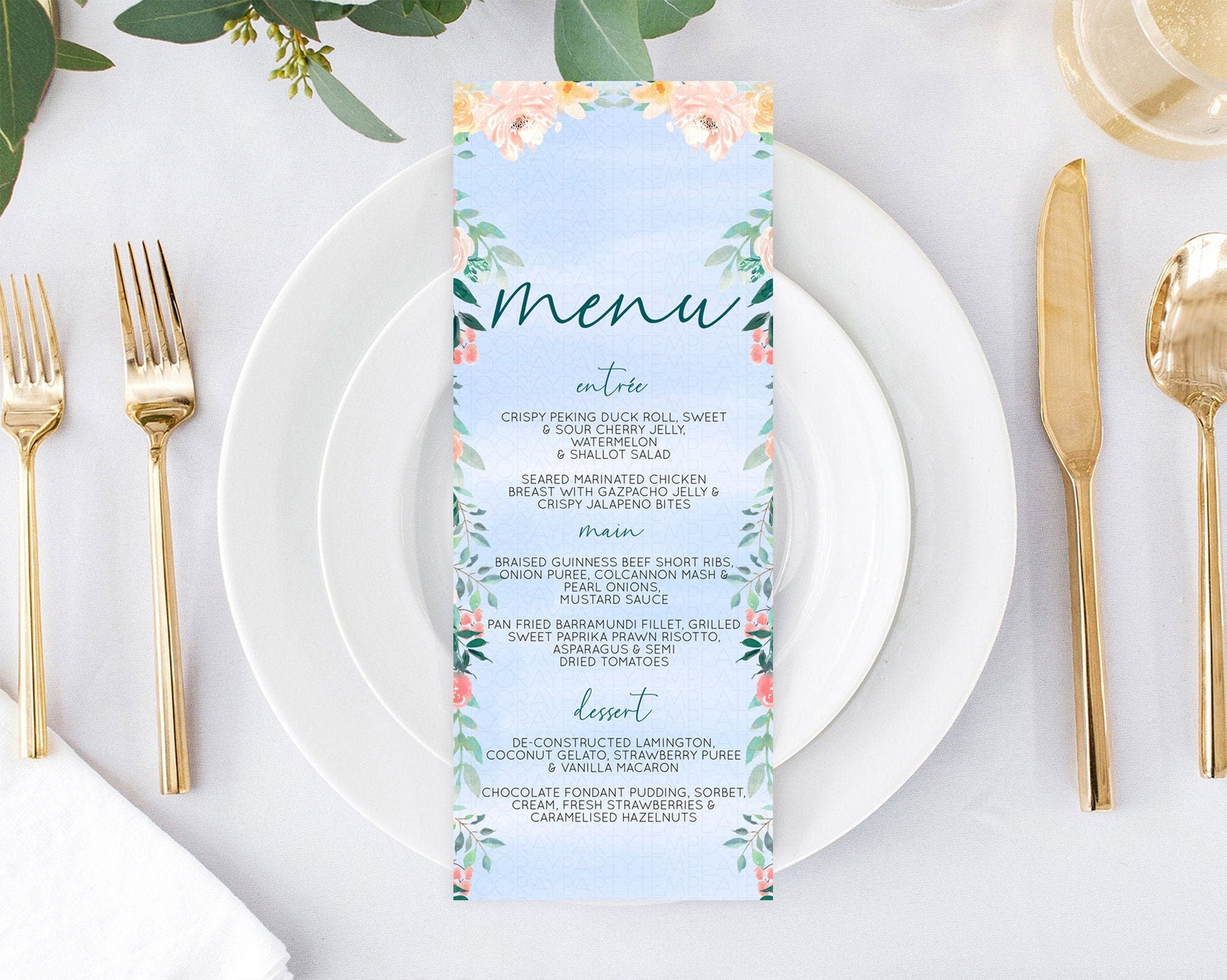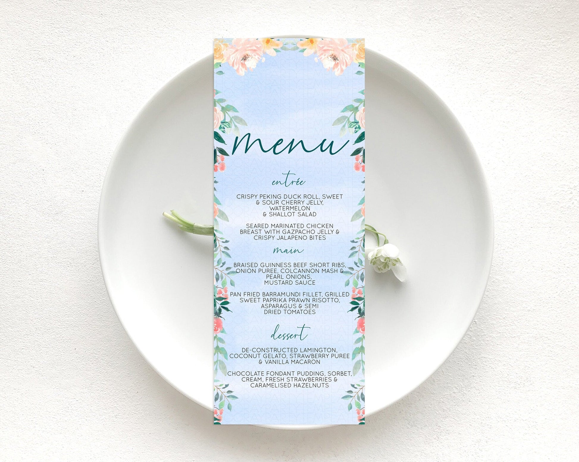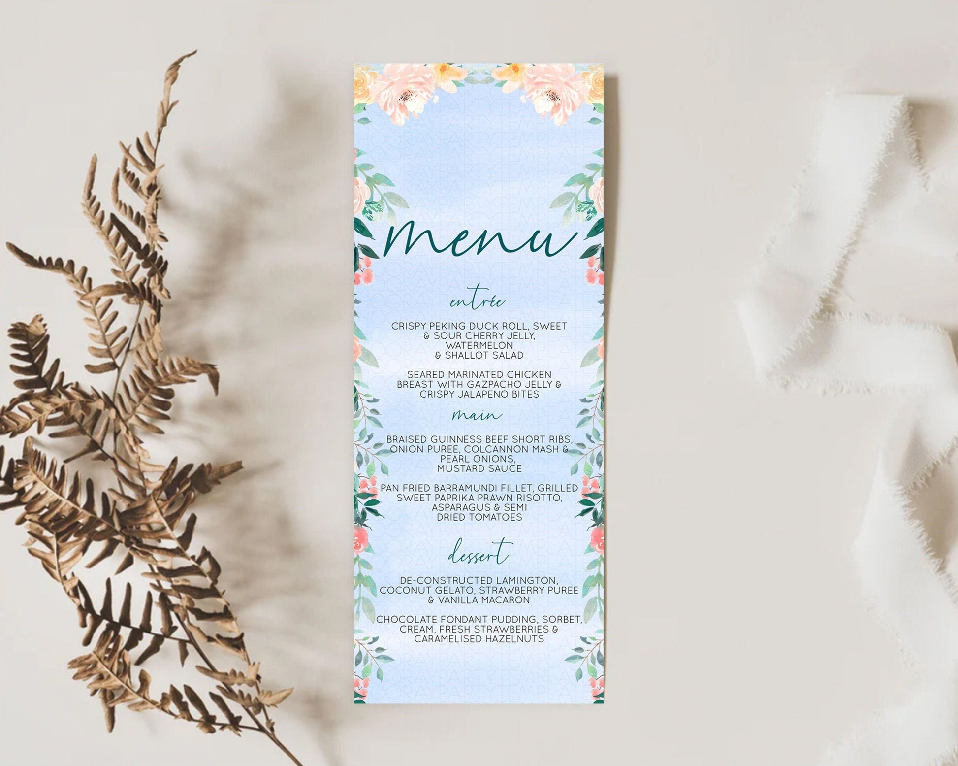Secret Garden Menu Wildflower Menu Template Pastel Flower Garden Table Decor Boho Floral Dinner Dessert Floral Party Food Menu D10337