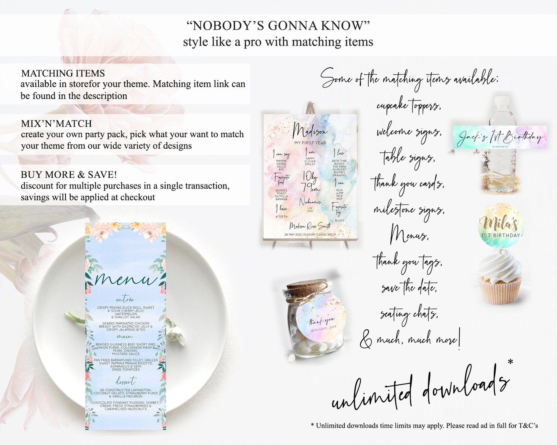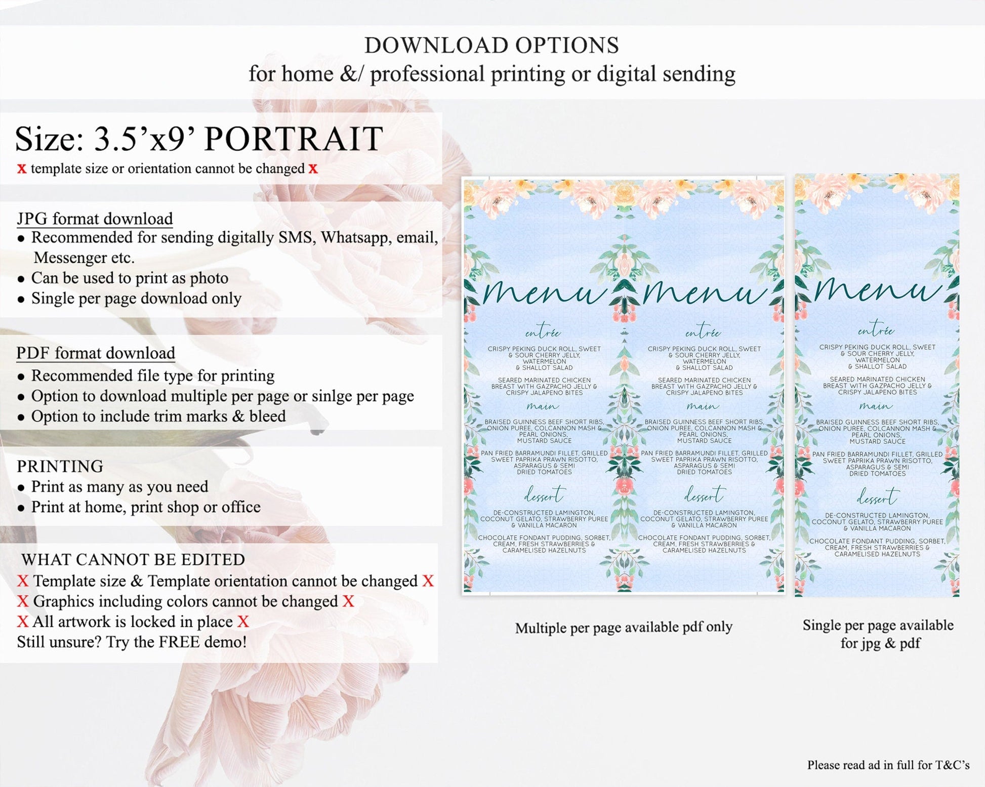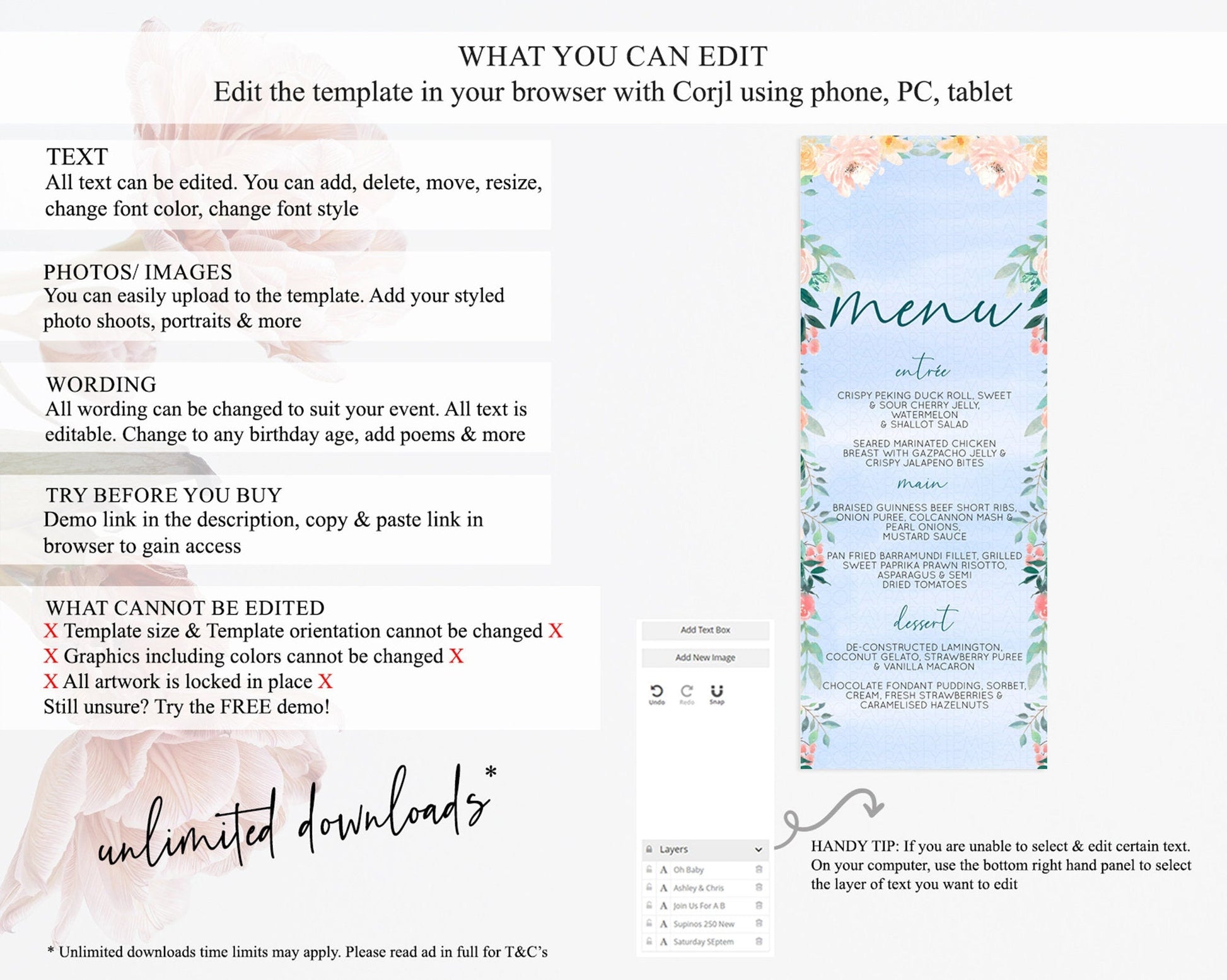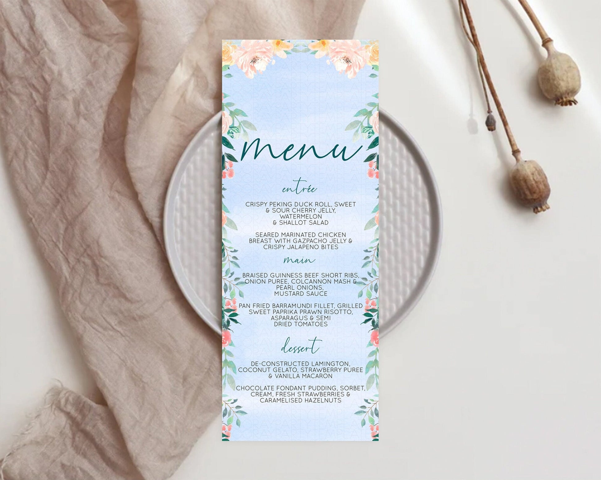Secret Garden Menu Wildflower Menu Template Pastel Flower Garden Table Decor Boho Floral Dinner Dessert Floral Party Food Menu D10337
