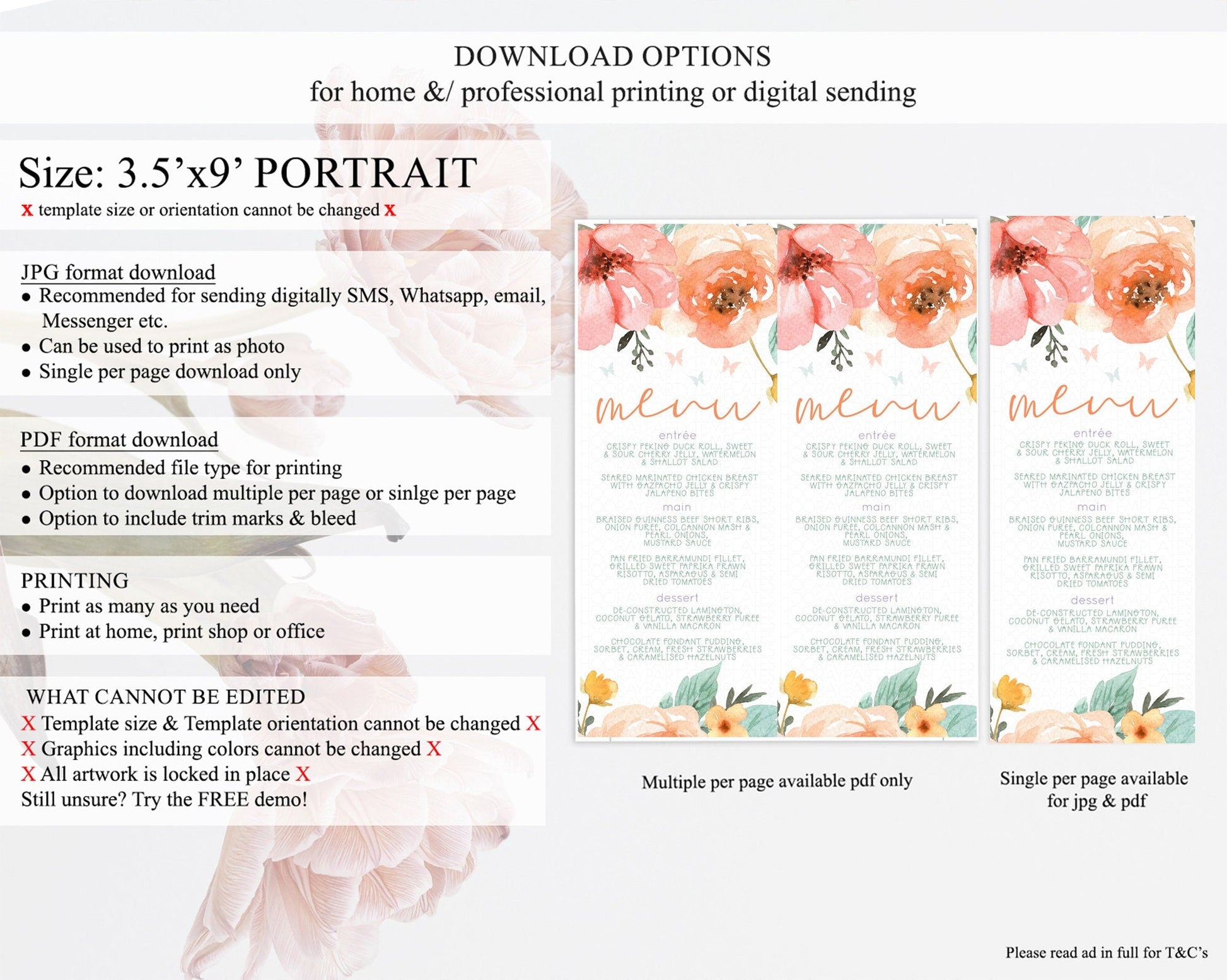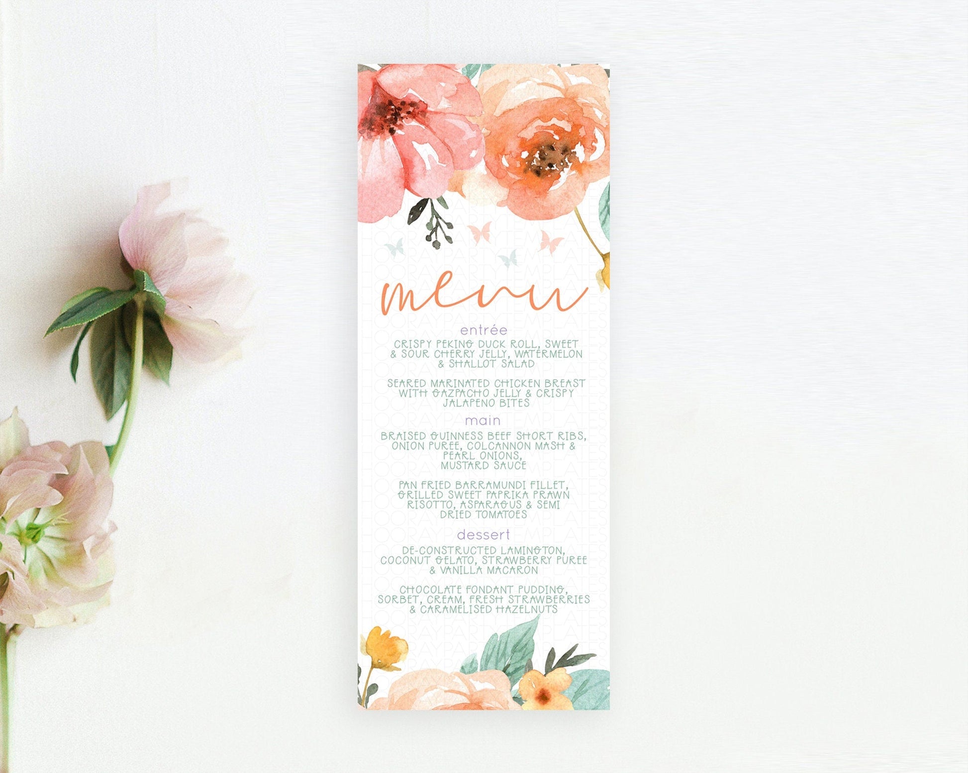 Secret Garden Menu Wildflower Menu Template Pastel Flower Garden Table Decor Boho Floral Dinner Dessert Floral Party Food Menu D10347