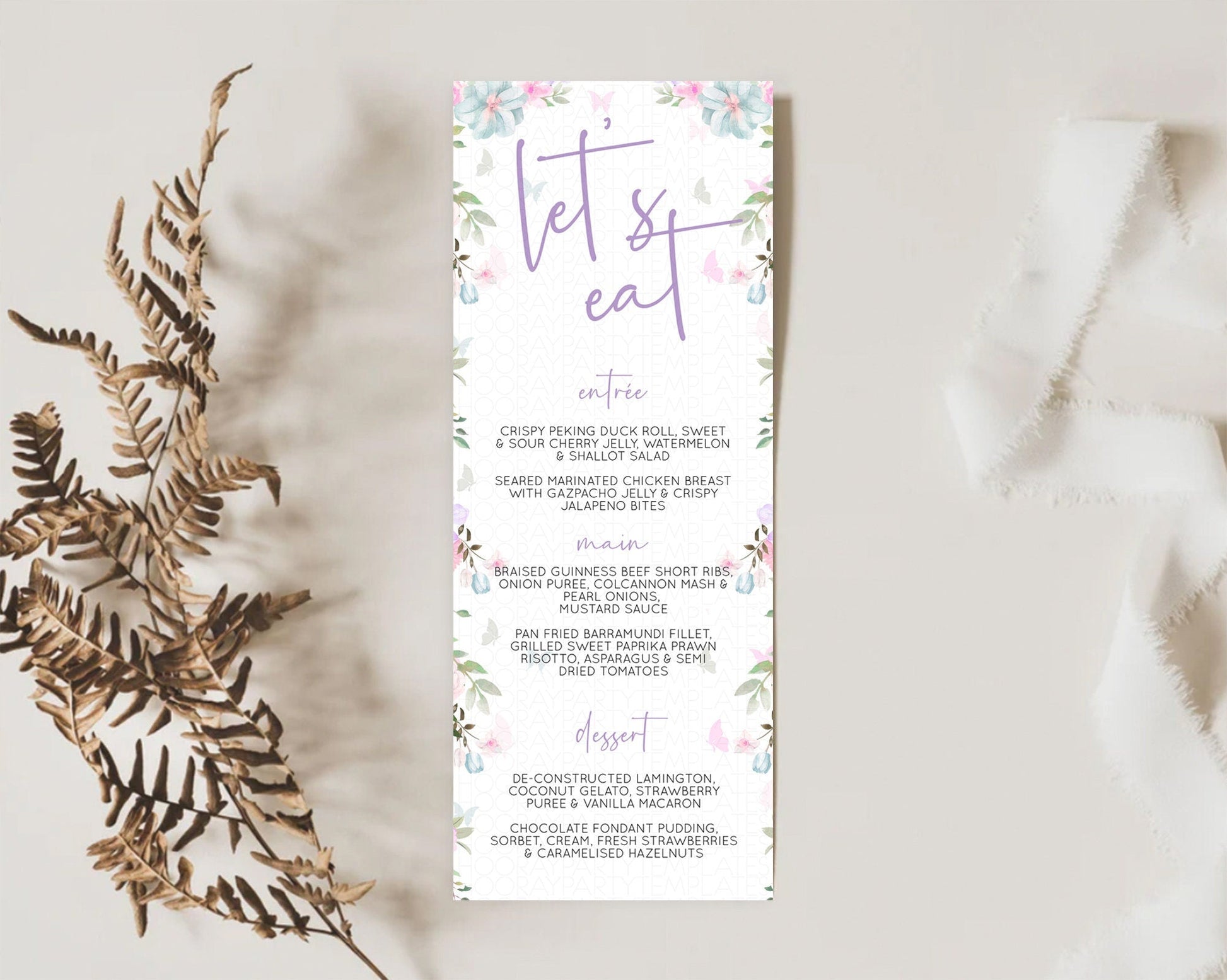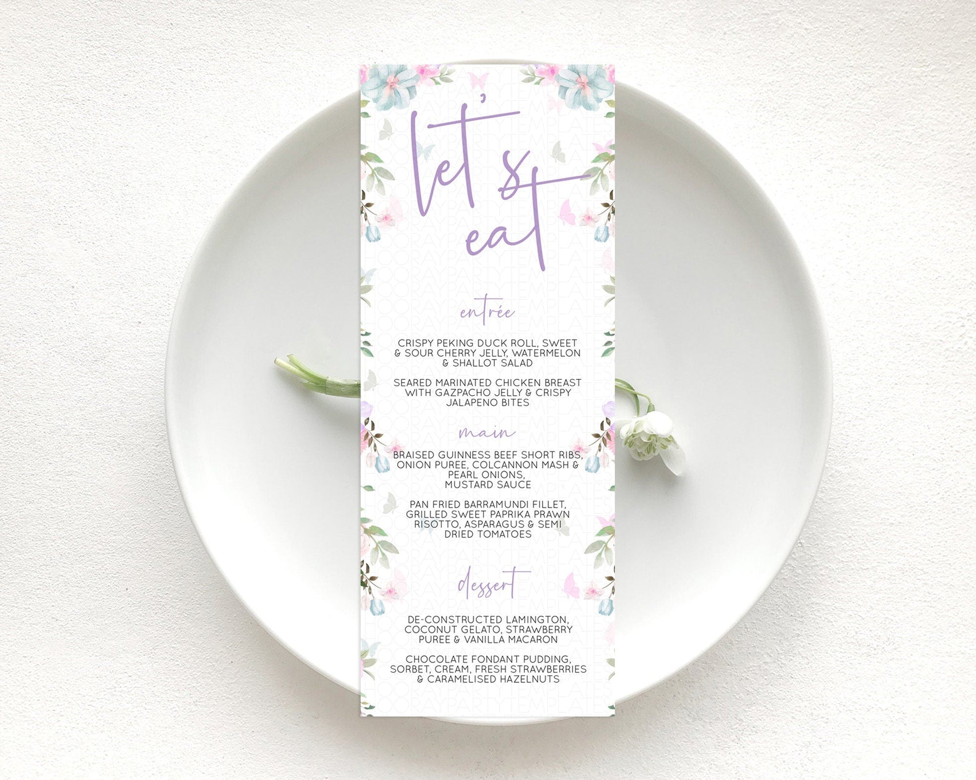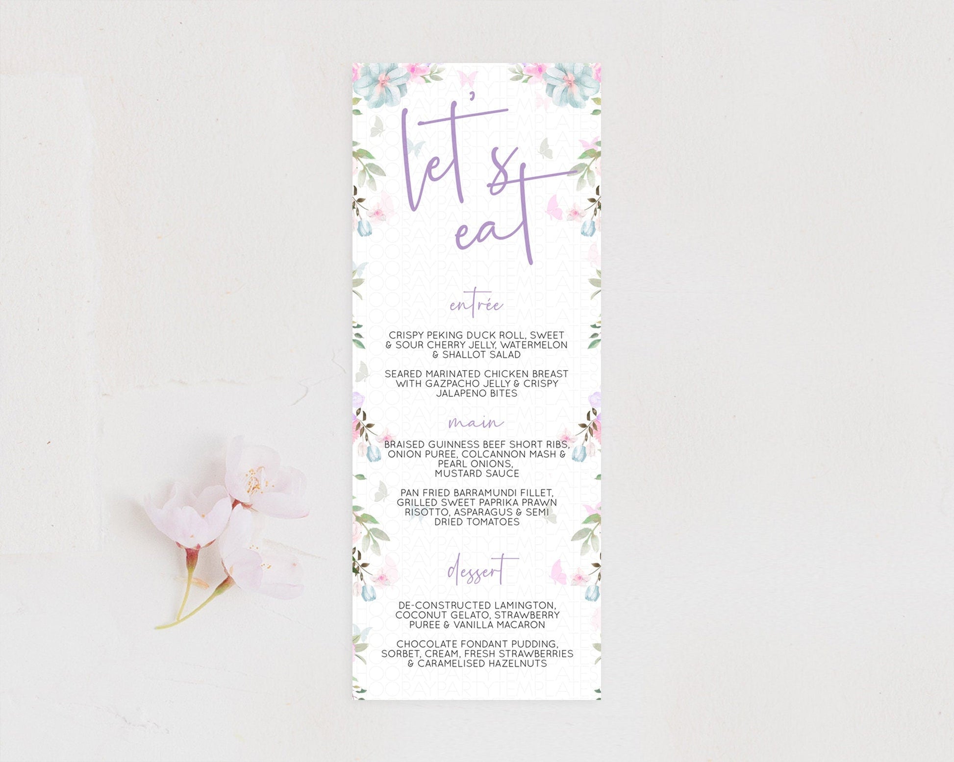 Secret Garden Menu Wildflower Menu Template Pastel Flower Garden Table Decor Boho Floral Dinner Dessert Floral Party Food Menu D10494