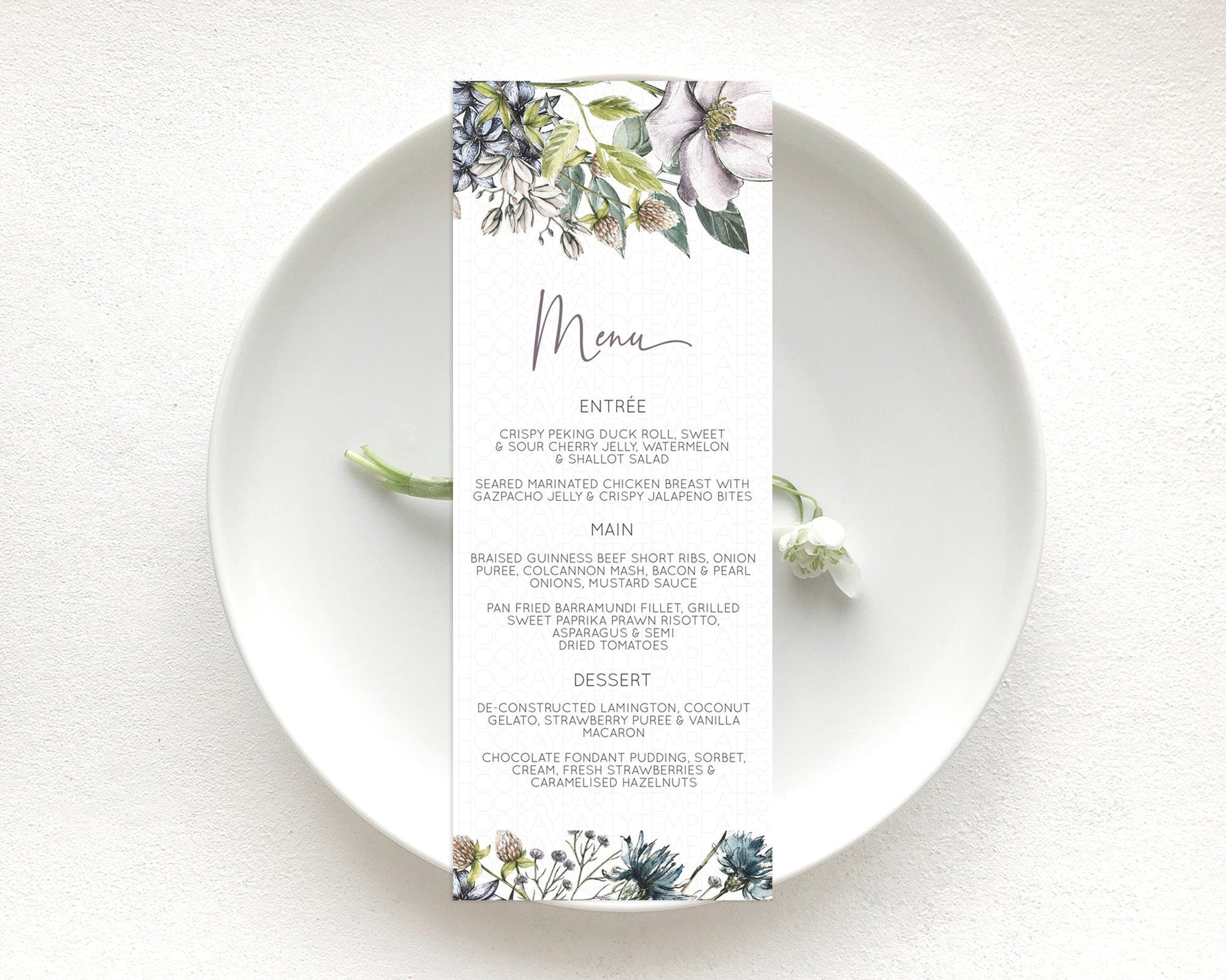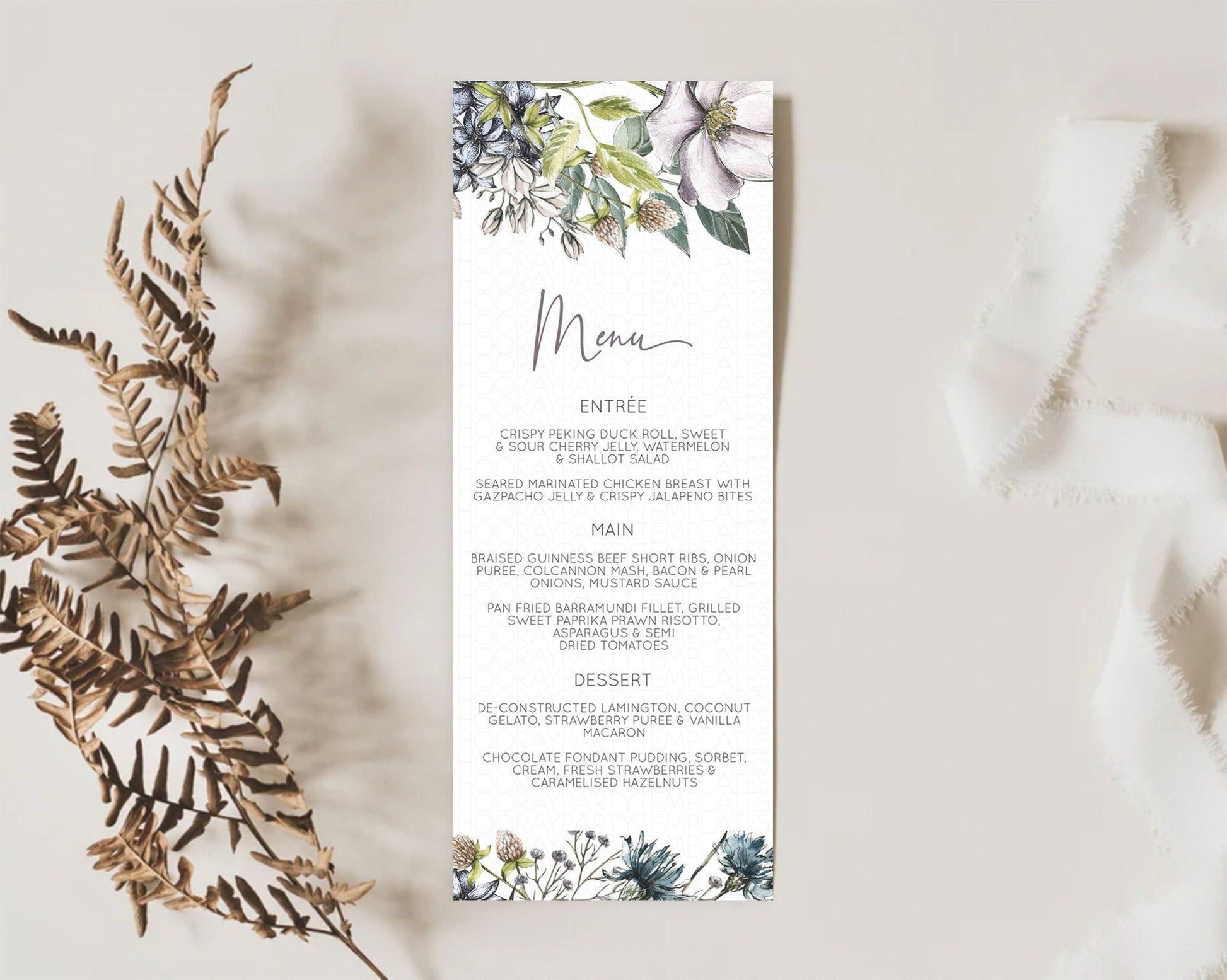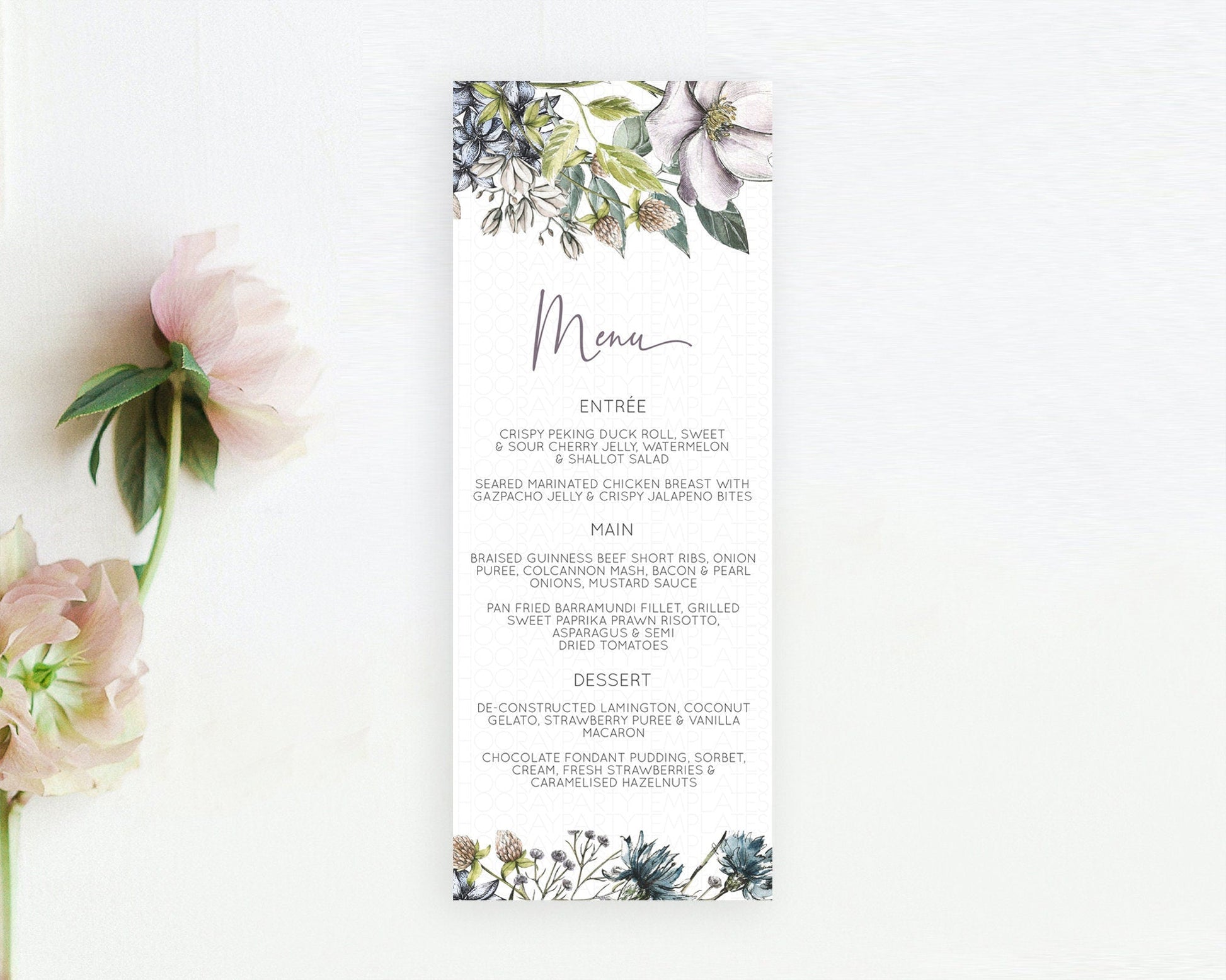 Secret Garden Menu Wildflower Menu Template Pastel Flower Garden Table Decor Boho Floral Dinner Dessert Floral Party Food Menu D10501