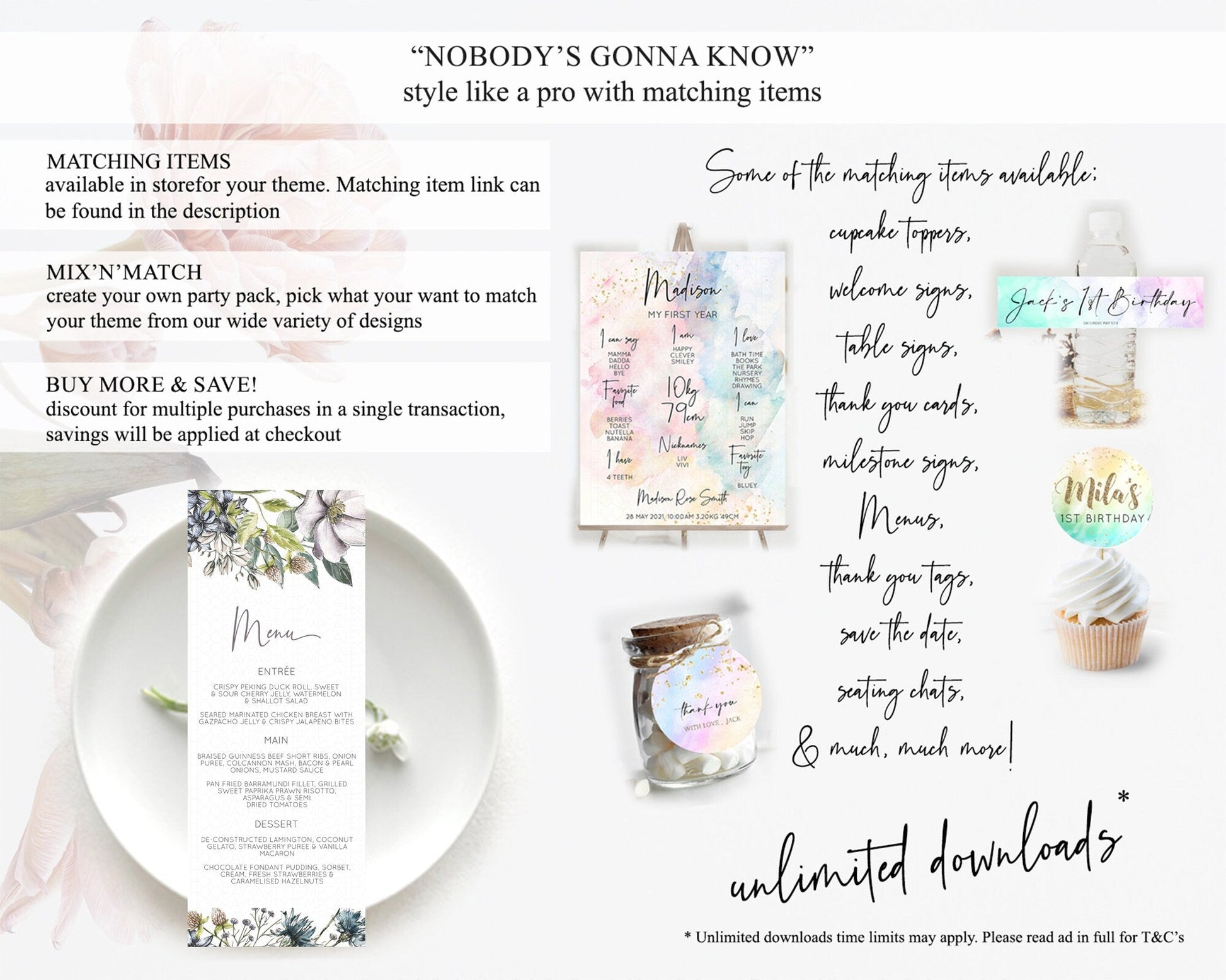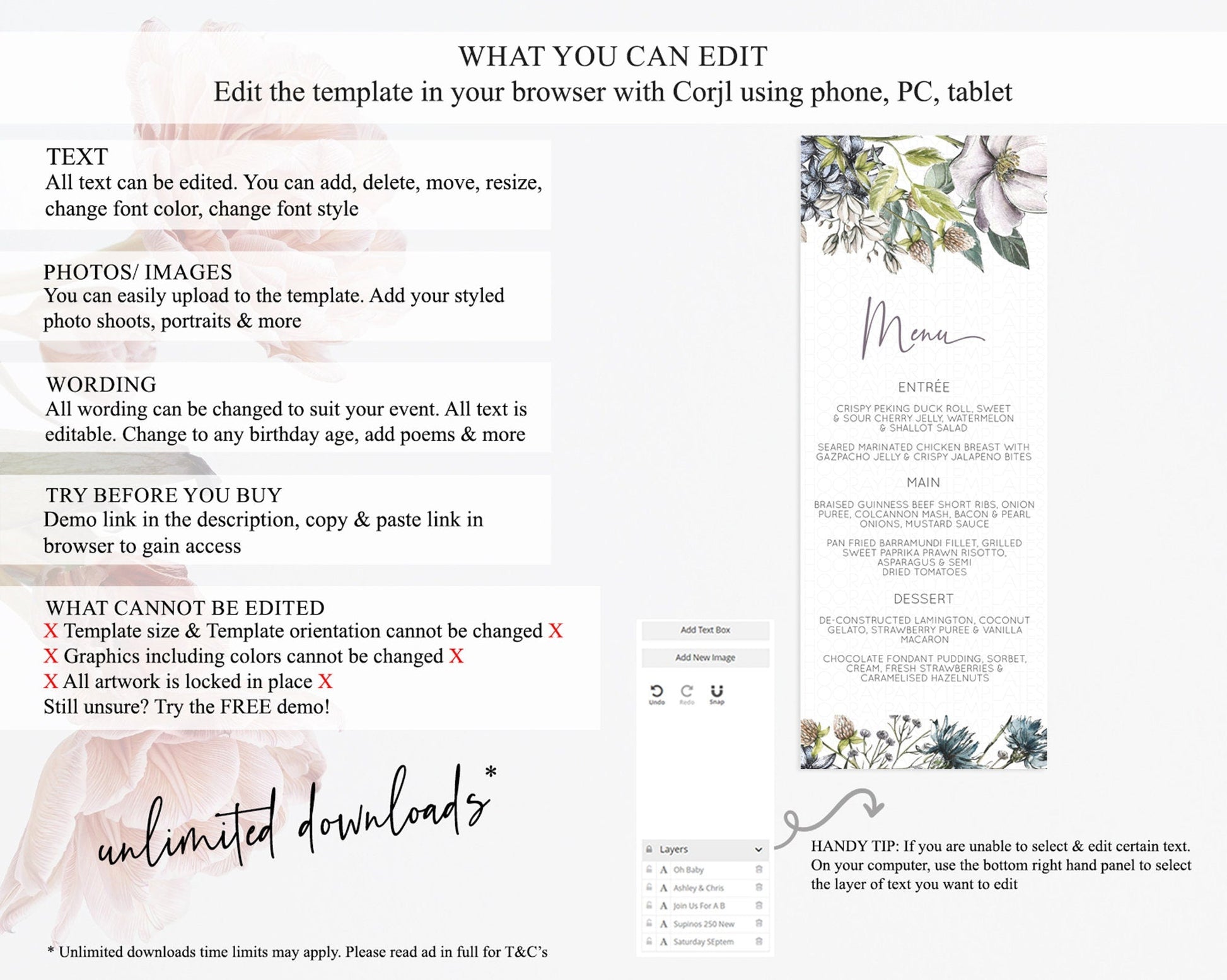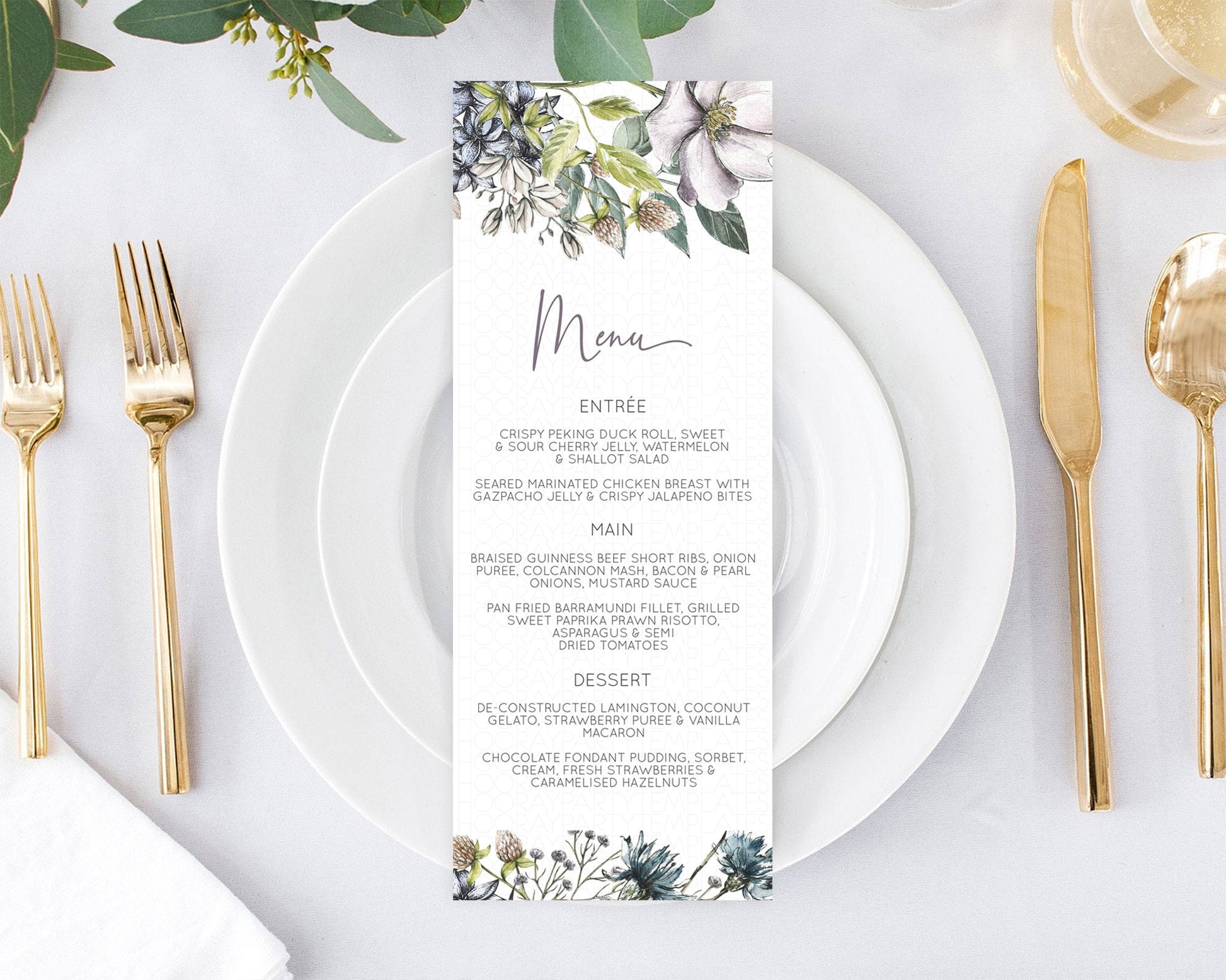 Secret Garden Menu Wildflower Menu Template Pastel Flower Garden Table Decor Boho Floral Dinner Dessert Floral Party Food Menu D10501