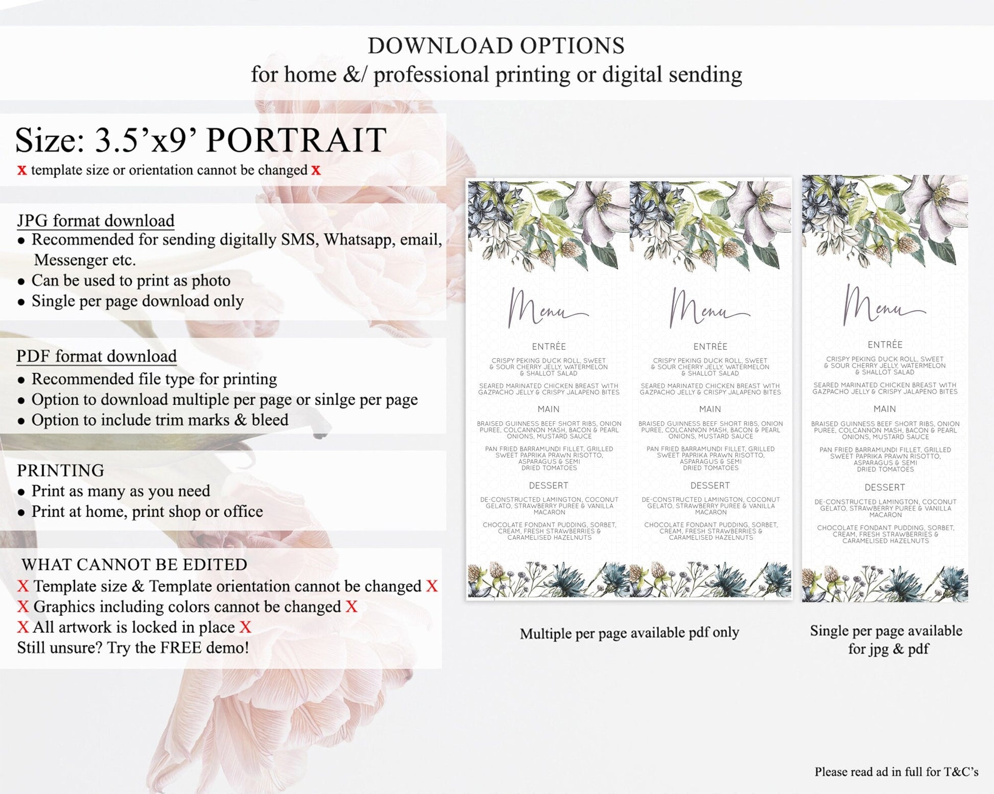 • Template size & orientation cannot be changed. Please use the demo link to confirm this product suits your needs.
