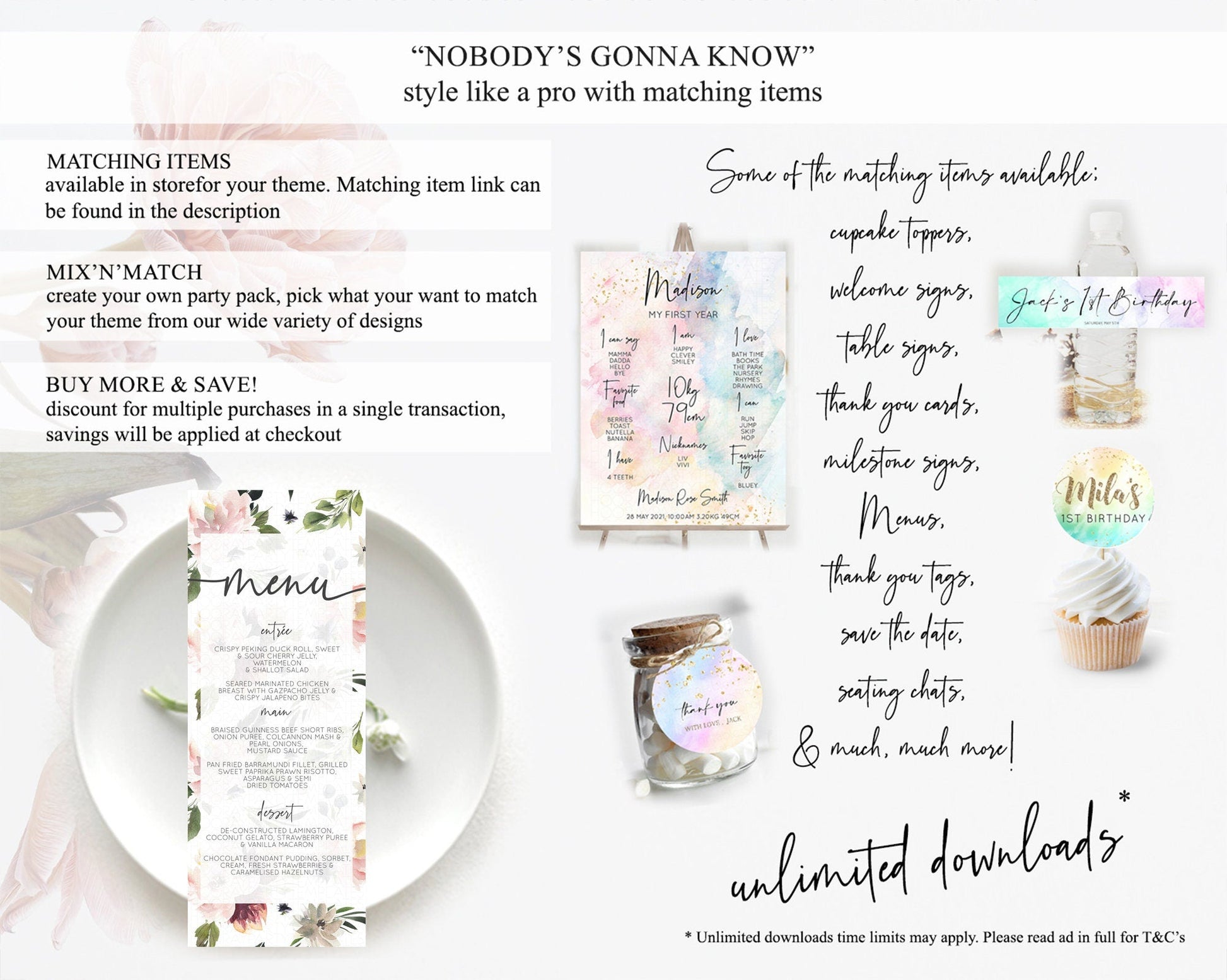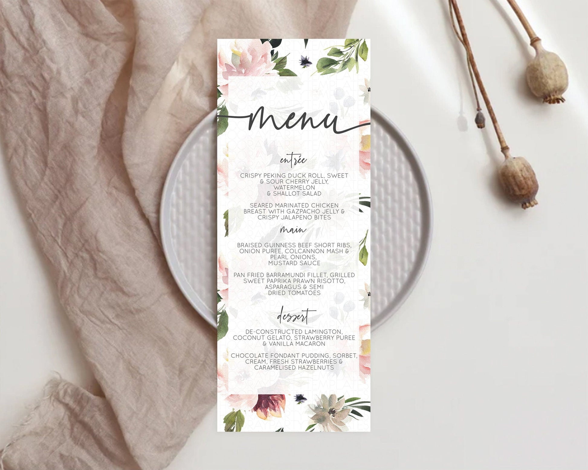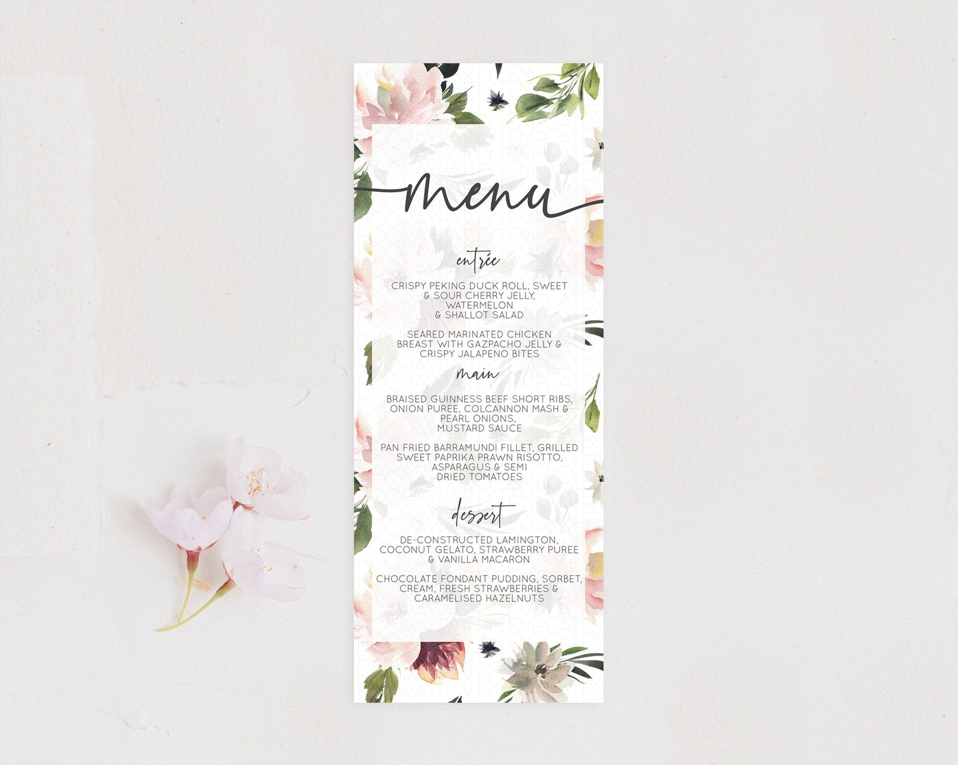 Secret Garden Menu Wildflower Menu Template Pastel Flower Garden Table Decor Boho Floral Dinner Dessert Floral Party Food Menu D10538