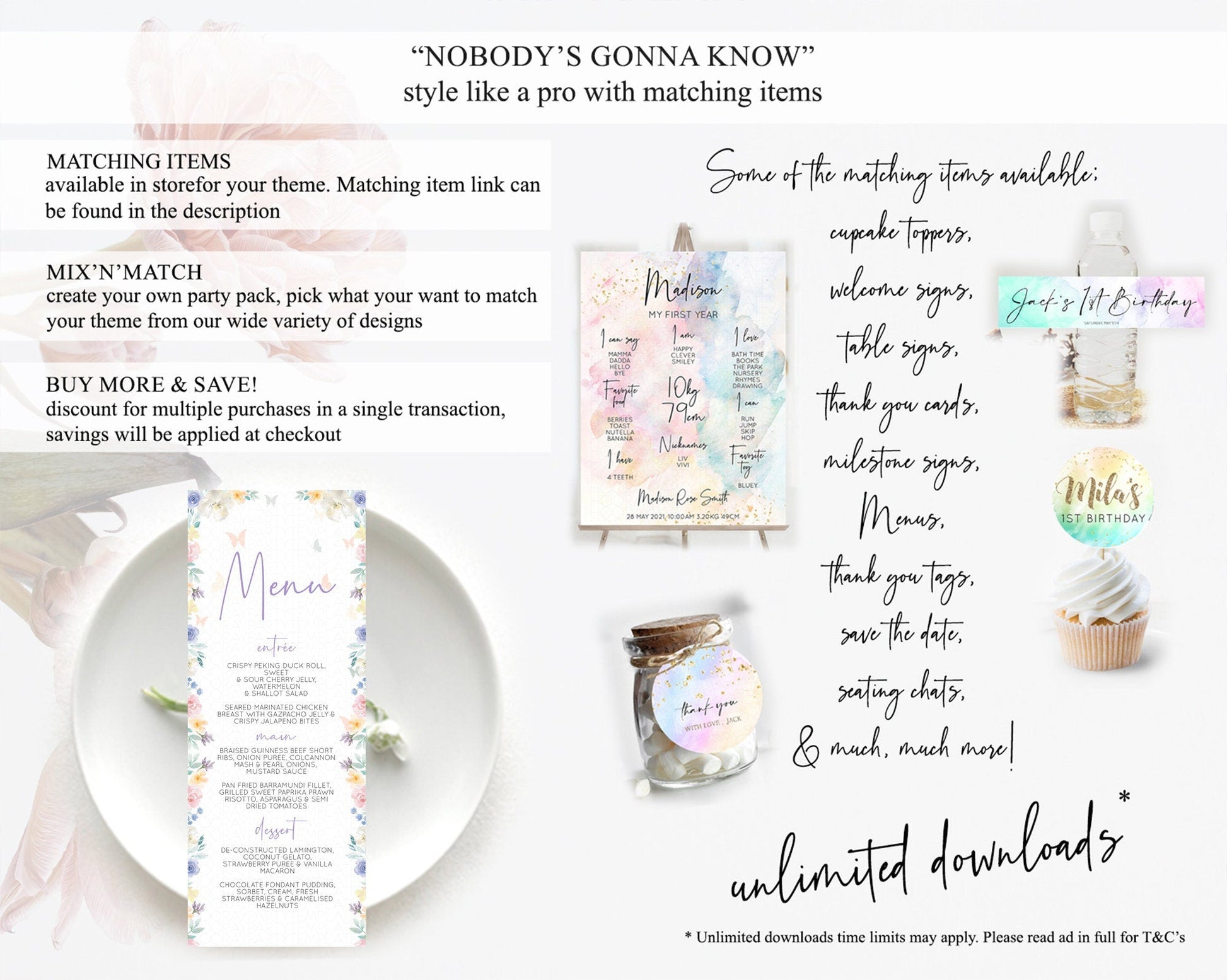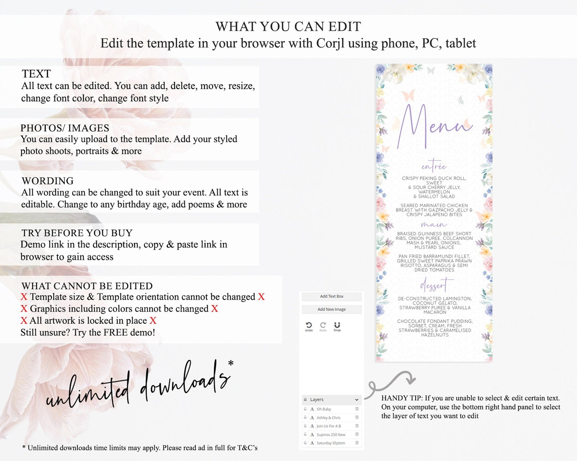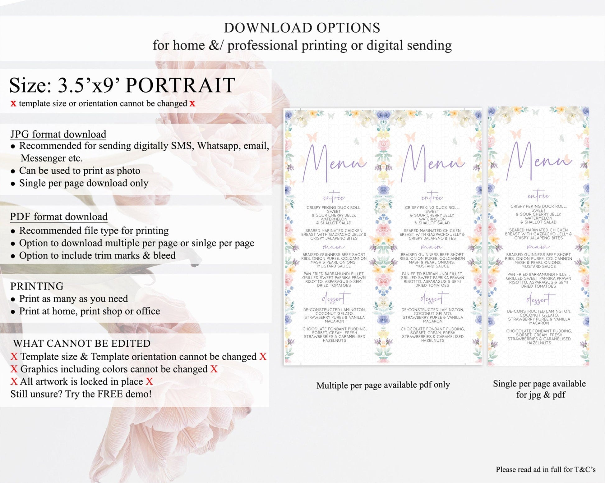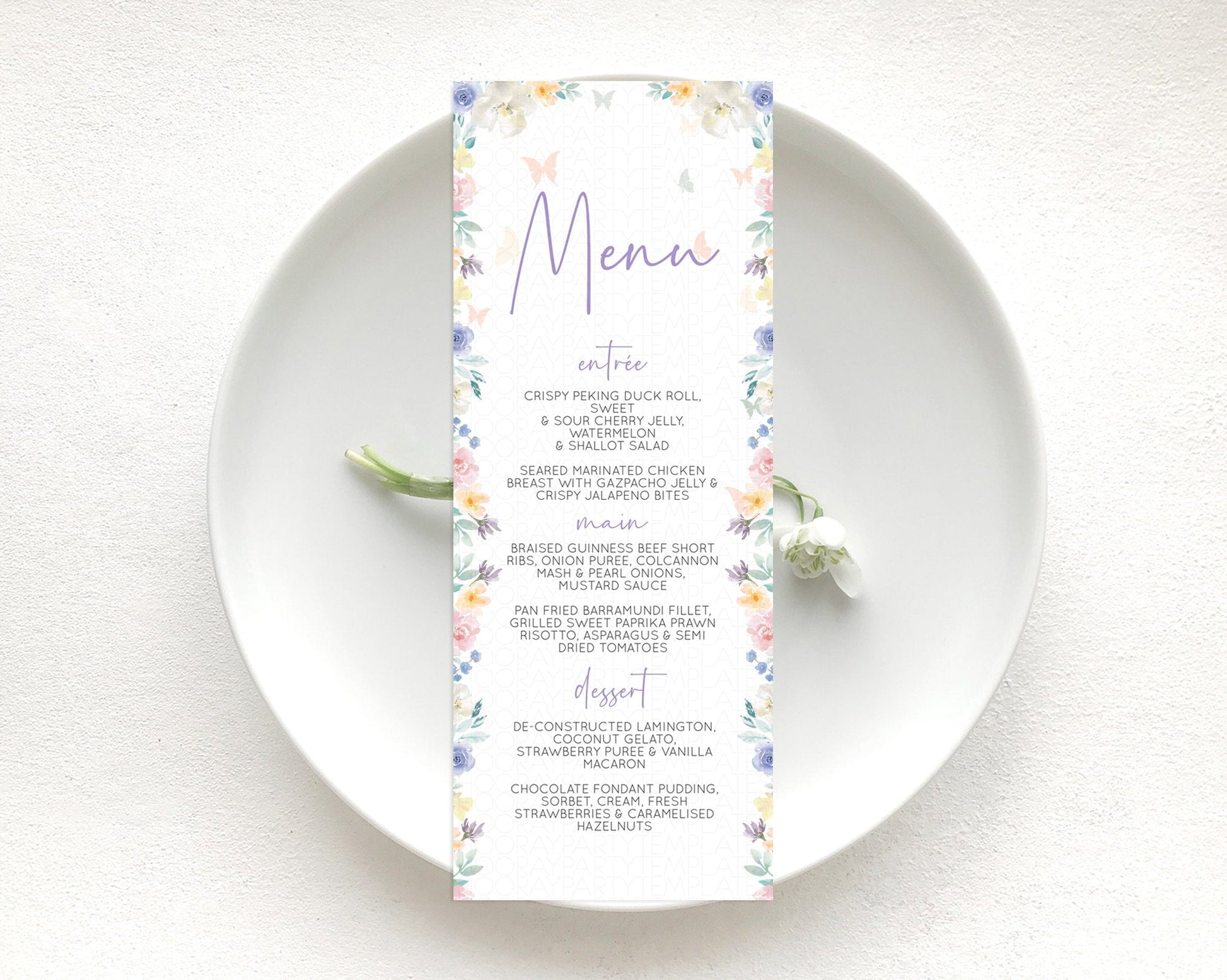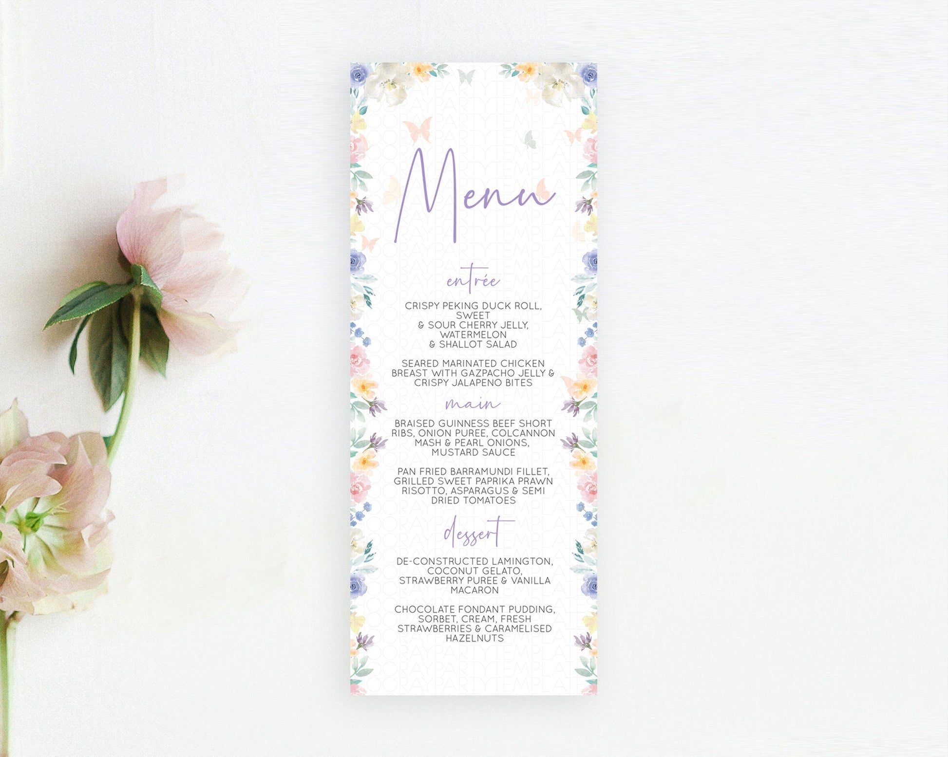 Secret Garden Menu Wildflower Menu Template Pastel Flower Garden Table Decor Boho Floral Dinner Dessert Floral Party Food Menu D10710