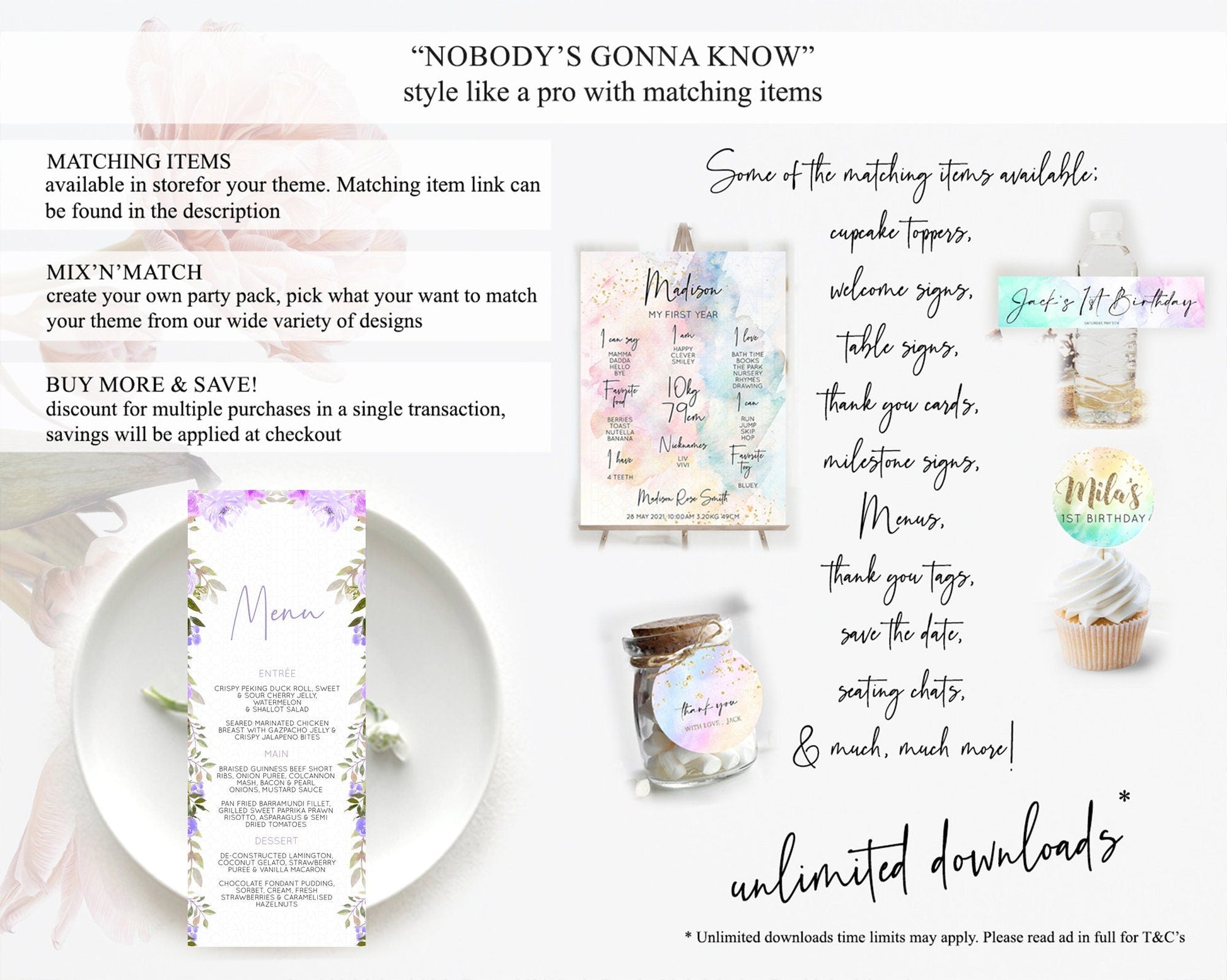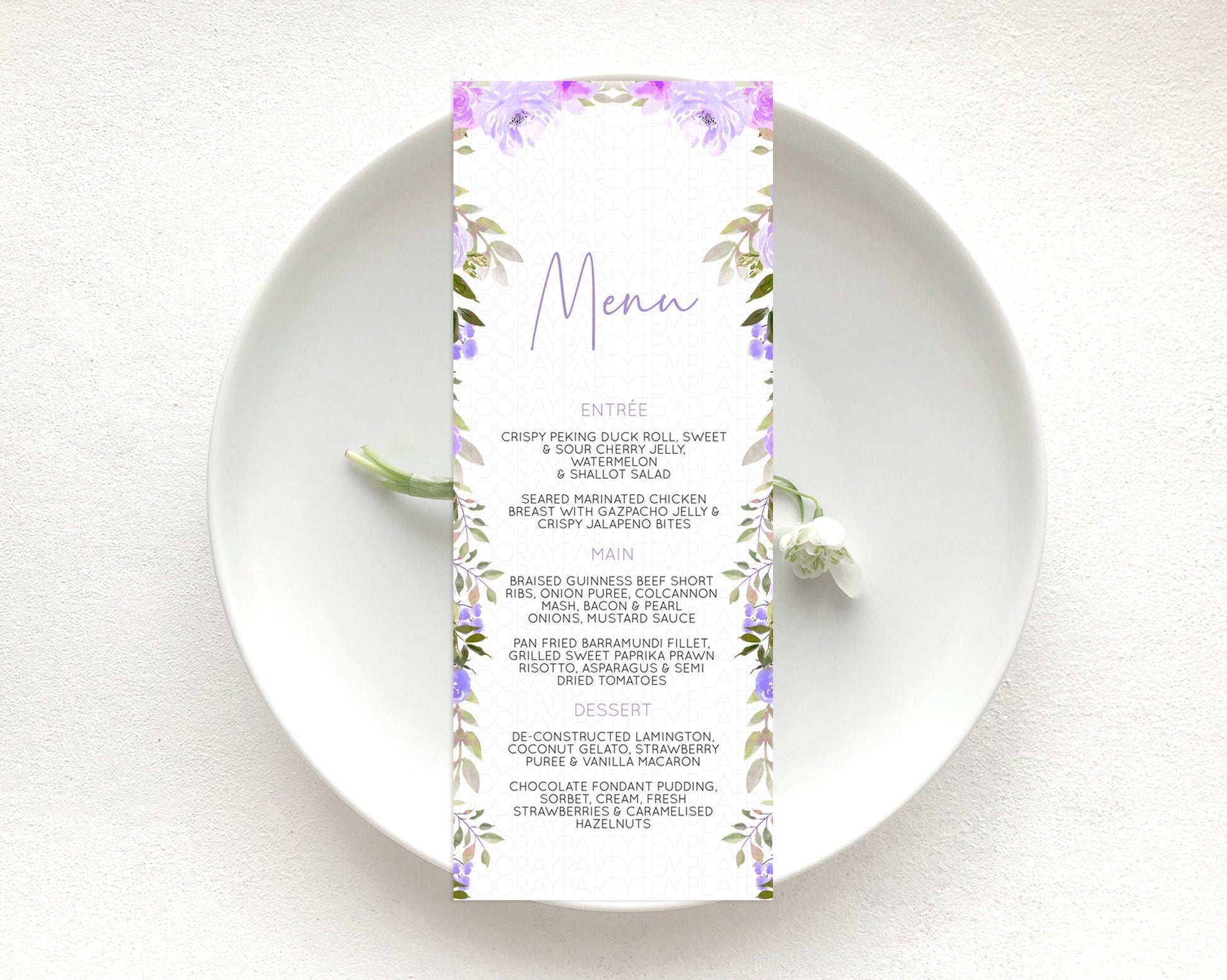 Secret Garden Menu Wildflower Menu Template Pastel Flower Garden Table Decor Boho Floral Dinner Dessert Floral Party Food Menu D10719