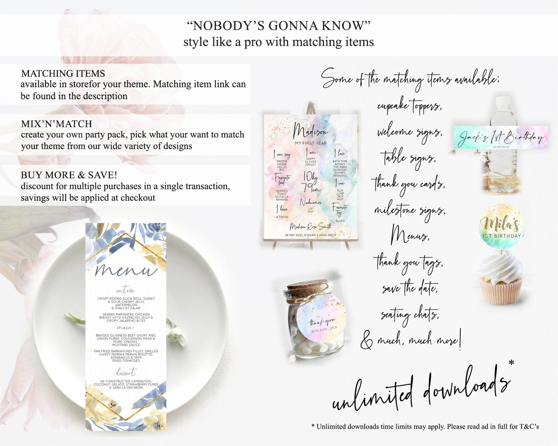 Secret Garden Menu Wildflower Menu Template Pastel Flower Garden Table Decor Boho Floral Dinner Dessert Floral Party Food Menu D10782