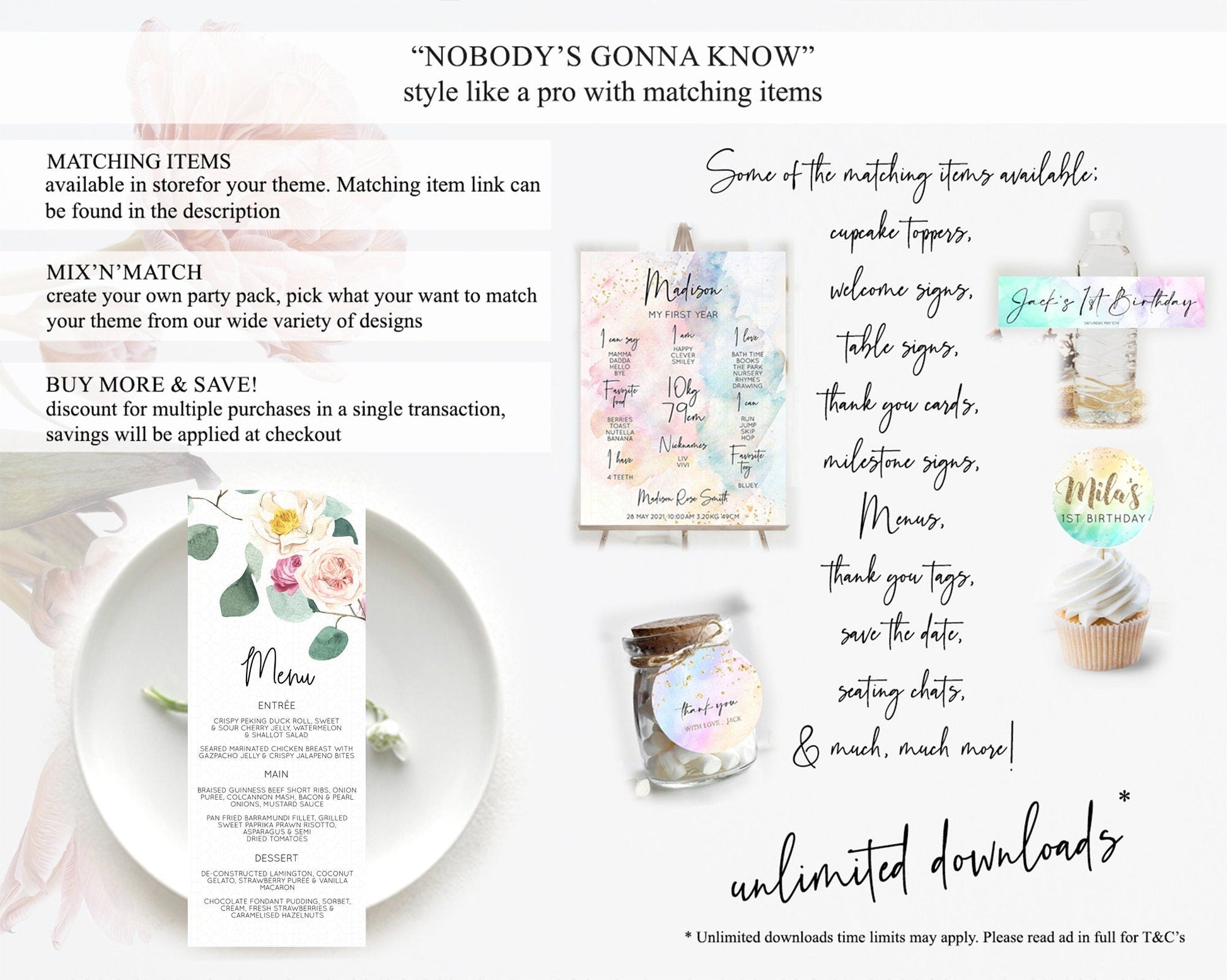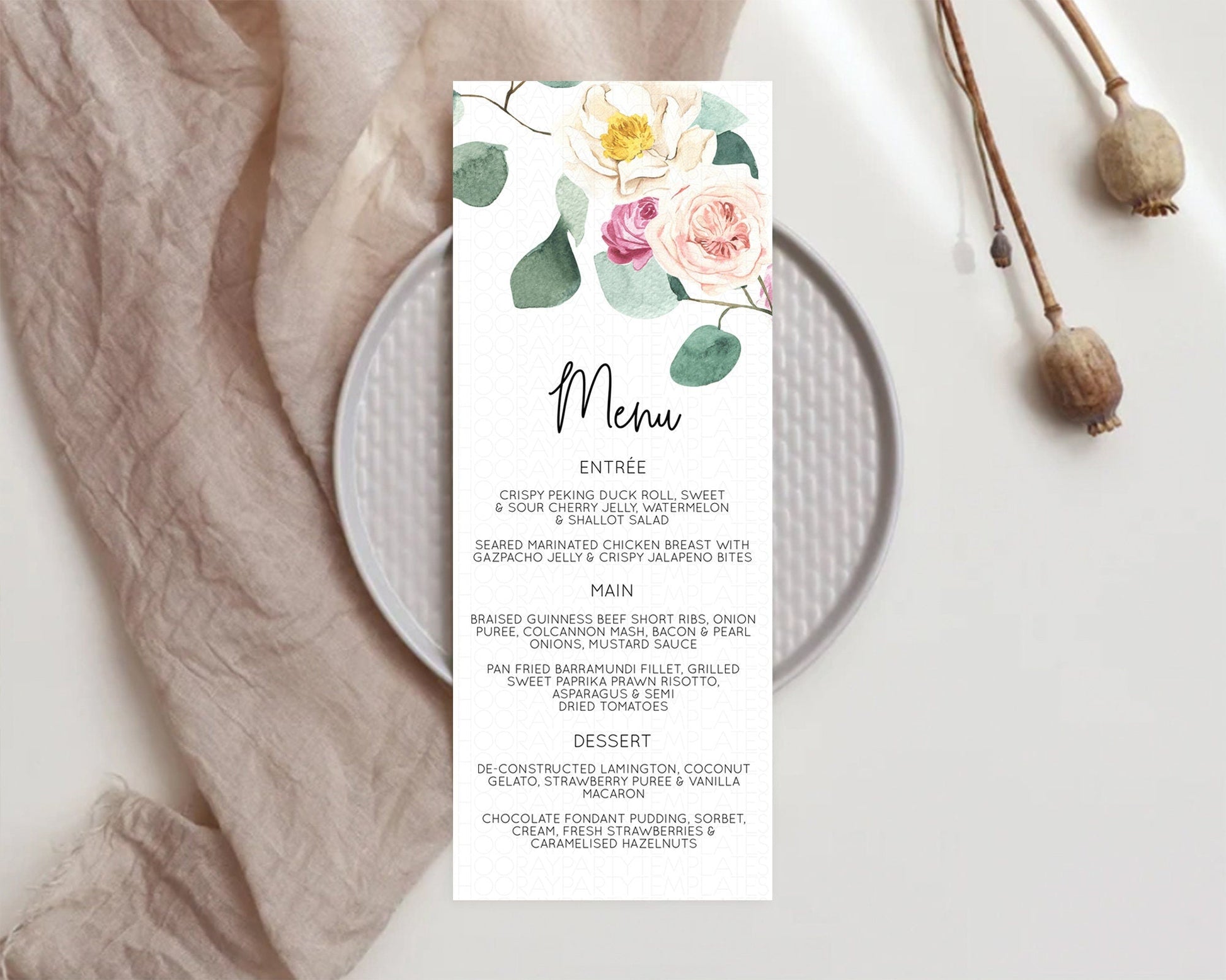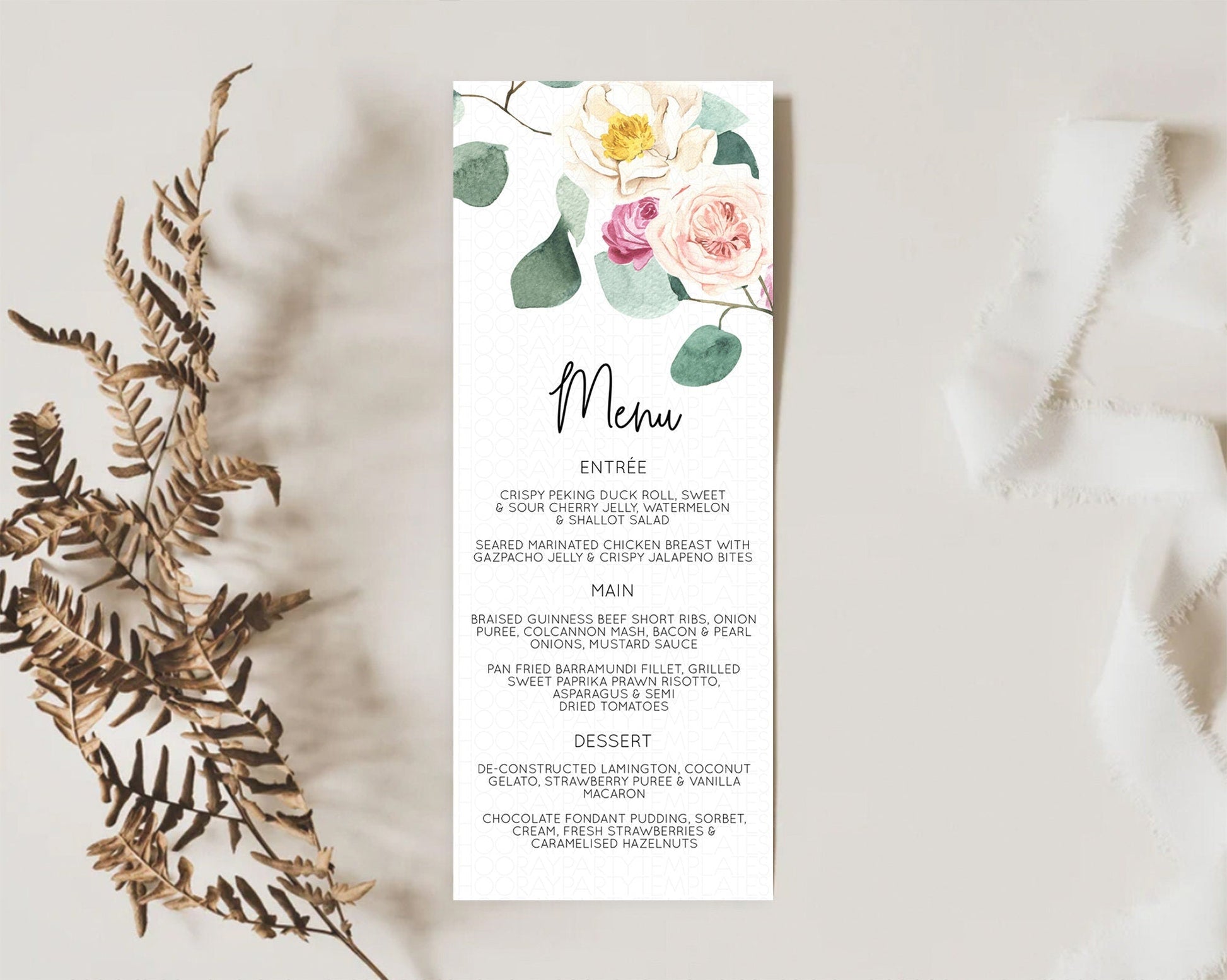 Secret Garden Menu Wildflower Menu Template Pastel Flower Garden Table Decor Boho Floral Dinner Dessert Floral Party Food Menu D11048