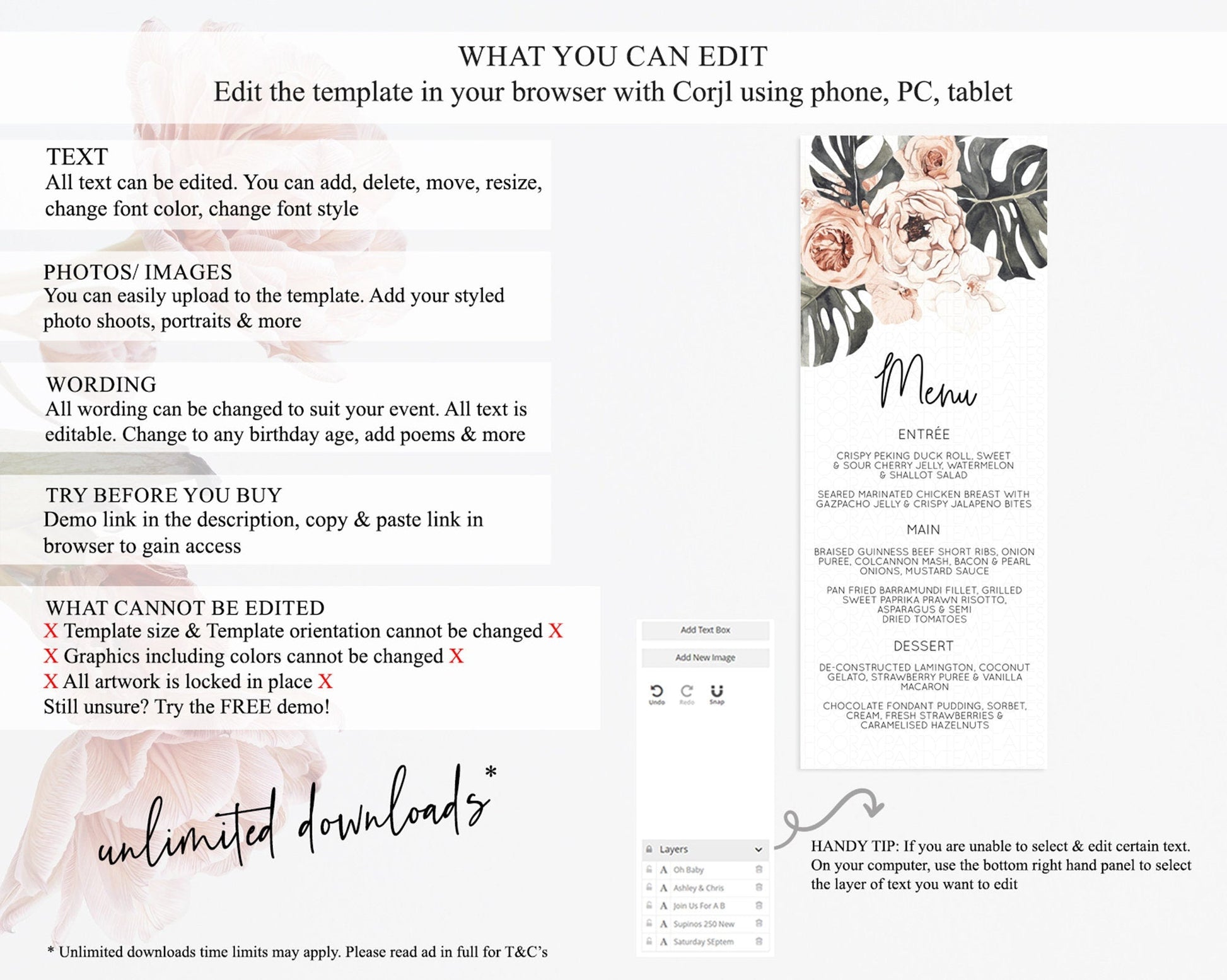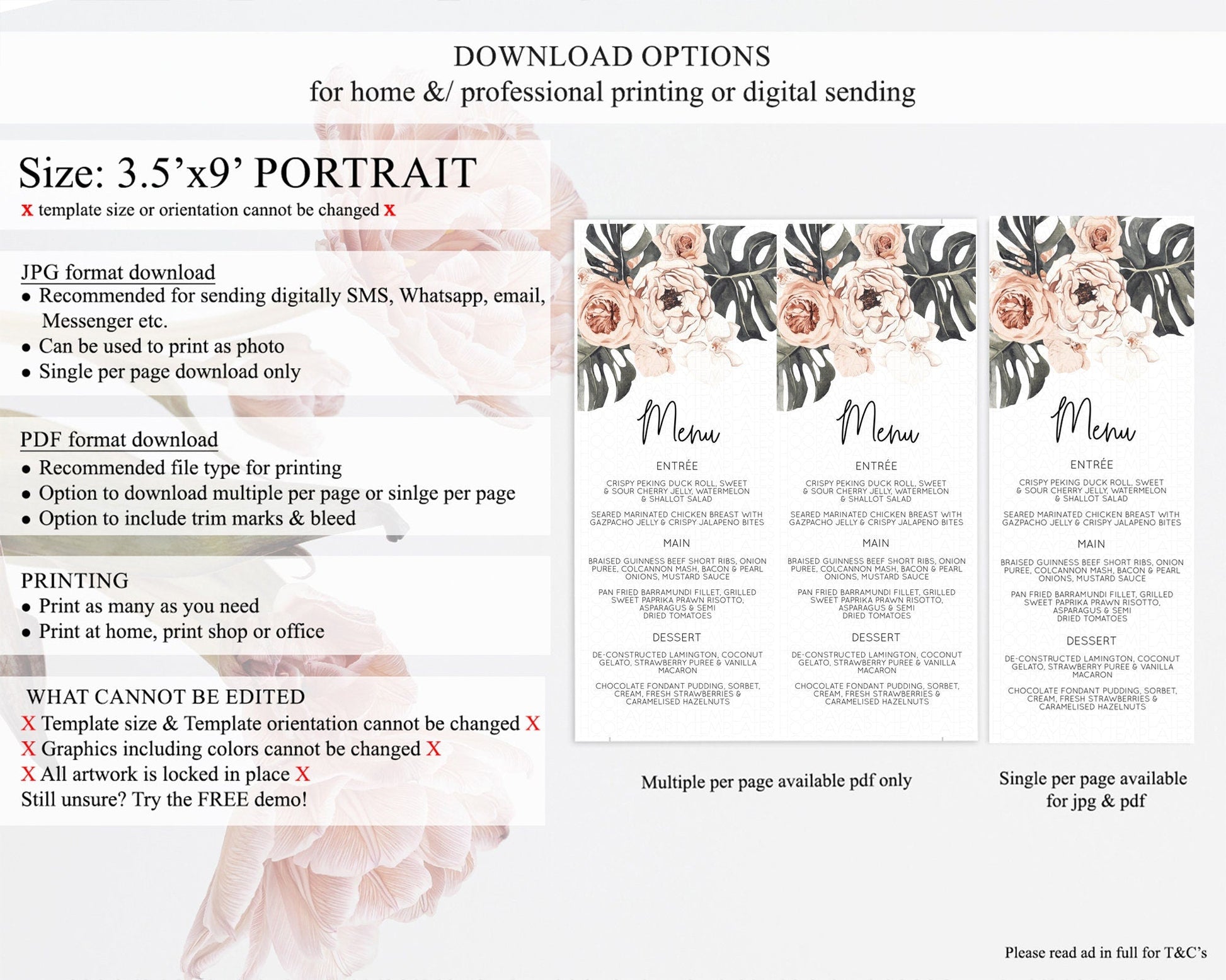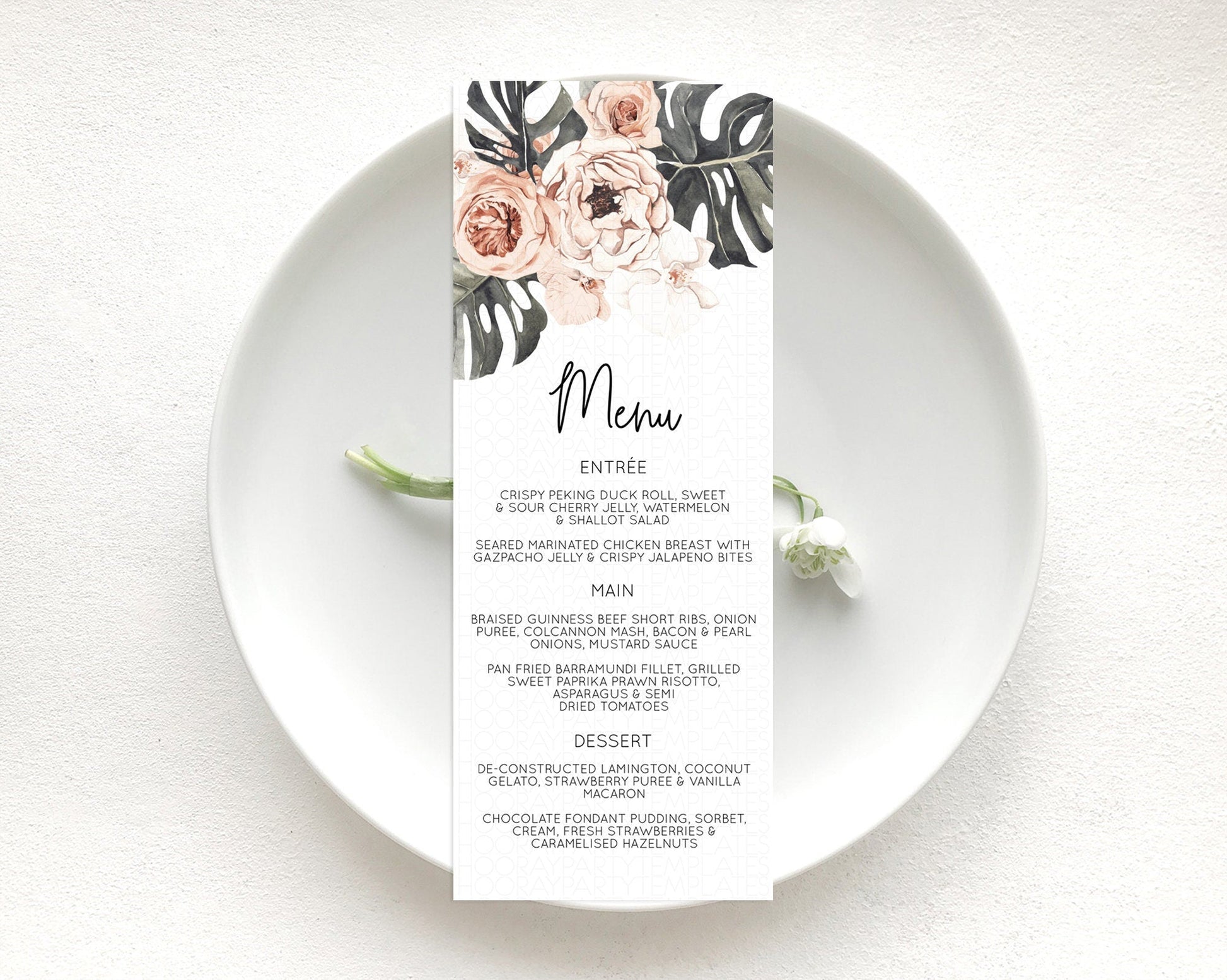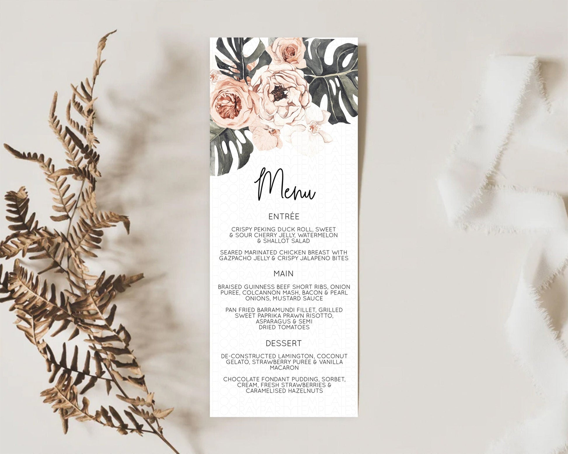 Secret Garden Menu Wildflower Menu Template Pastel Flower Garden Table Decor Boho Floral Dinner Dessert Floral Party Food Menu D11050
