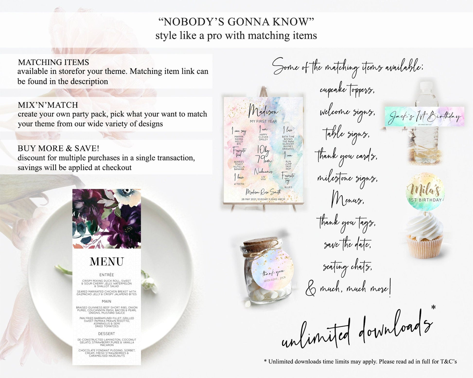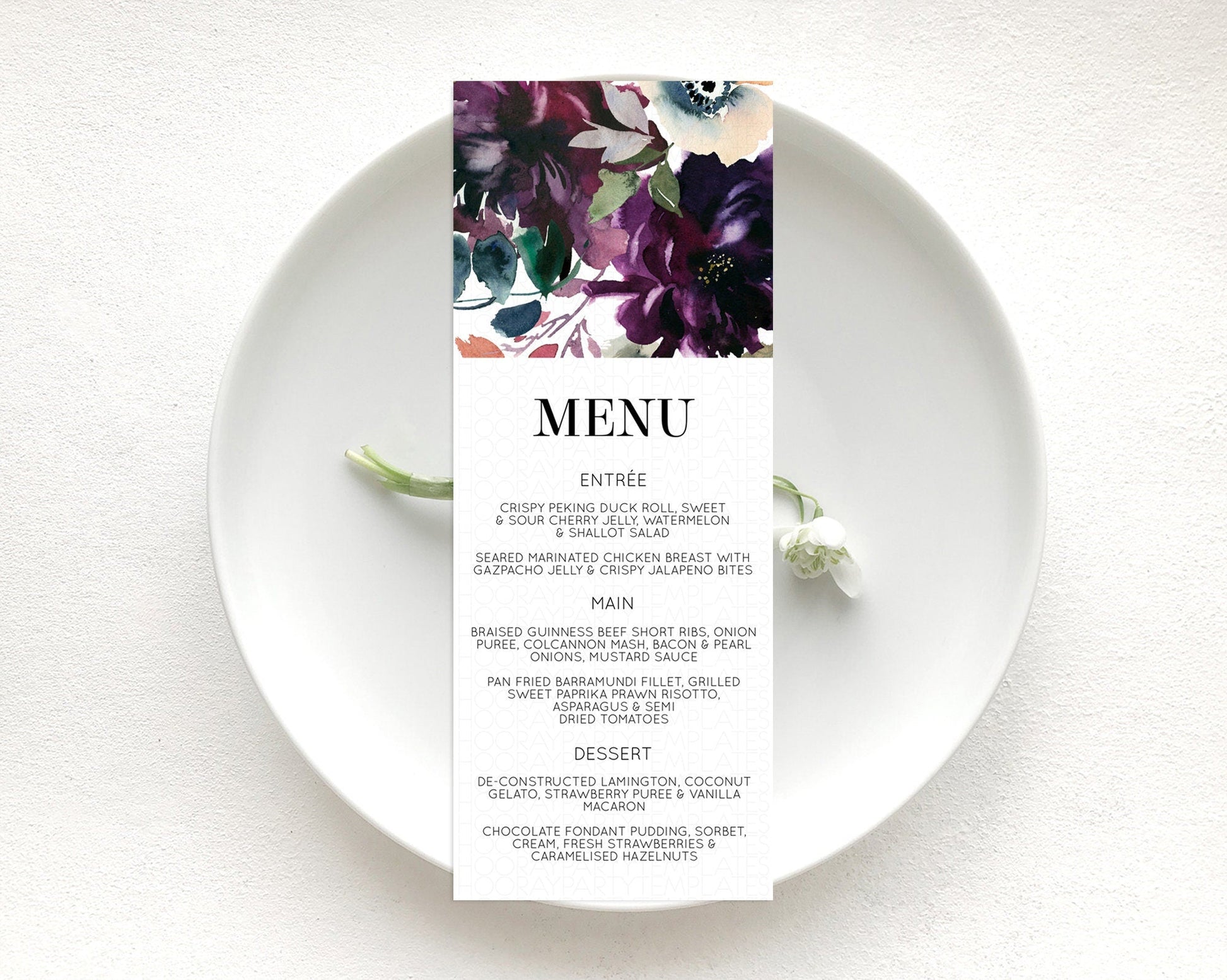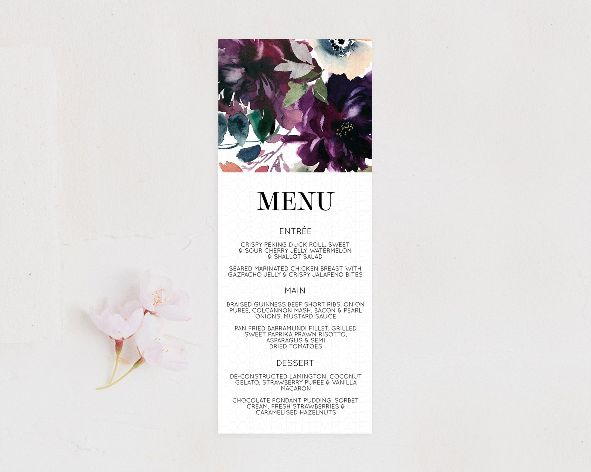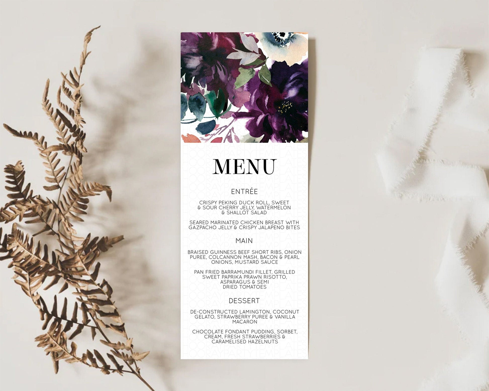 Secret Garden Menu Wildflower Menu Template Pastel Flower Garden Table Decor Boho Floral Dinner Dessert Floral Party Food Menu D11062
