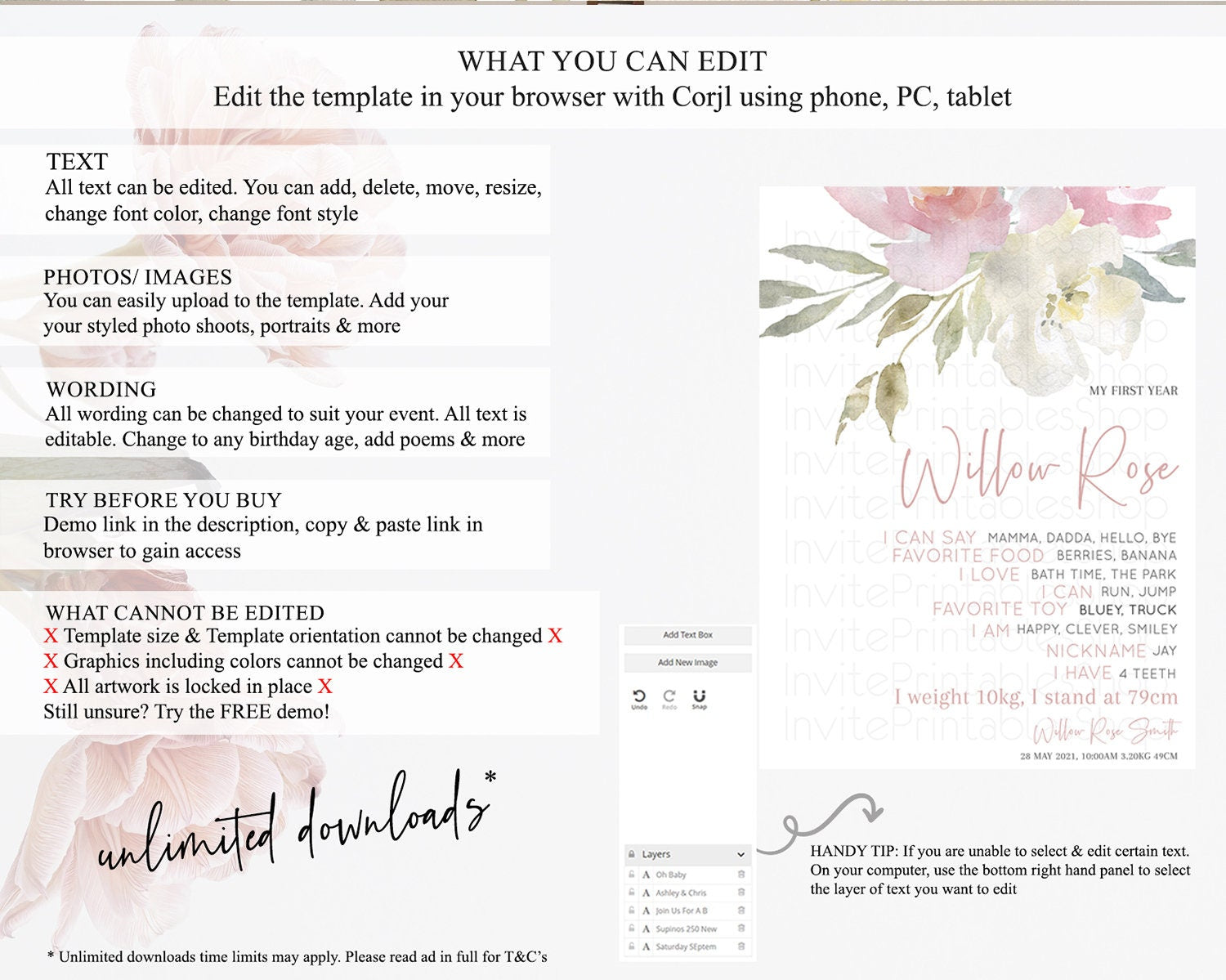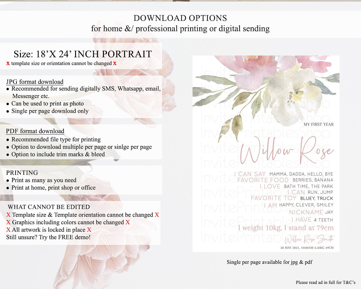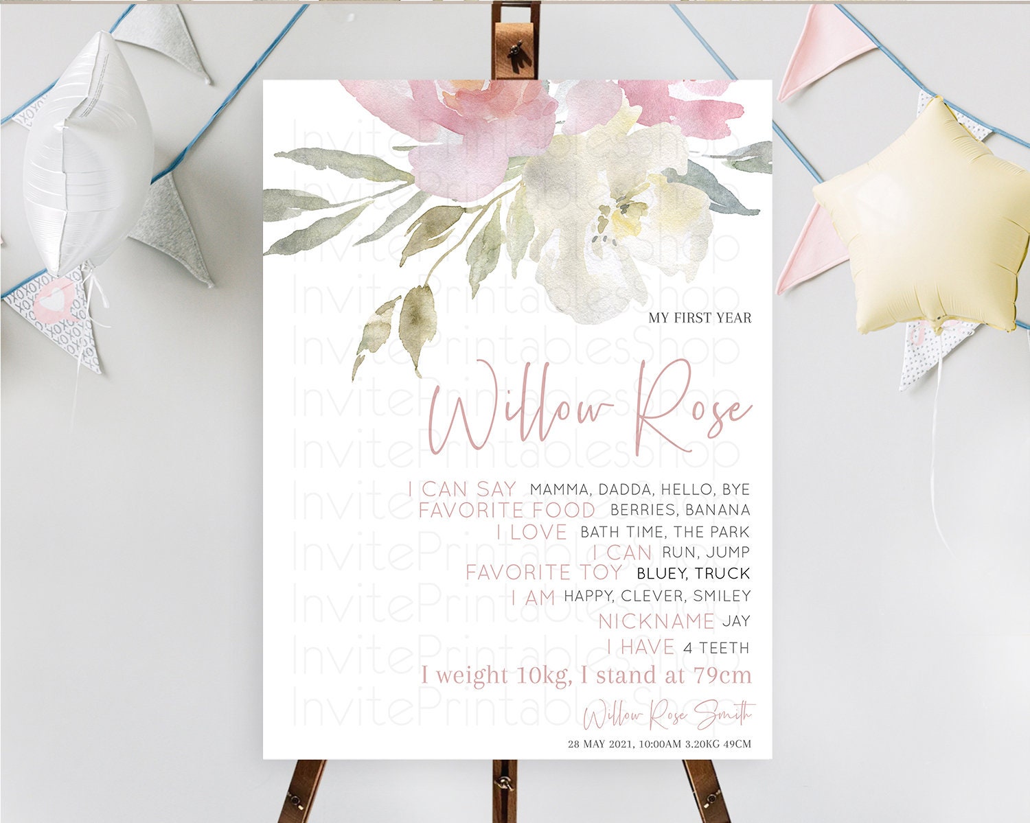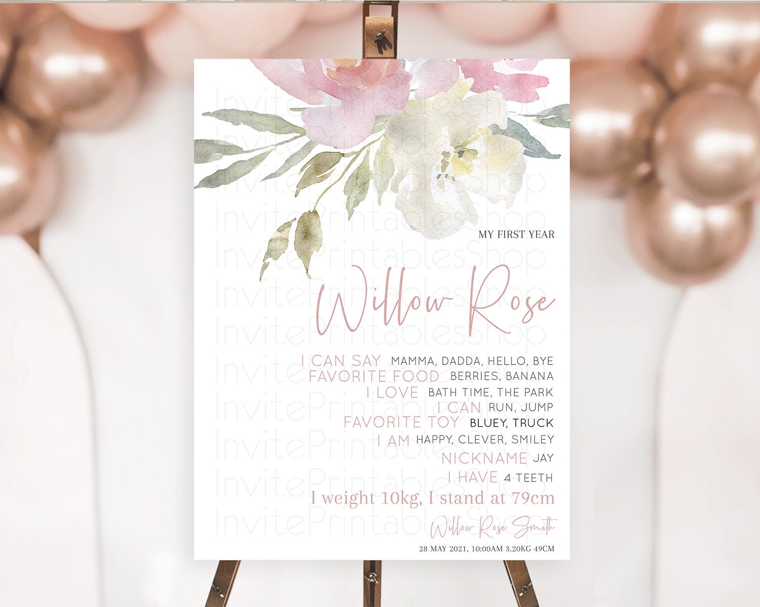 Secret Garden Milestone Board Wildflower First Birthday Milestone Poster Pastel Flowers Milestone Boho Wildflower 1st Birthday Sign D10183