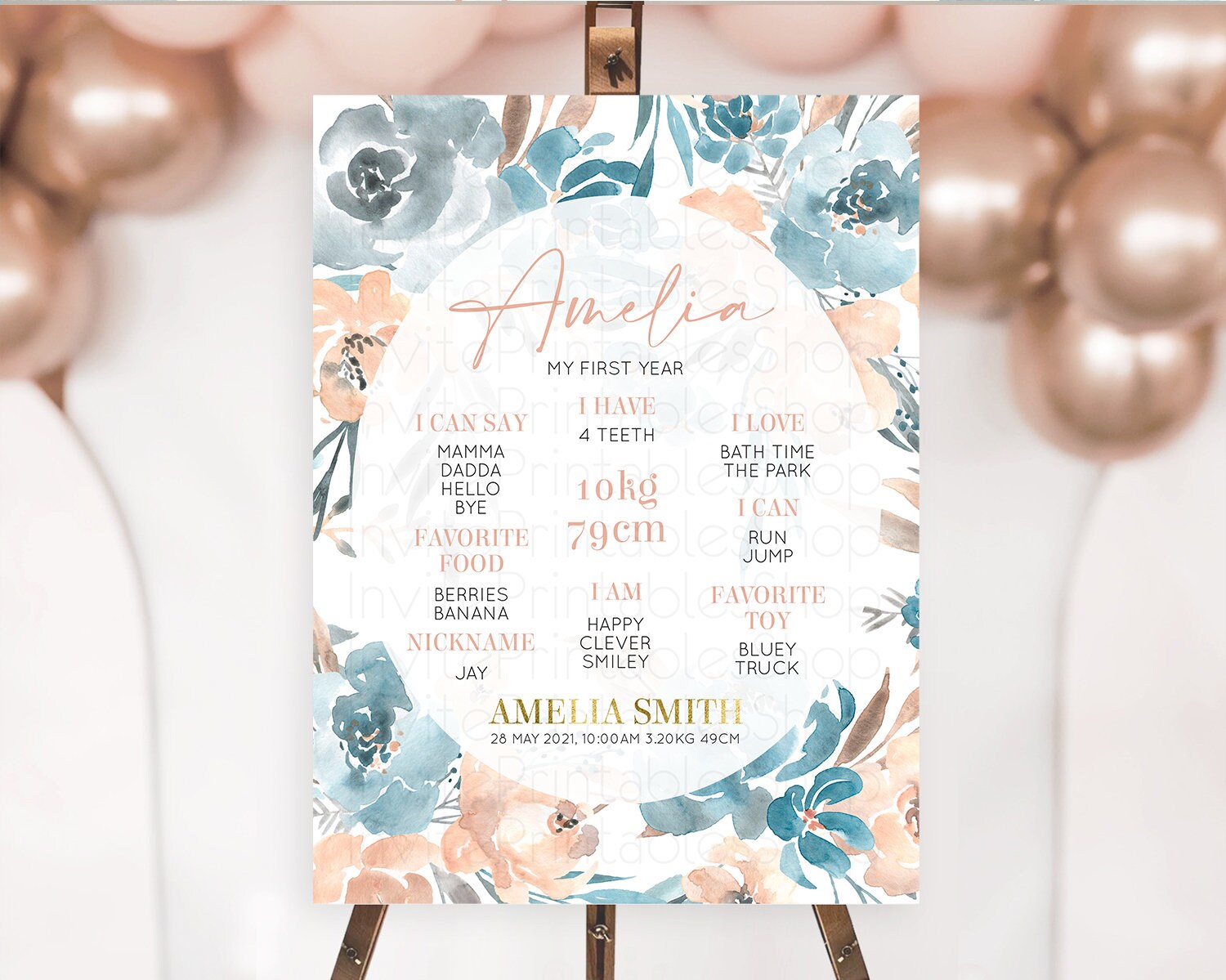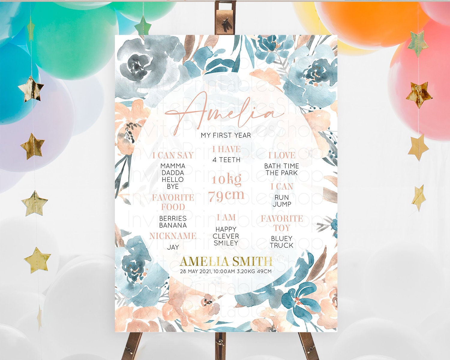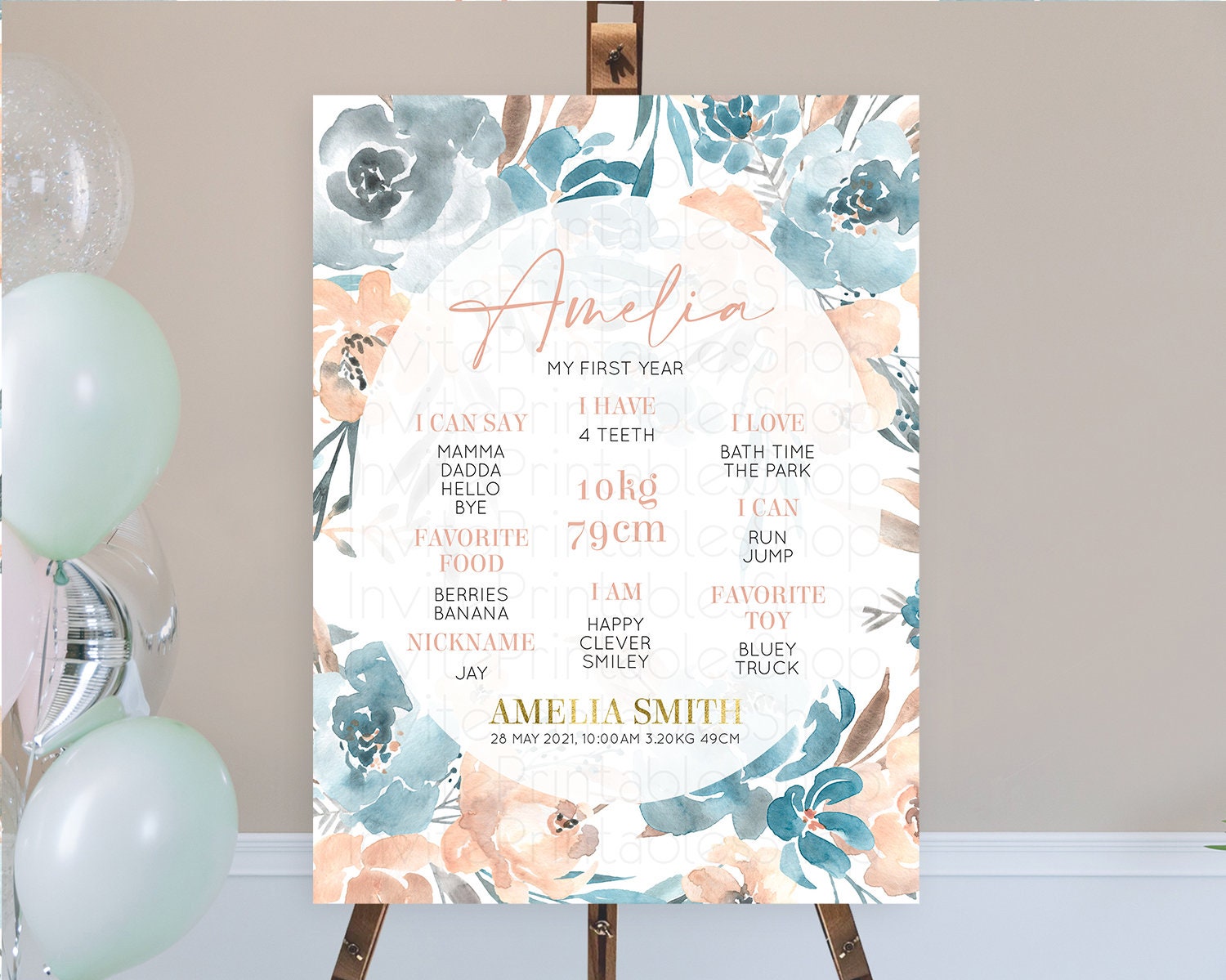 Secret Garden Milestone Board Wildflower First Birthday Milestone Poster Pastel Flowers Milestone Boho Wildflower 1st Birthday Sign D10190