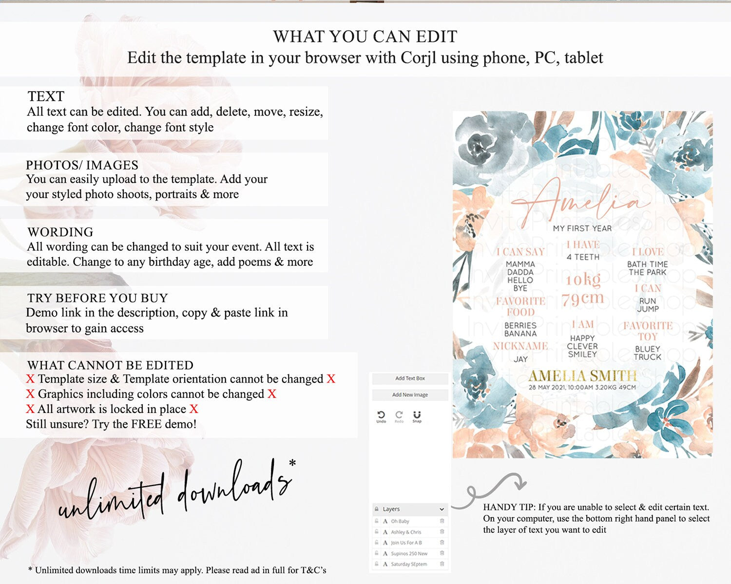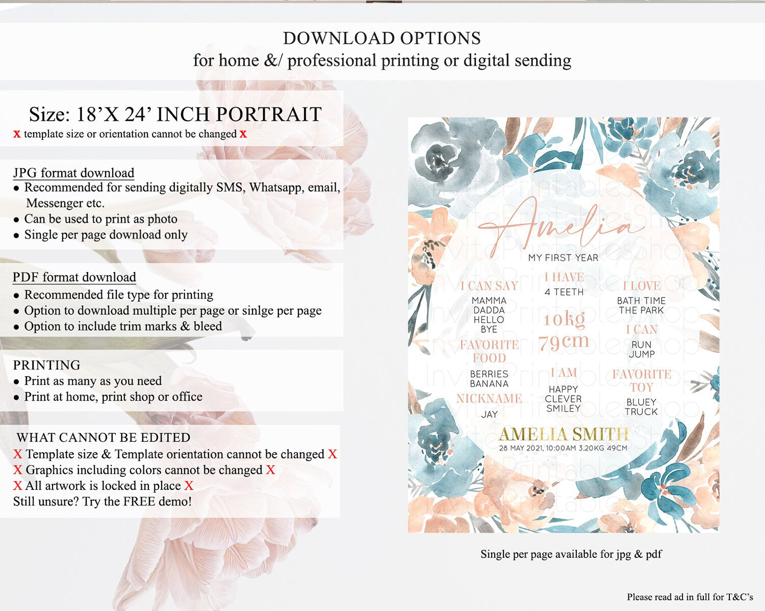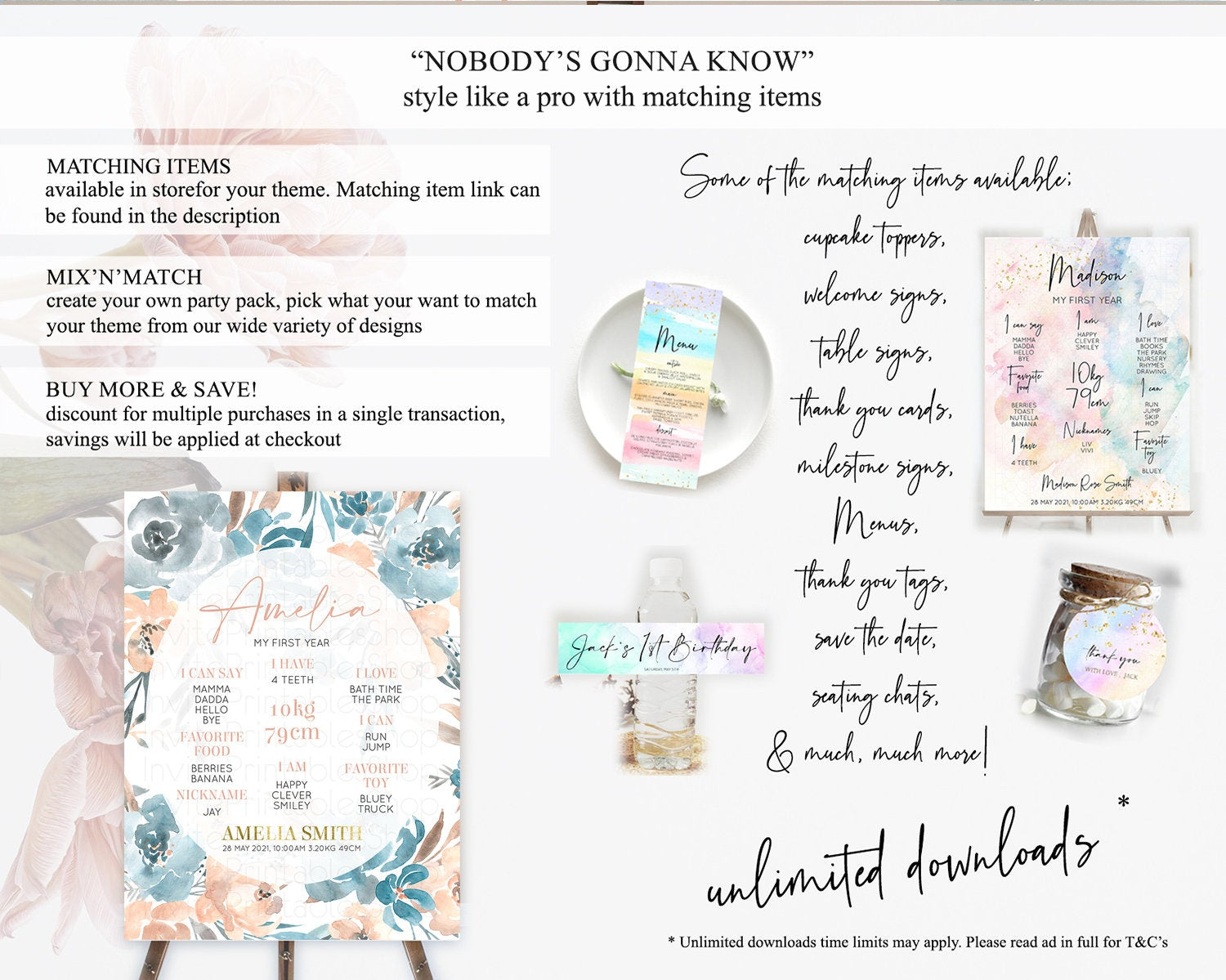 Secret Garden Milestone Board Wildflower First Birthday Milestone Poster Pastel Flowers Milestone Boho Wildflower 1st Birthday Sign D10190