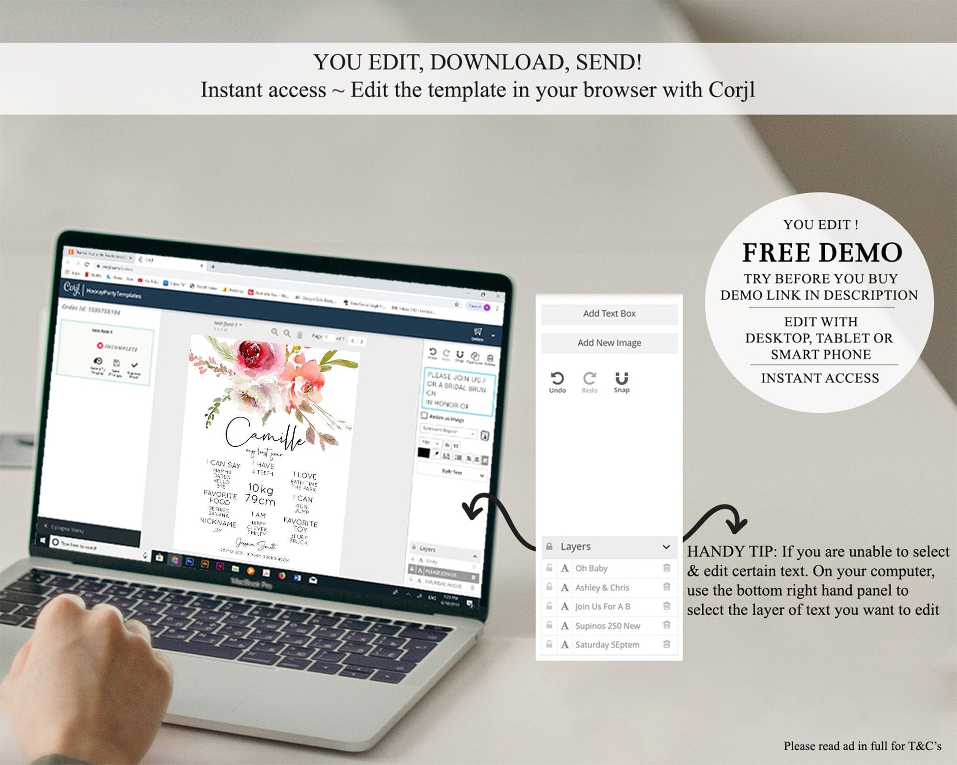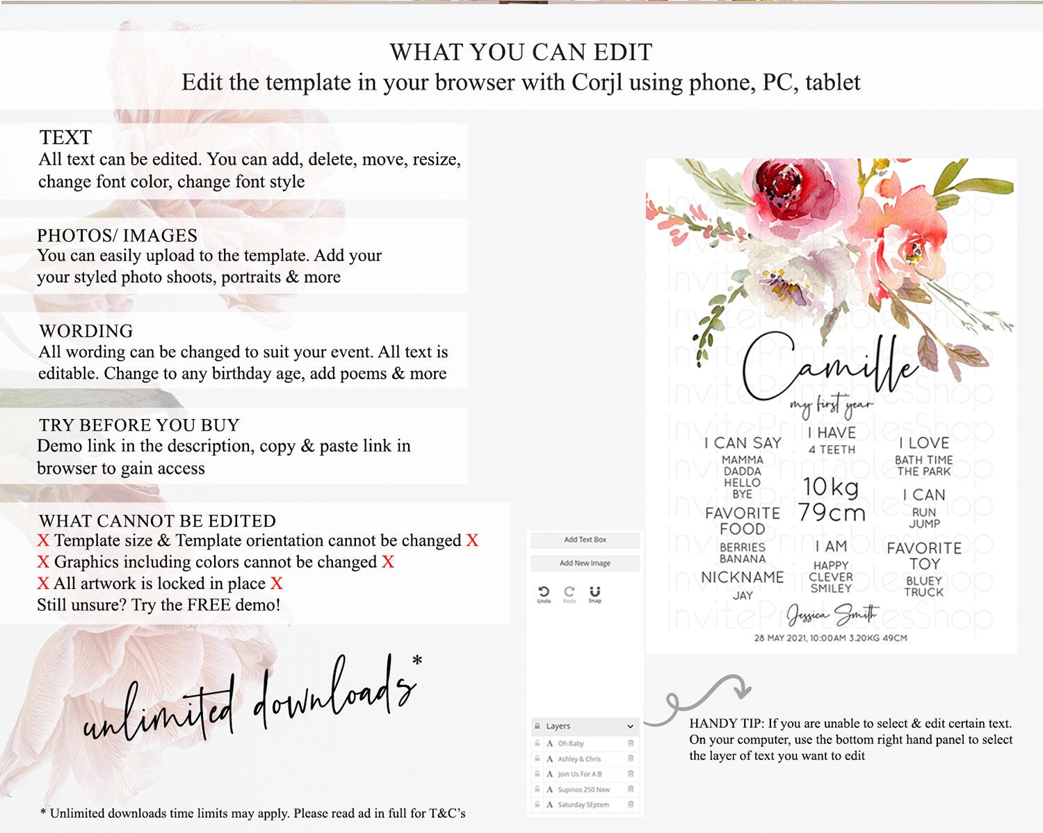 • After purchase, Corjl emails your editing link. Allow up to 15 minutes for delivery.