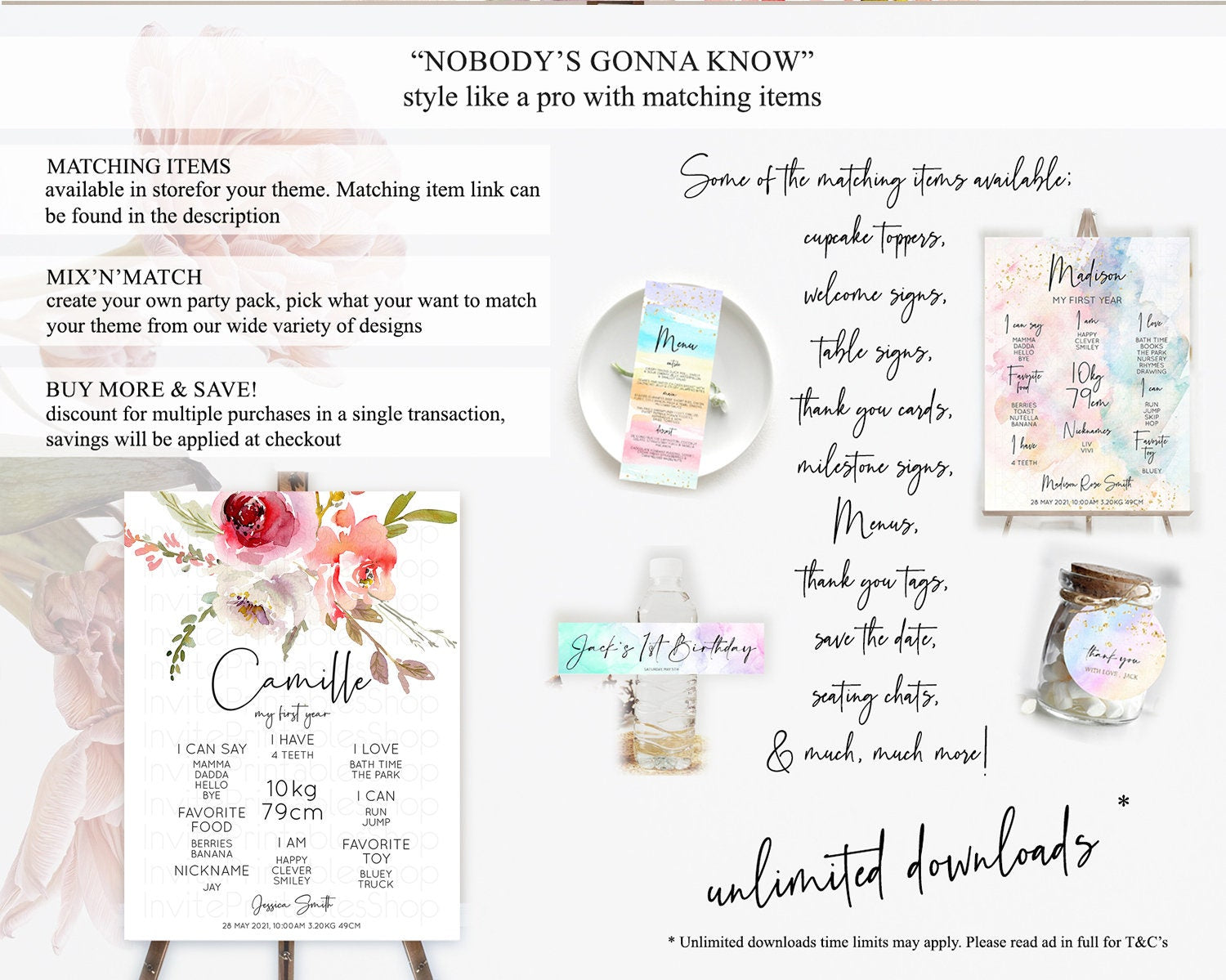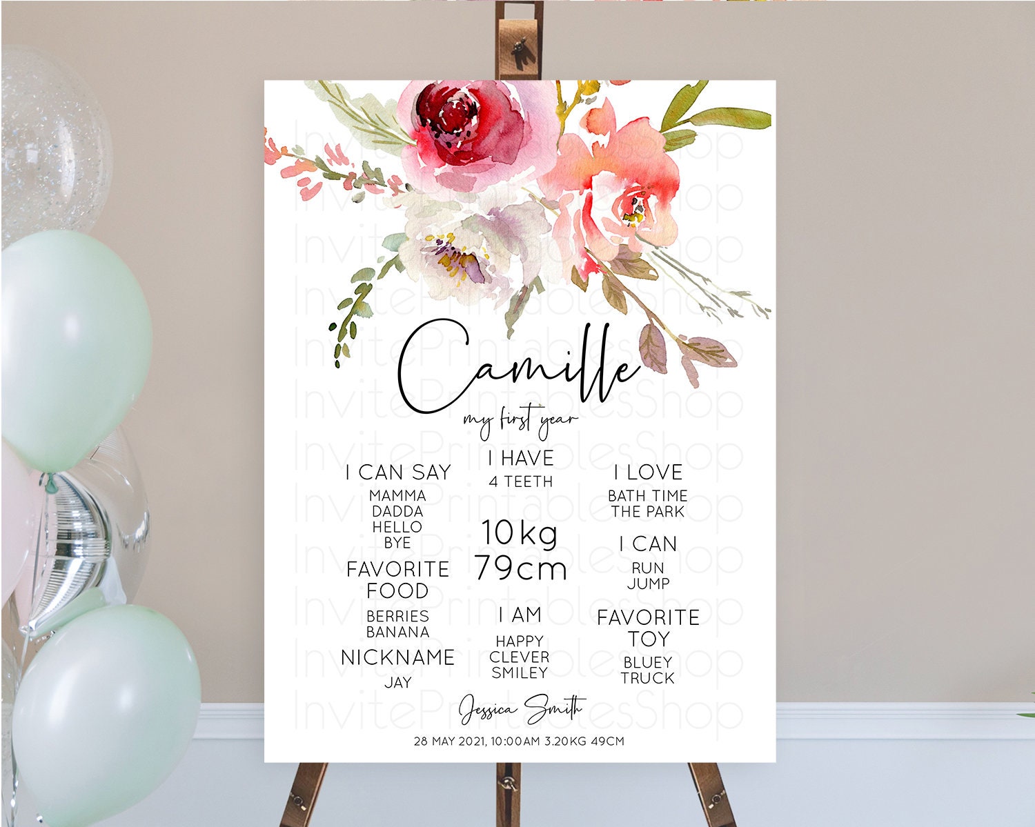 Secret Garden Milestone Board Wildflower First Birthday Milestone Poster Pastel Flowers Milestone Boho Wildflower 1st Birthday Sign D10243