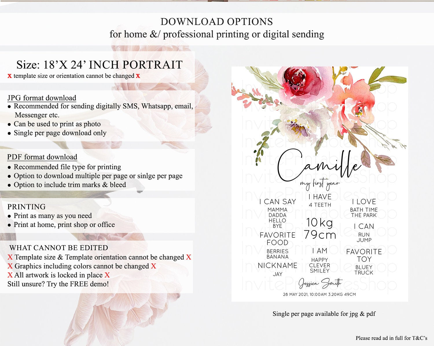 • Template size & orientation cannot be changed. Please use the demo link to confirm this product suits your needs.