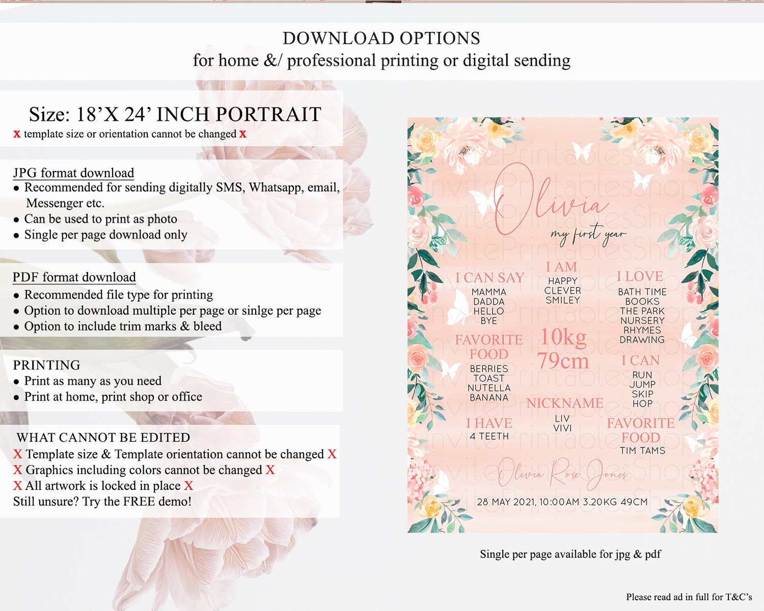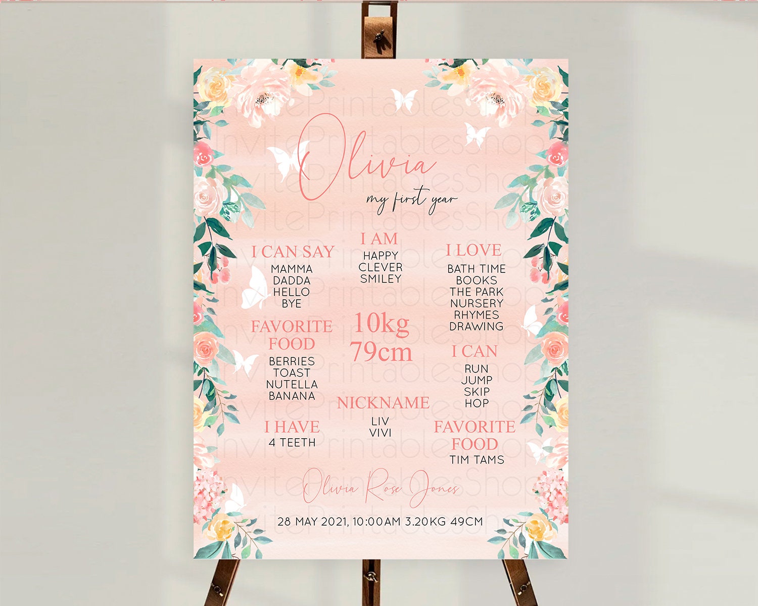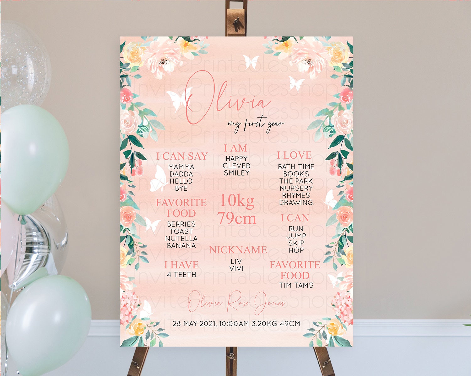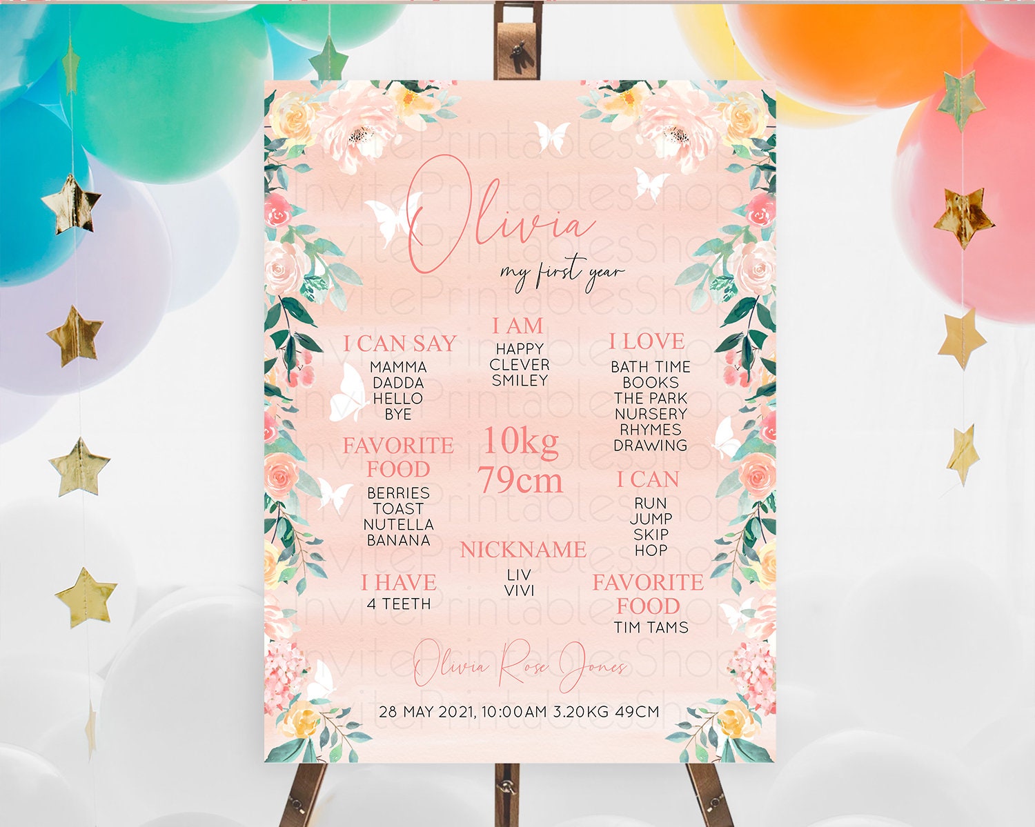 Secret Garden Milestone Board Wildflower First Birthday Milestone Poster Pastel Flowers Milestone Boho Wildflower 1st Birthday Sign D10245