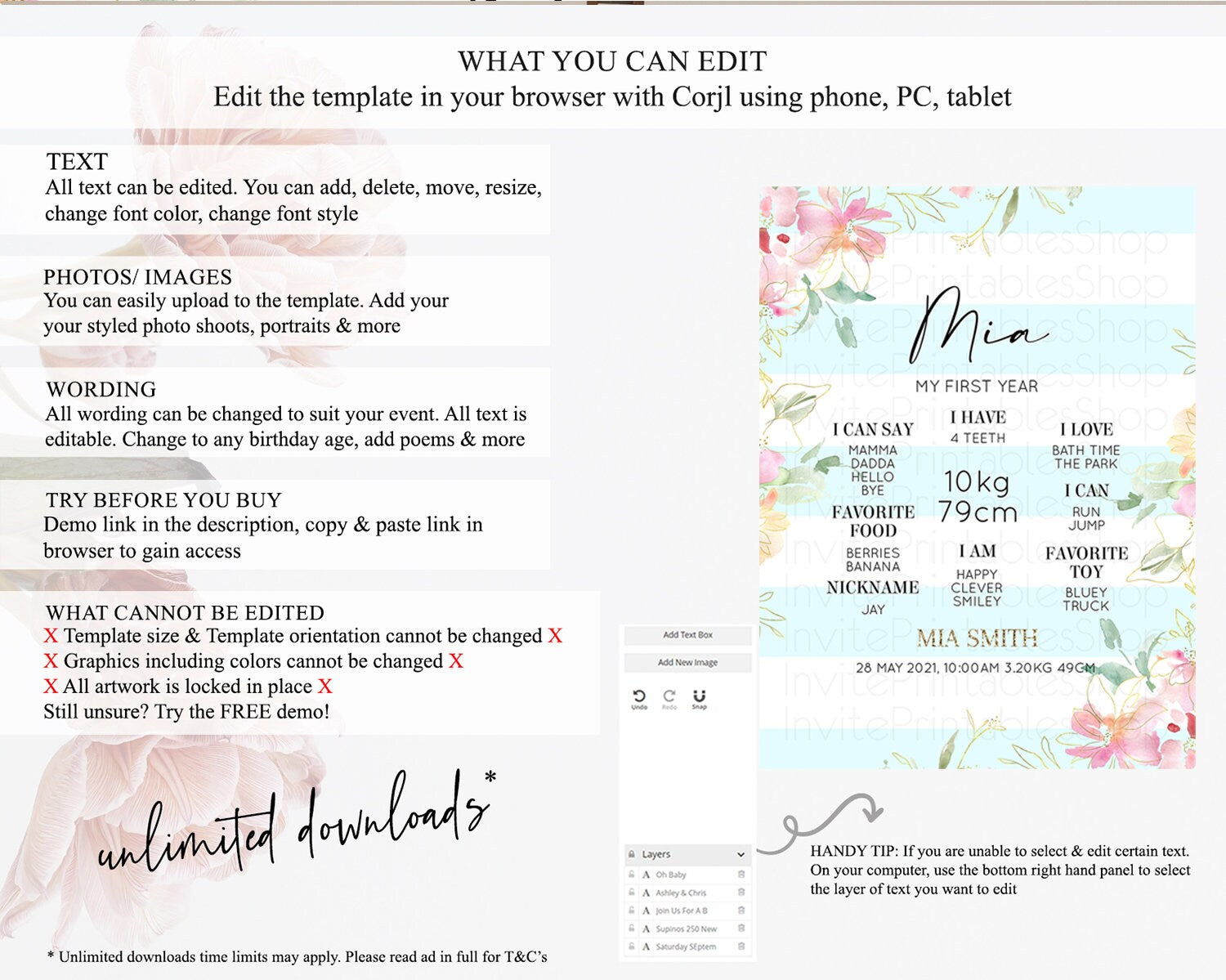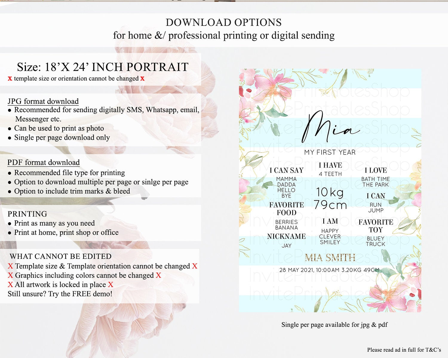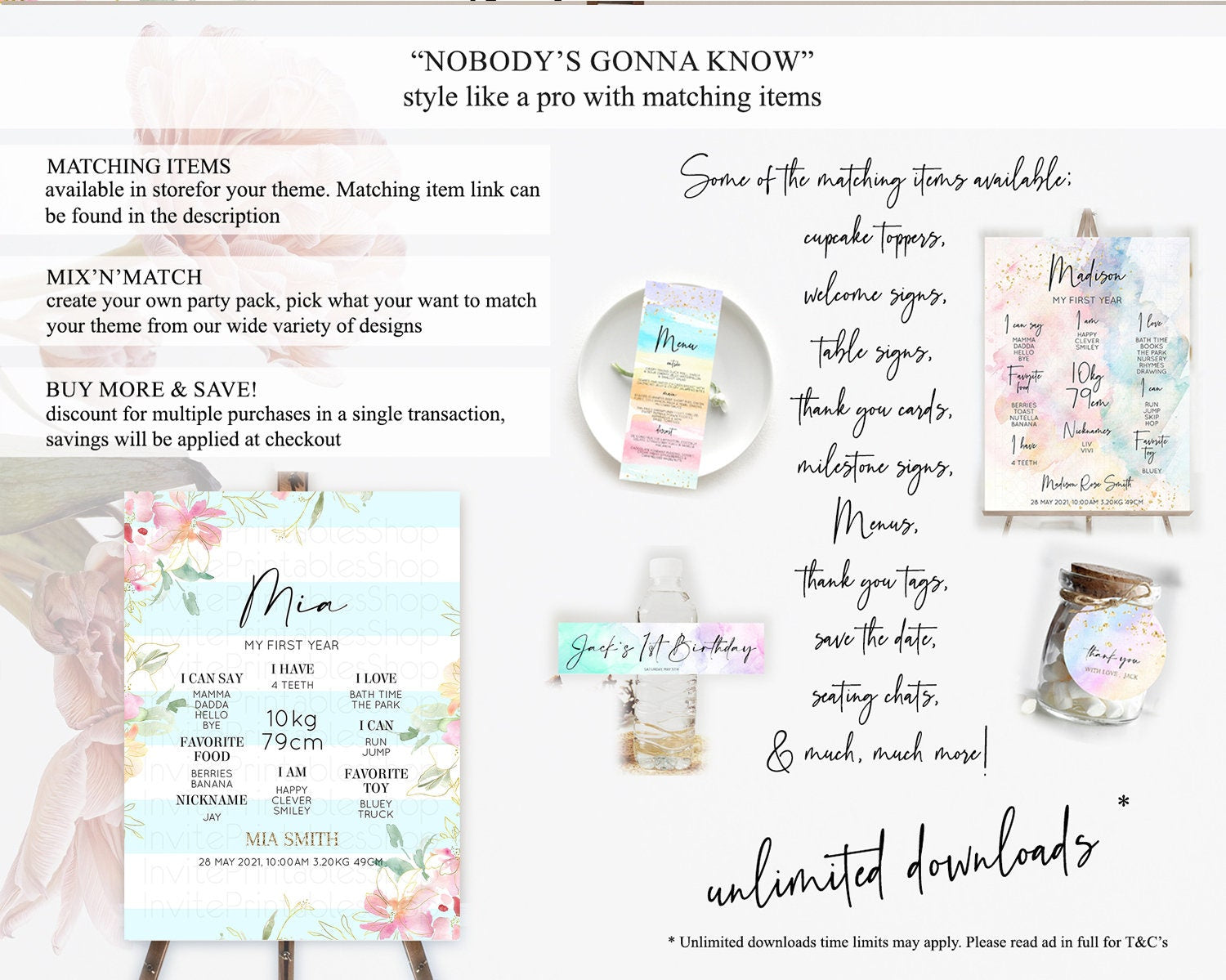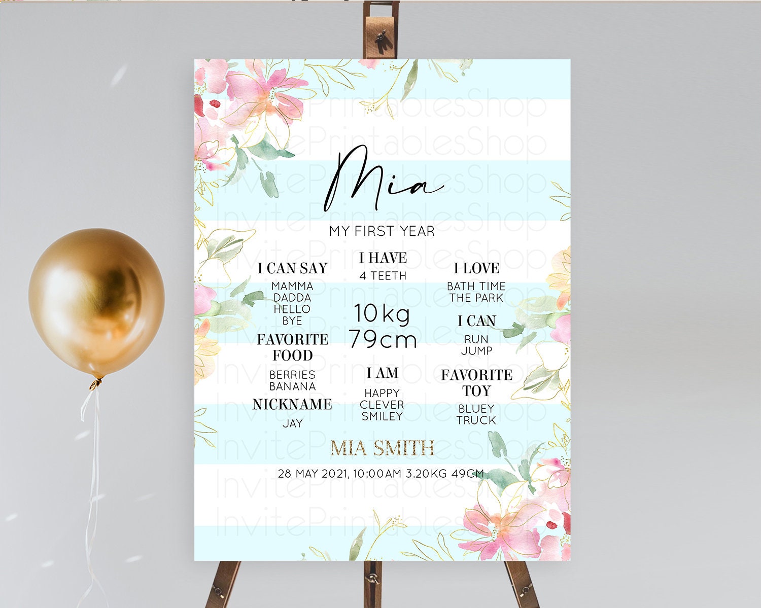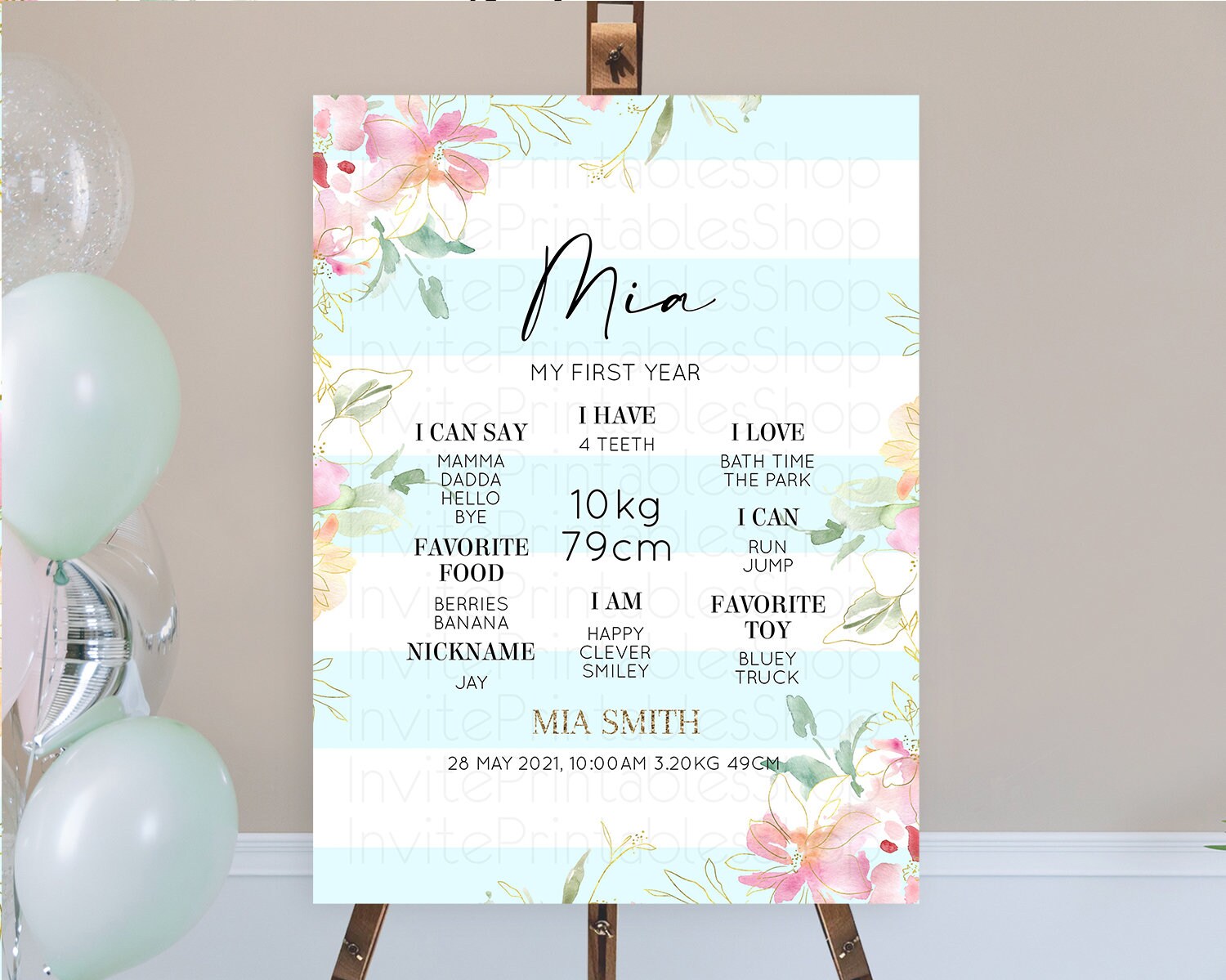 Secret Garden Milestone Board Wildflower First Birthday Milestone Poster Pastel Flowers Milestone Boho Wildflower 1st Birthday Sign D10304