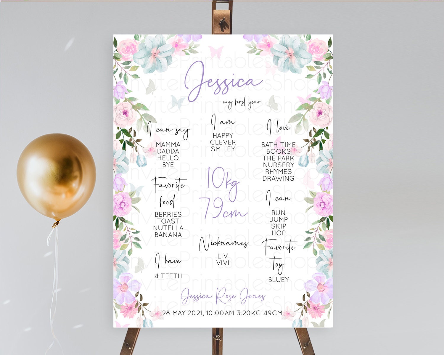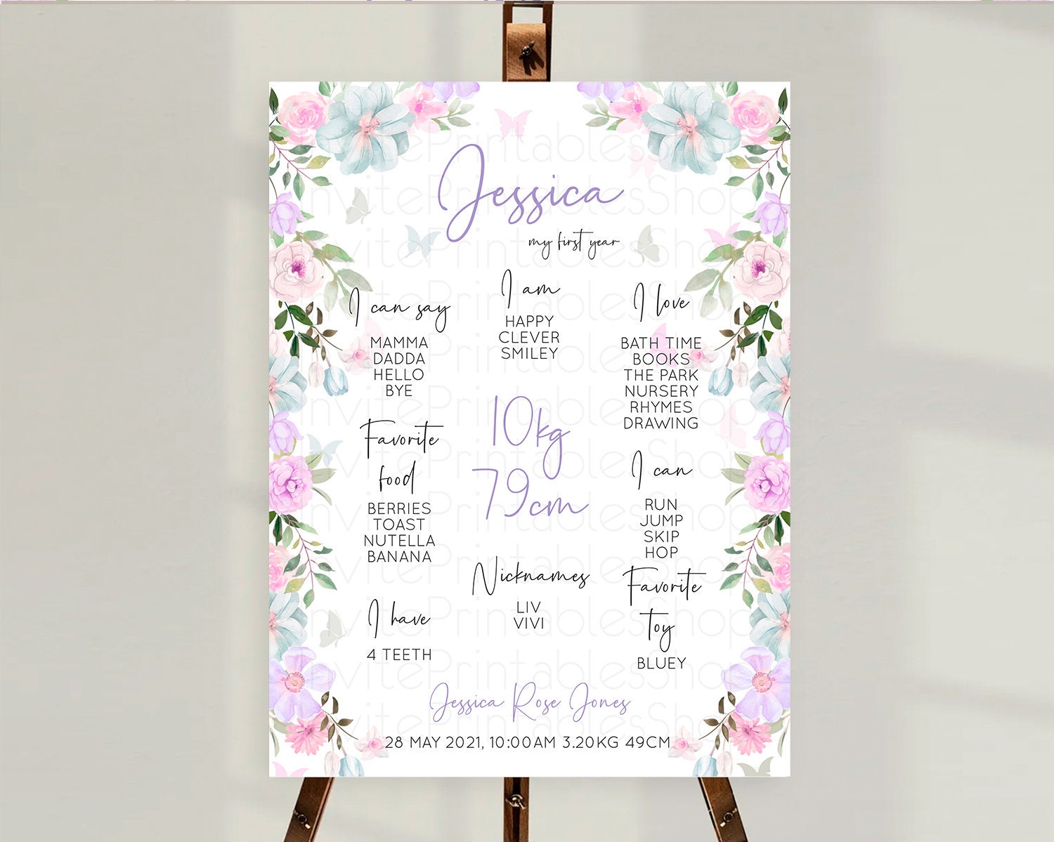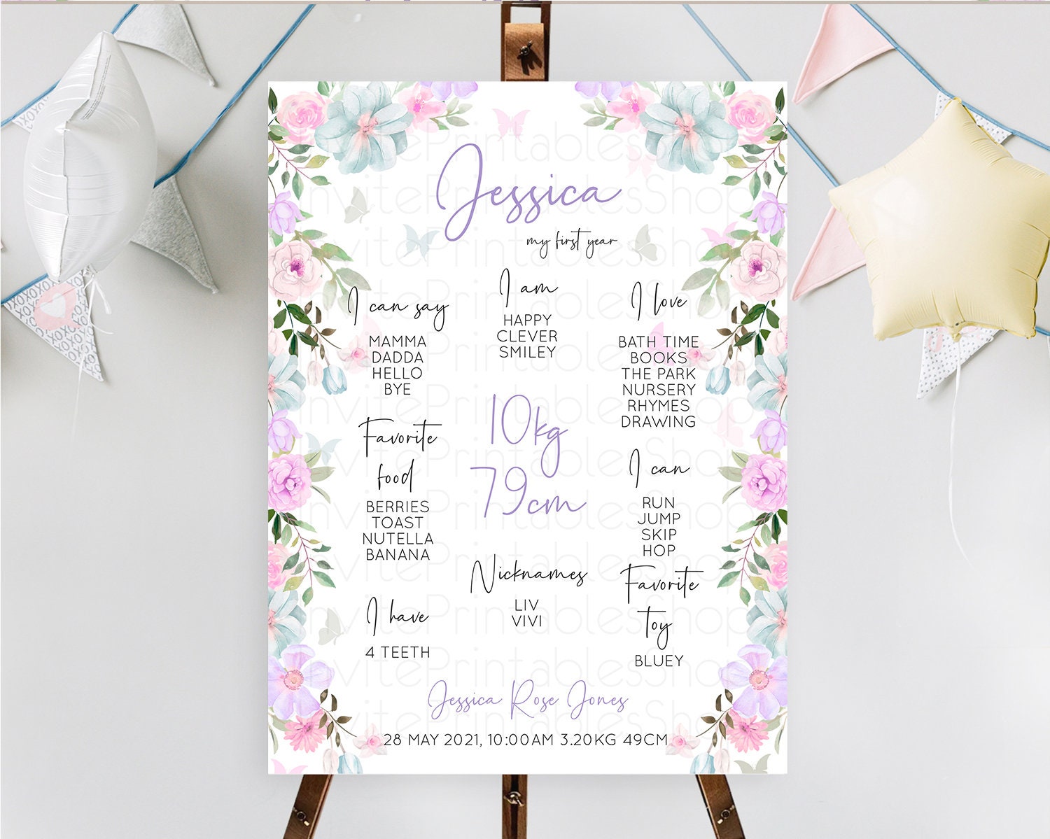 Secret Garden Milestone Board Wildflower First Birthday Milestone Poster Pastel Flowers Milestone Boho Wildflower 1st Birthday Sign D10494