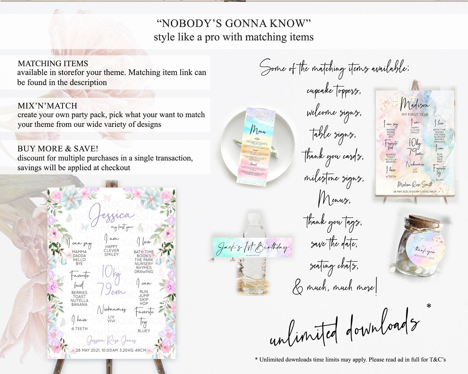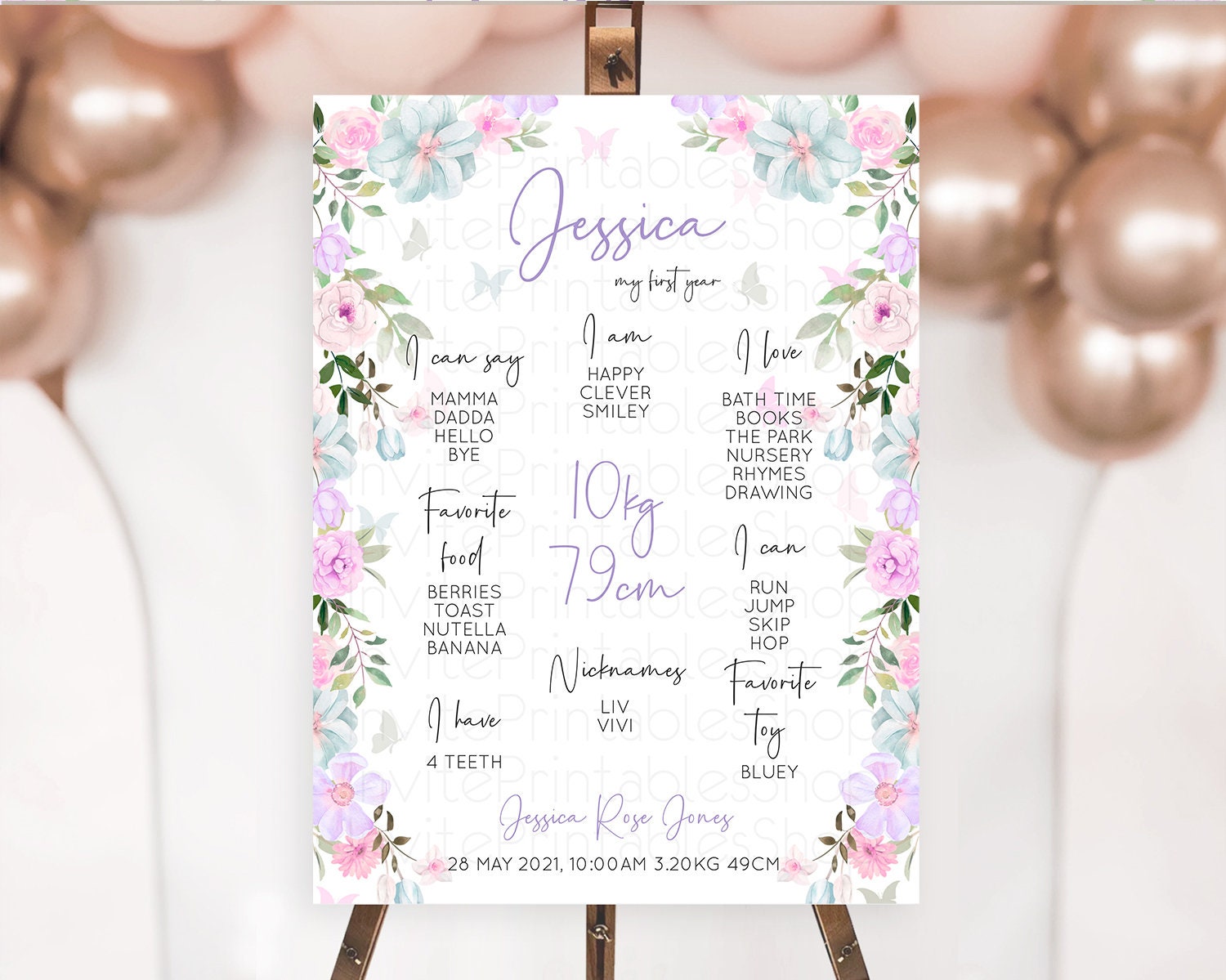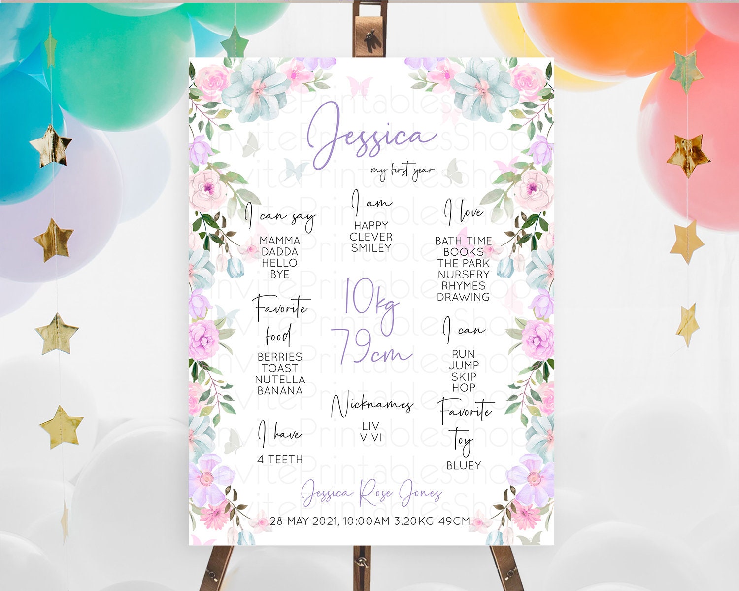 Secret Garden Milestone Board Wildflower First Birthday Milestone Poster Pastel Flowers Milestone Boho Wildflower 1st Birthday Sign D10494