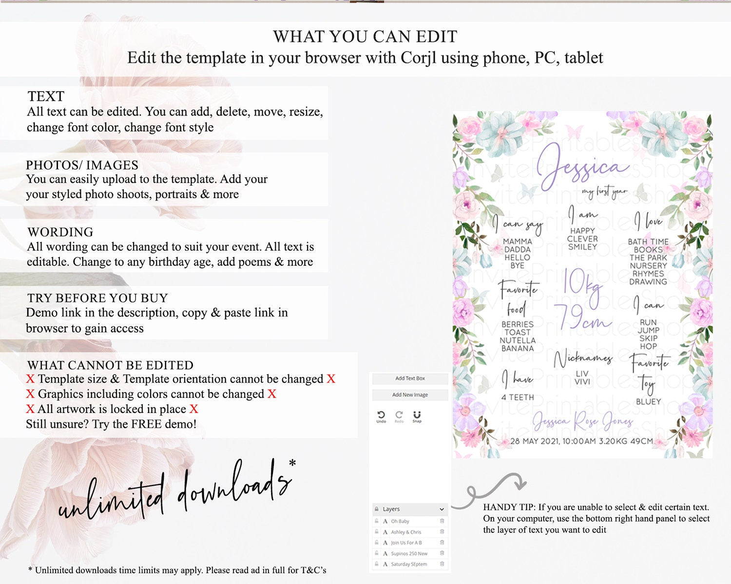 • Template size & orientation cannot be changed. Please use the demo link to confirm this product suits your needs.