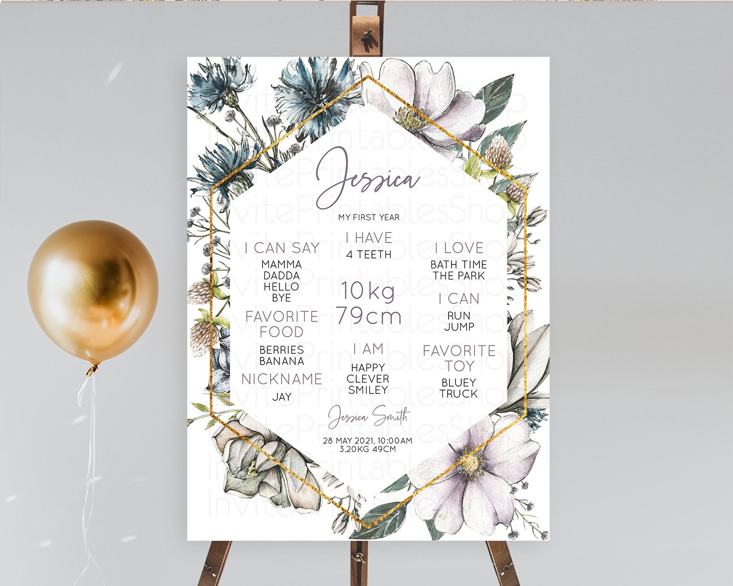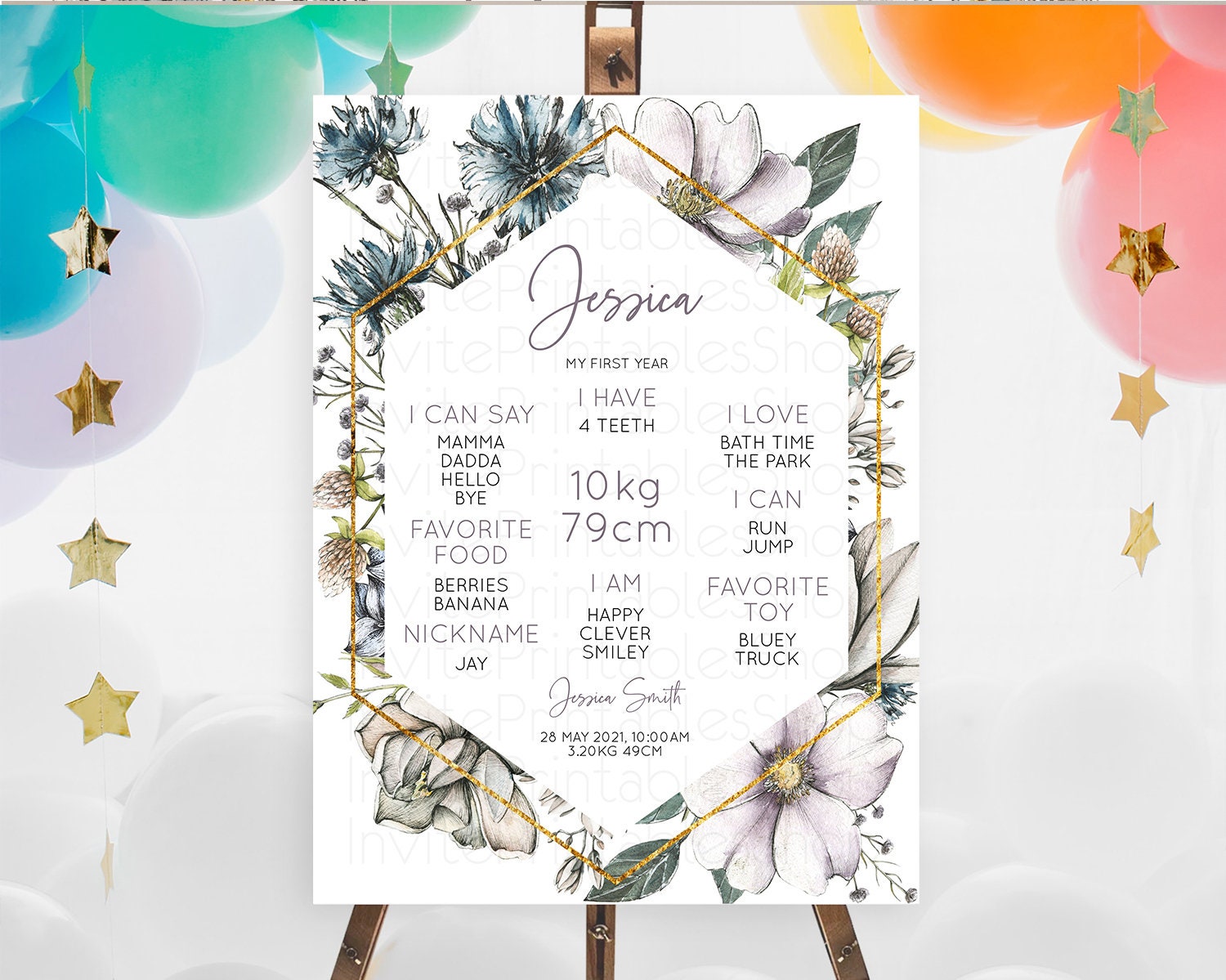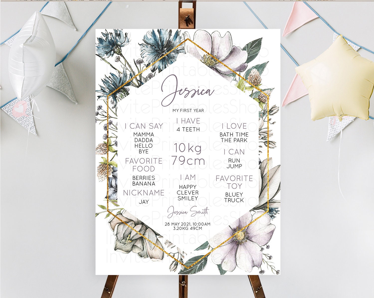 Secret Garden Milestone Board Wildflower First Birthday Milestone Poster Pastel Flowers Milestone Boho Wildflower 1st Birthday Sign D10501