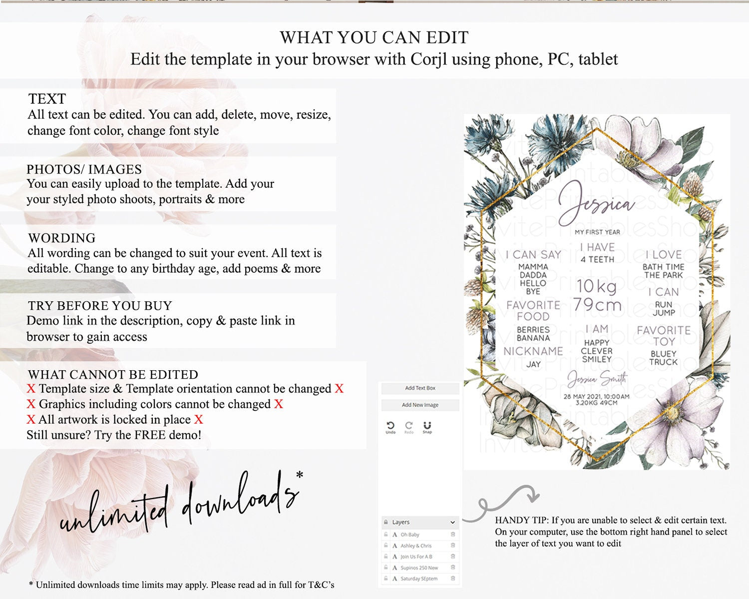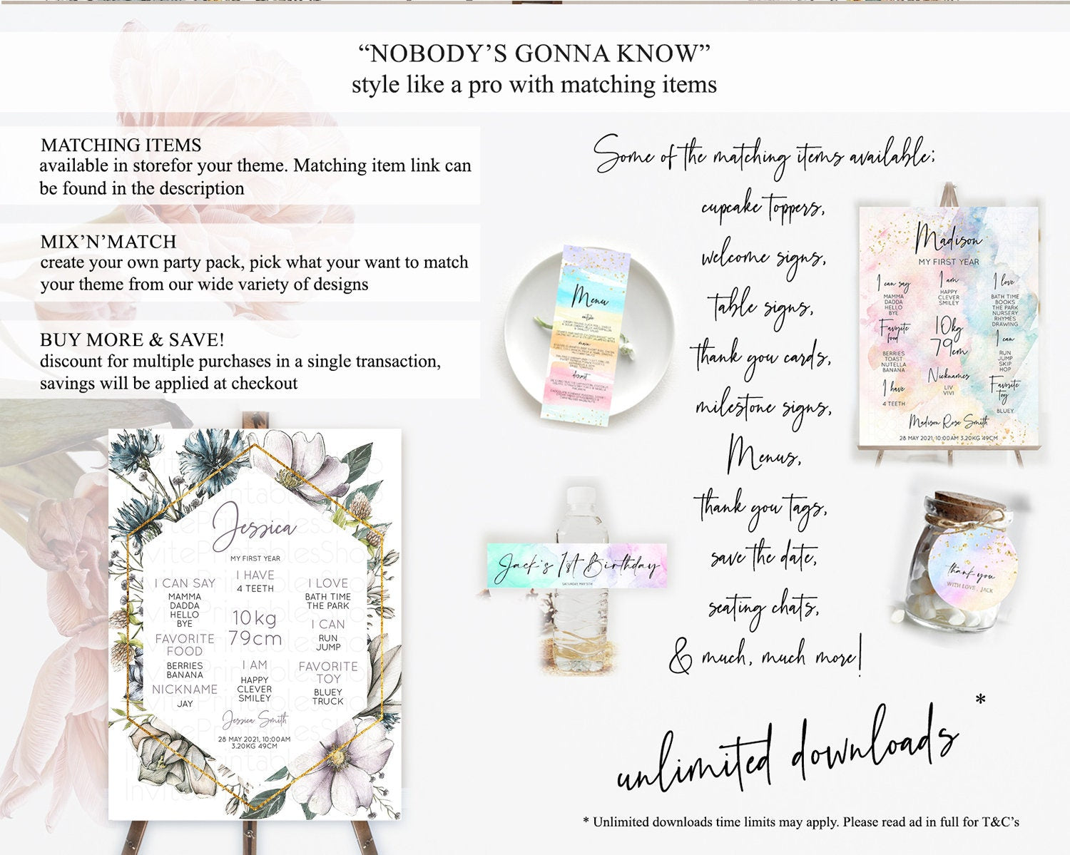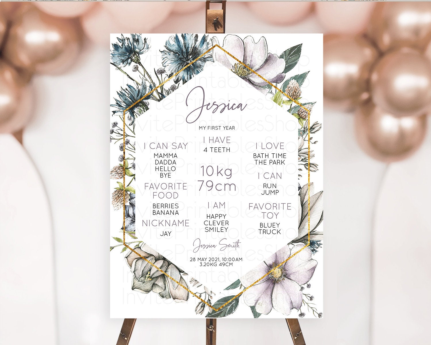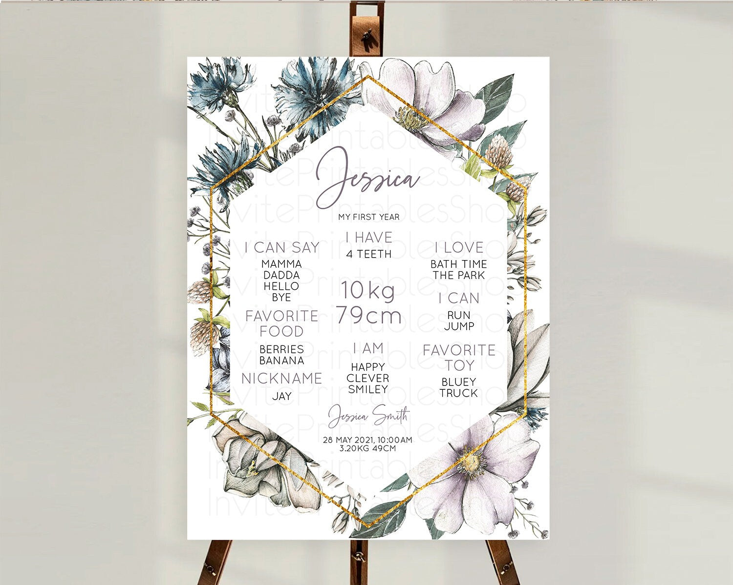 Secret Garden Milestone Board Wildflower First Birthday Milestone Poster Pastel Flowers Milestone Boho Wildflower 1st Birthday Sign D10501